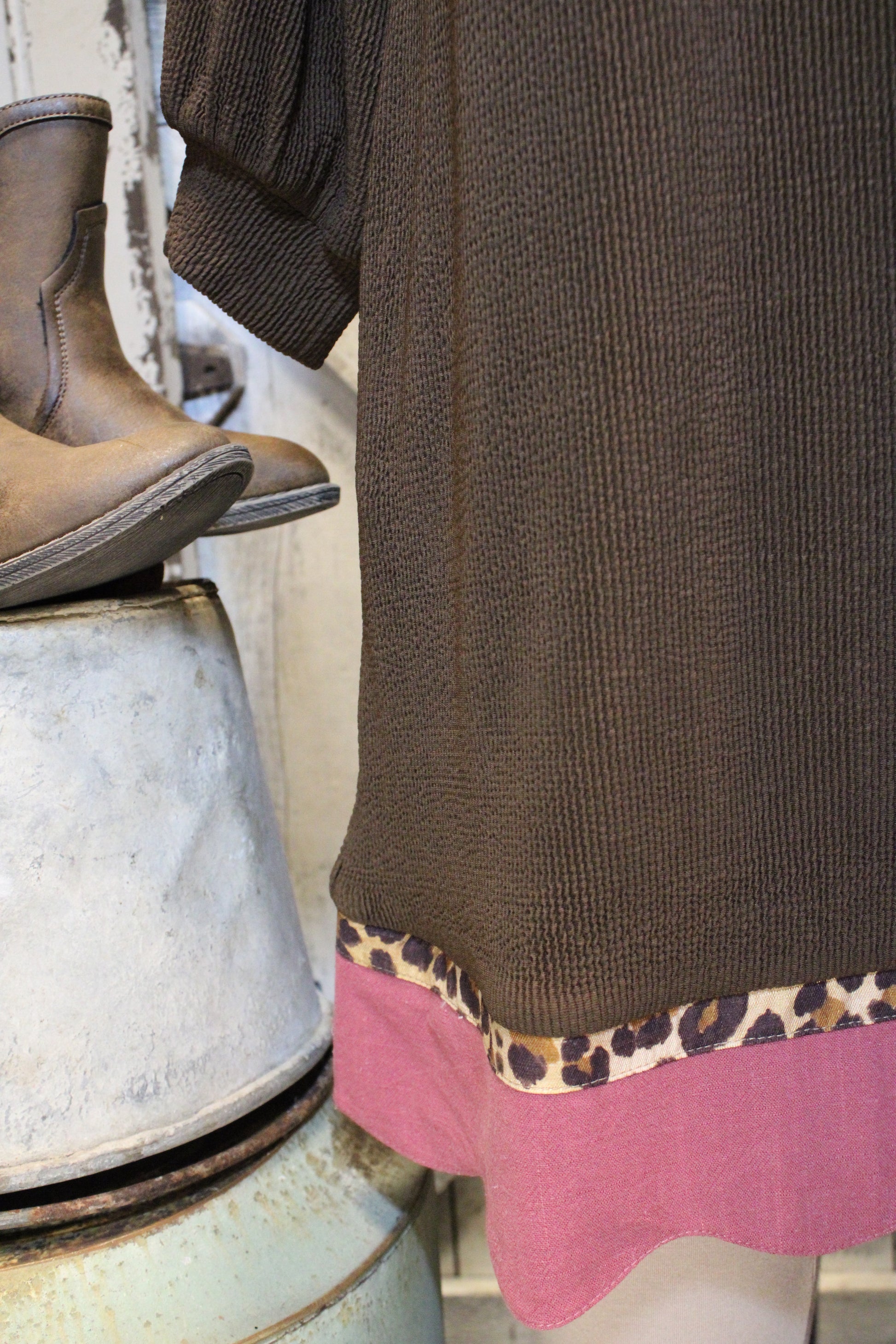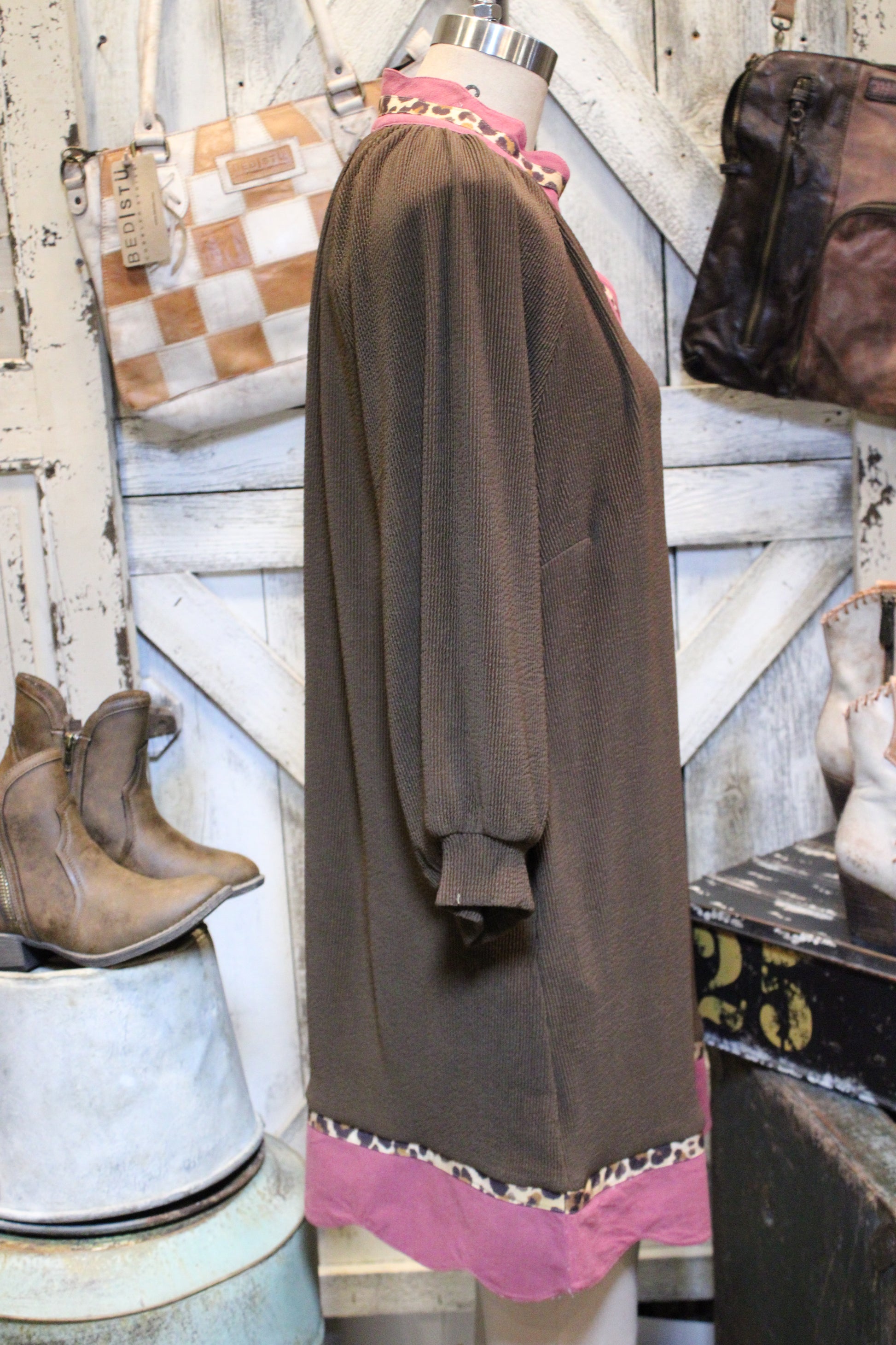 Introducing A Touch of Wild Dress- This darling dress features a relaxed fit with playful scalloped trim, pops of pink, and just the right touch of leopard to keep things fun and feminine. The soft fabric drapes beautifully while the pockets (yes, pockets!) make it as practical as it is pretty.