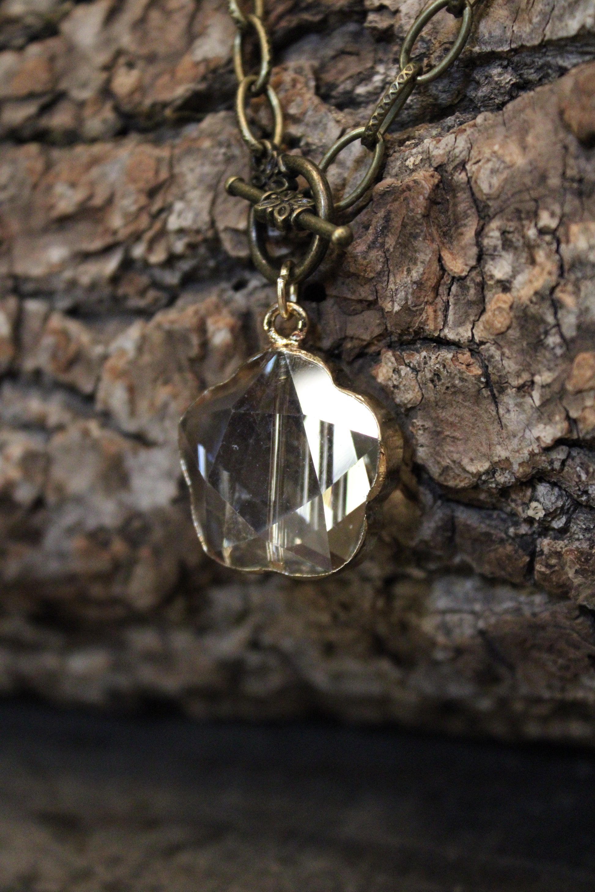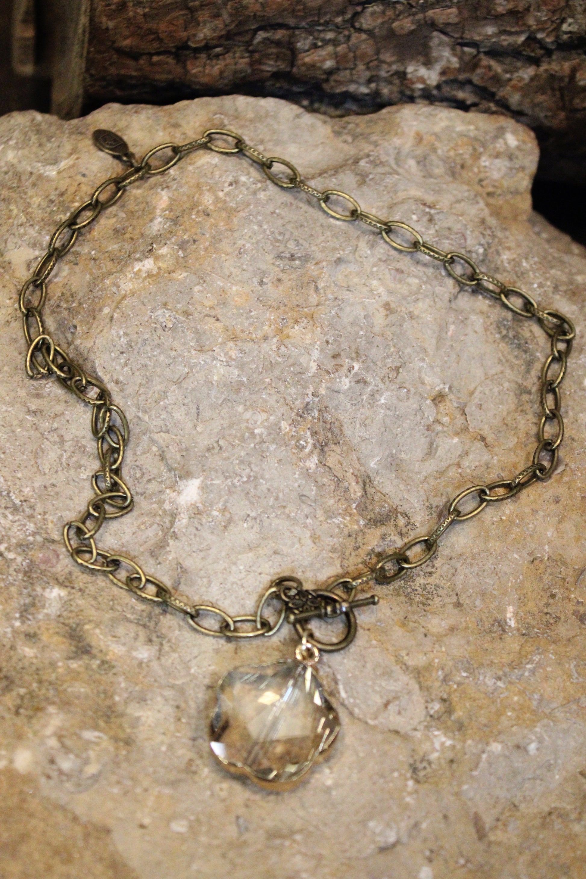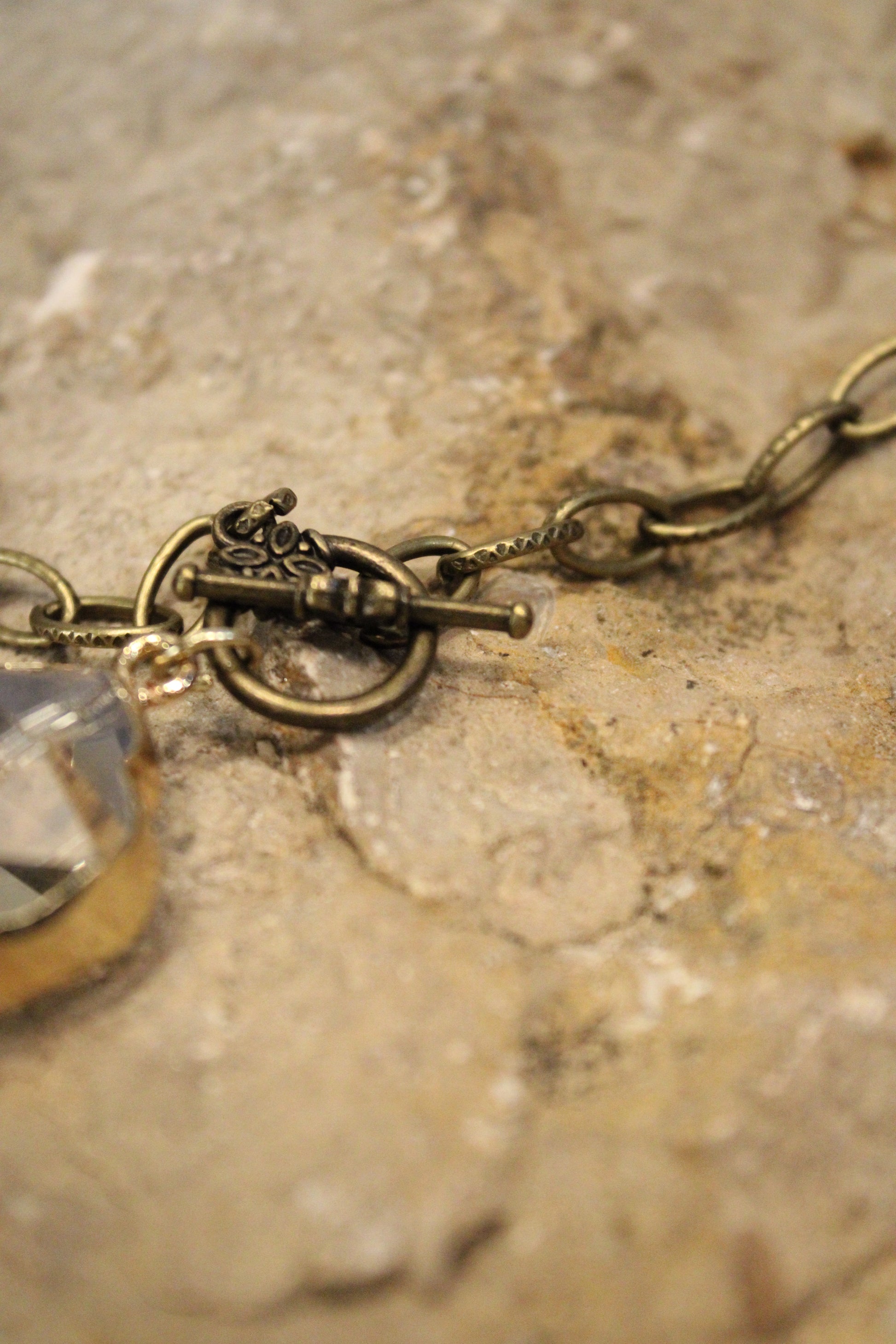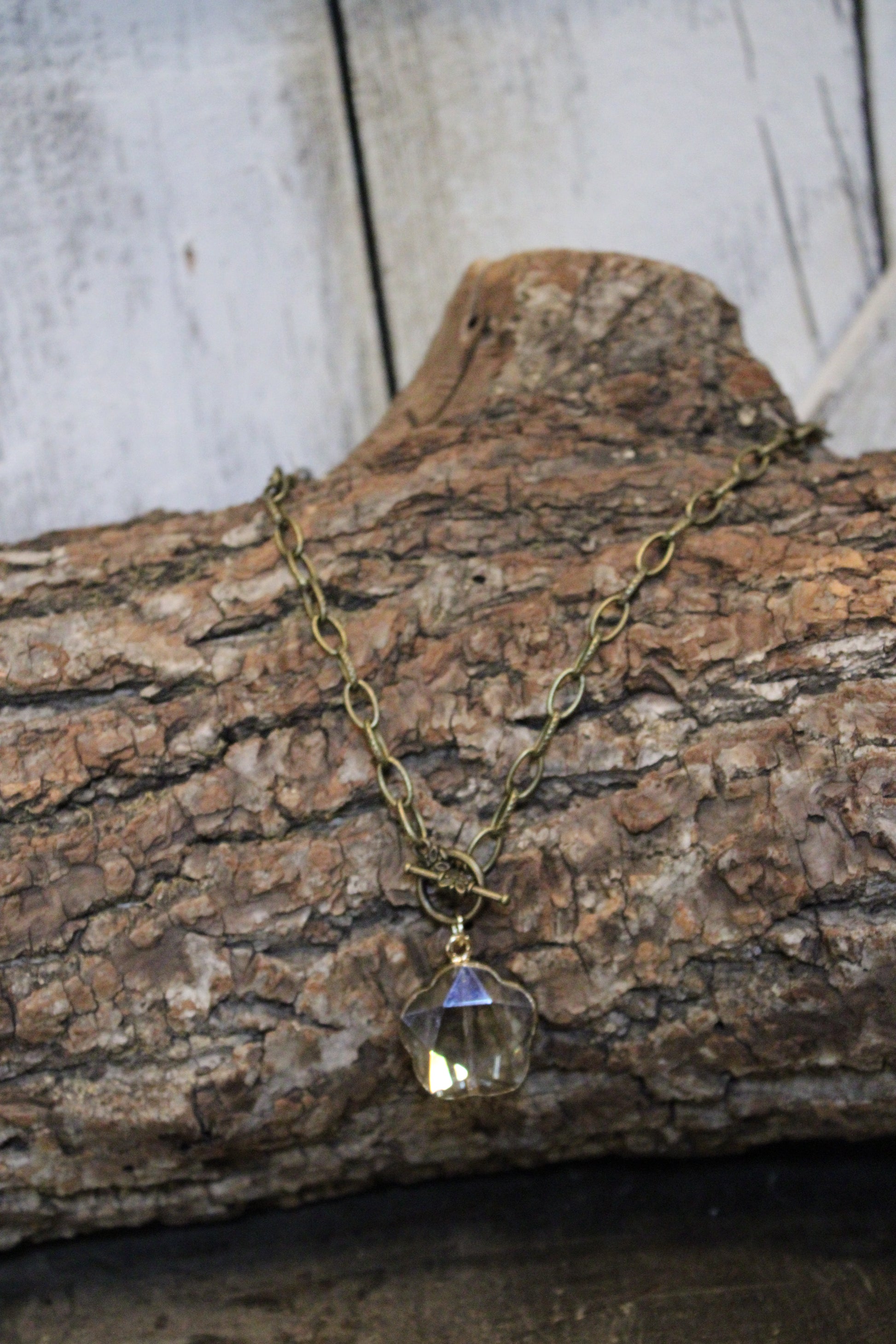 Introducing the stylish Addison Necklace – Simple, striking, and full of charm — this necklace brings vintage vibes with a touch of sparkle. The antique brass chain feels timeless and rustic, while the faceted crystal pendant catches the light in the prettiest way possible.