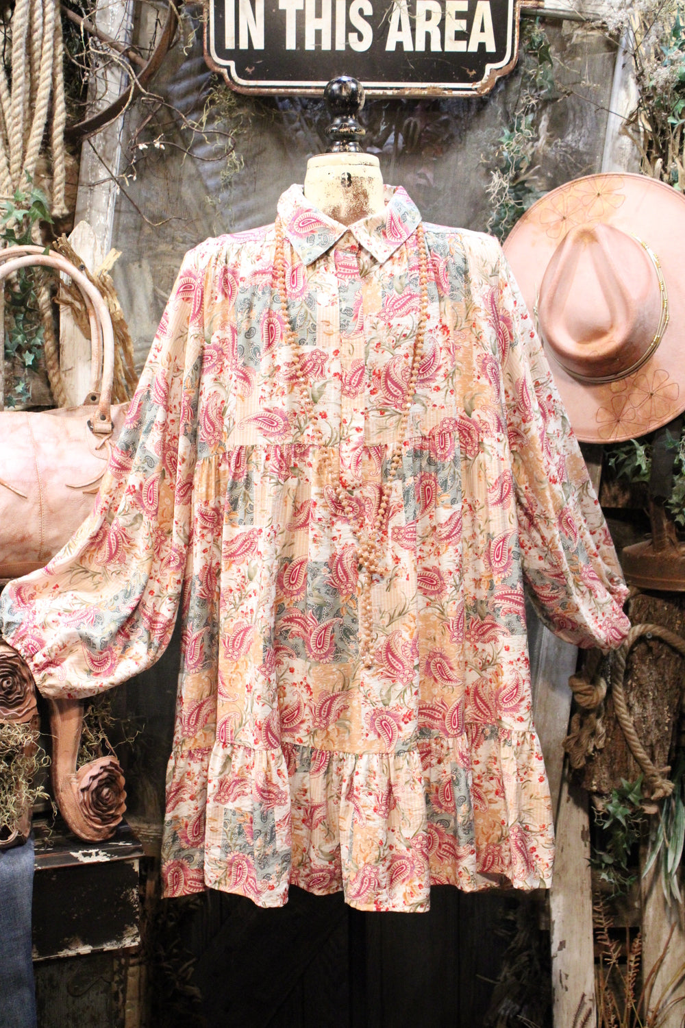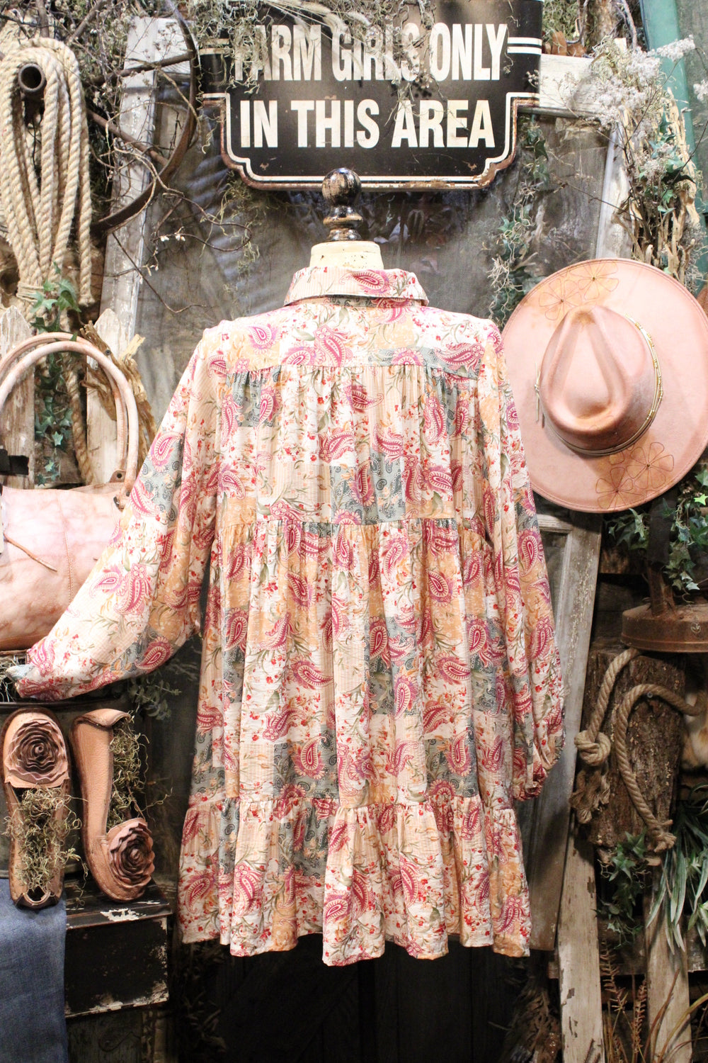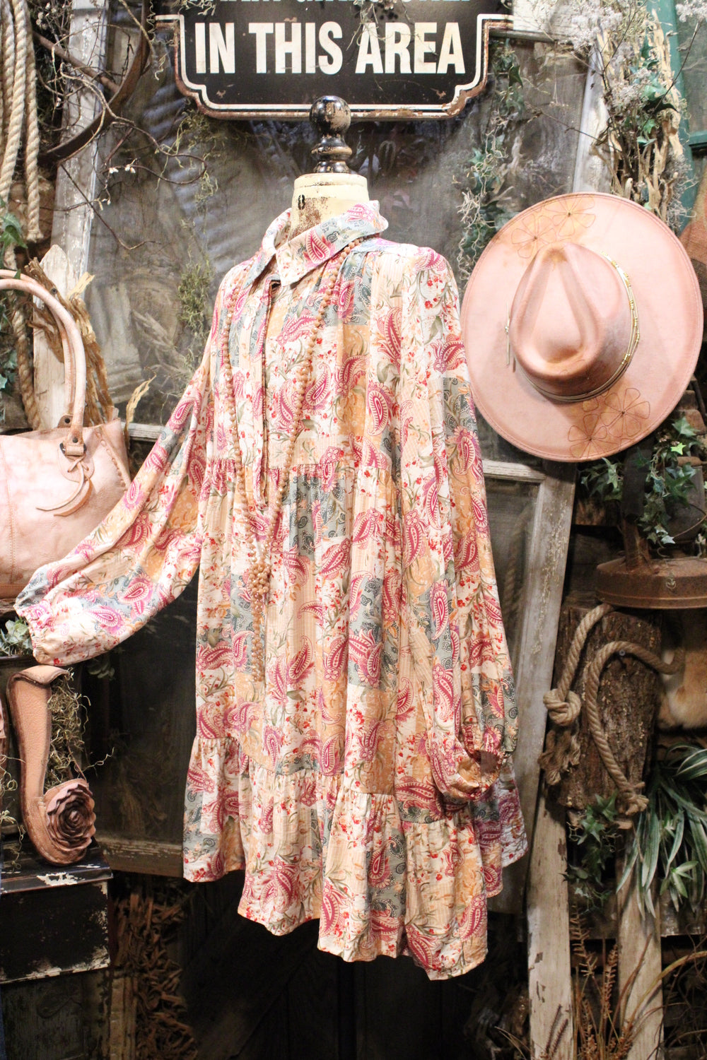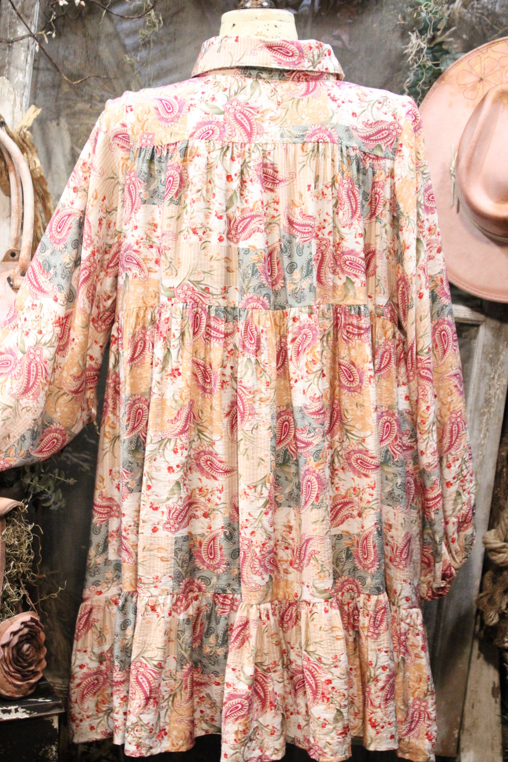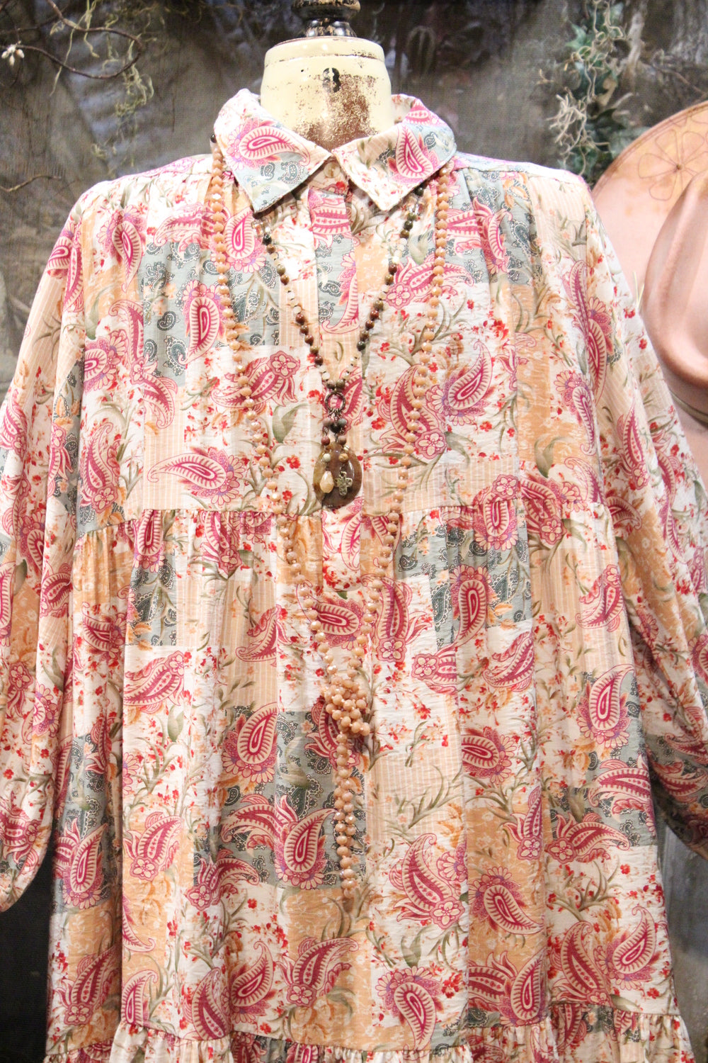 Introducing our Aspen Fern Paisley Dress- A charming addition to your wardrobe perfect for holidays and beyond! This dress features a beautifully intricate paisley print and a flattering fit that will make you stand out in style. Ideal for special occasions and festivities, this dress is sure to become a favorite in your collection. Add a touch of elegance to your look with the Aspen Fern Paisley Dress!