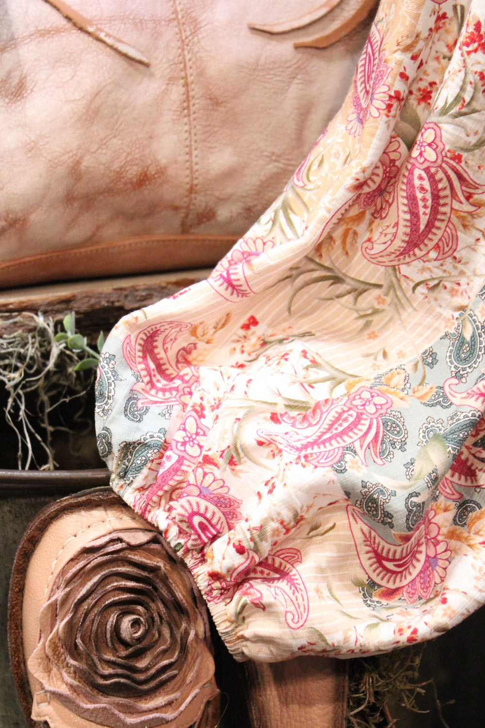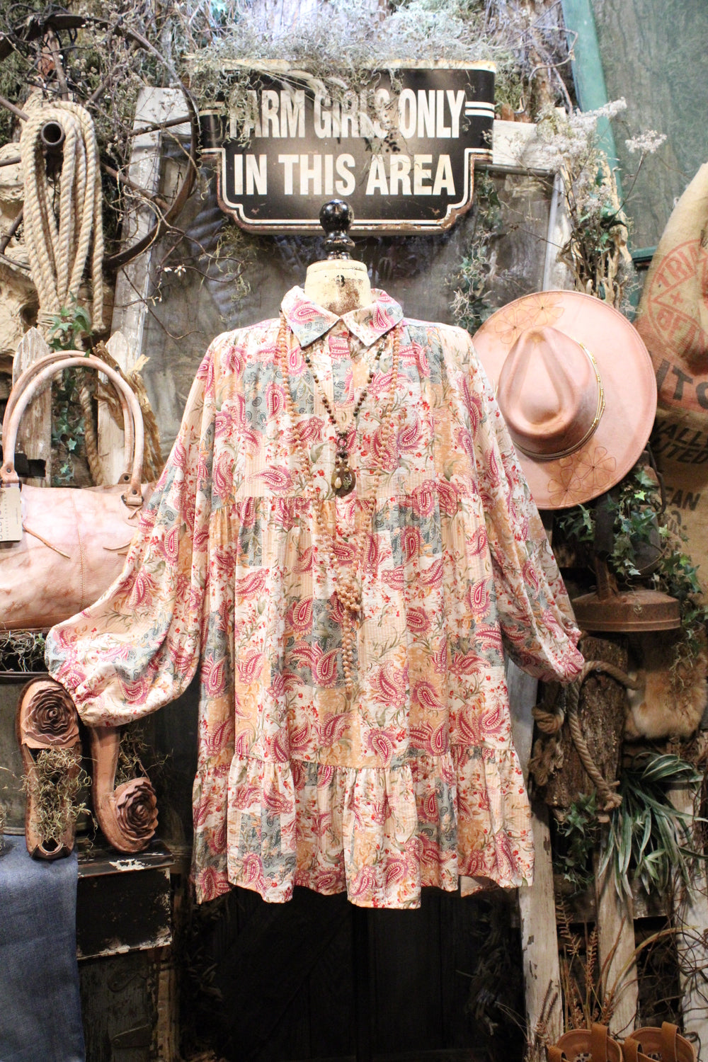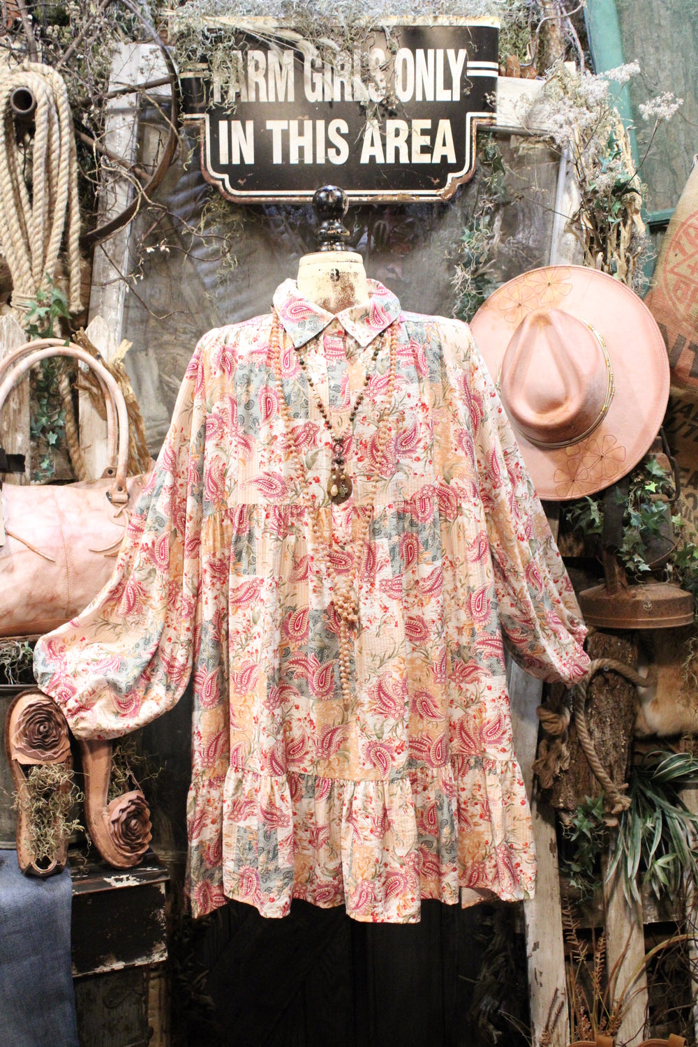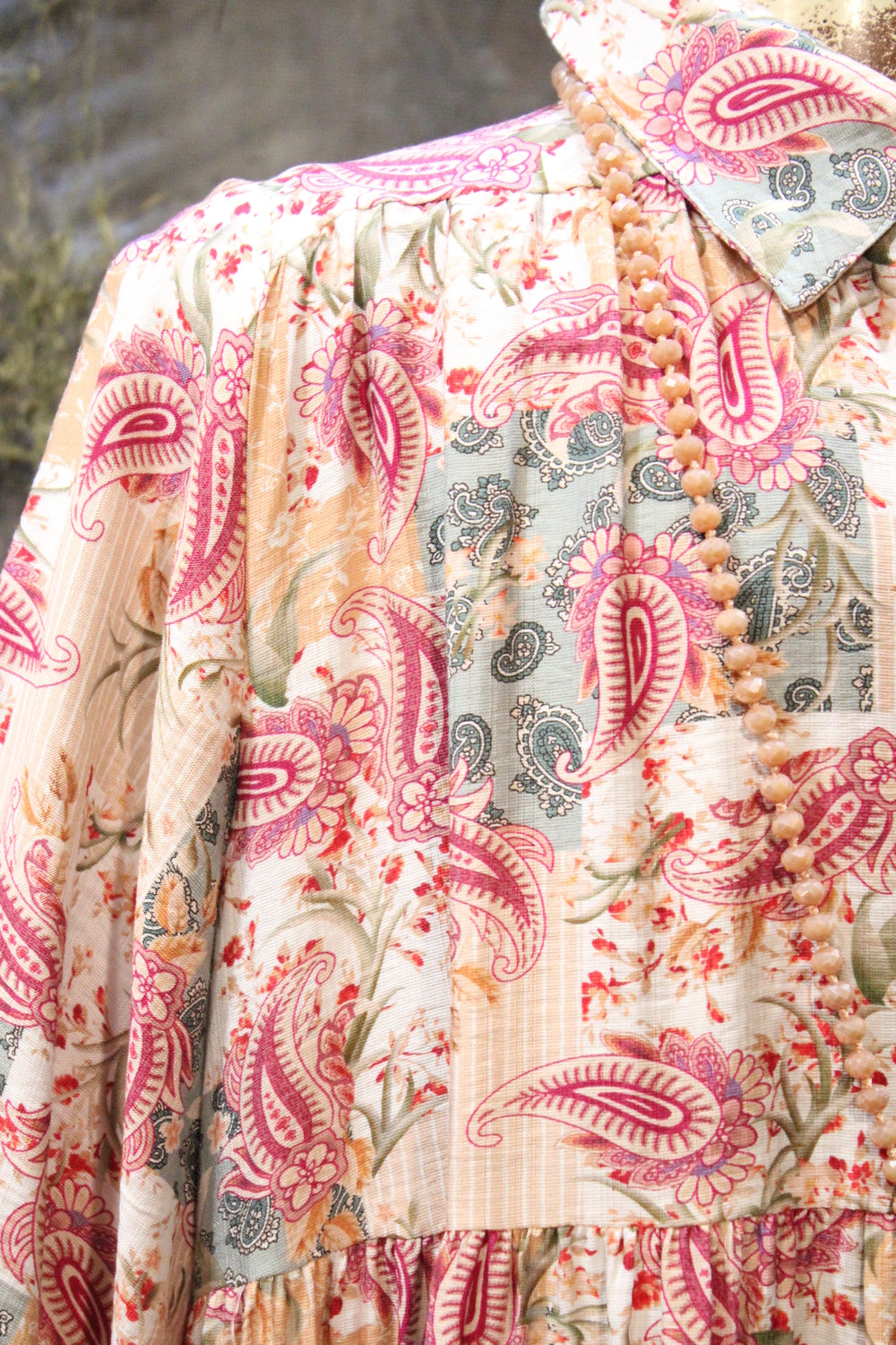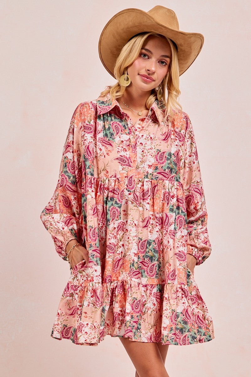 Introducing our Aspen Fern Paisley Dress- A charming addition to your wardrobe perfect for holidays and beyond! This dress features a beautifully intricate paisley print and a flattering fit that will make you stand out in style. Ideal for special occasions and festivities, this dress is sure to become a favorite in your collection. Add a touch of elegance to your look with the Aspen Fern Paisley Dress!