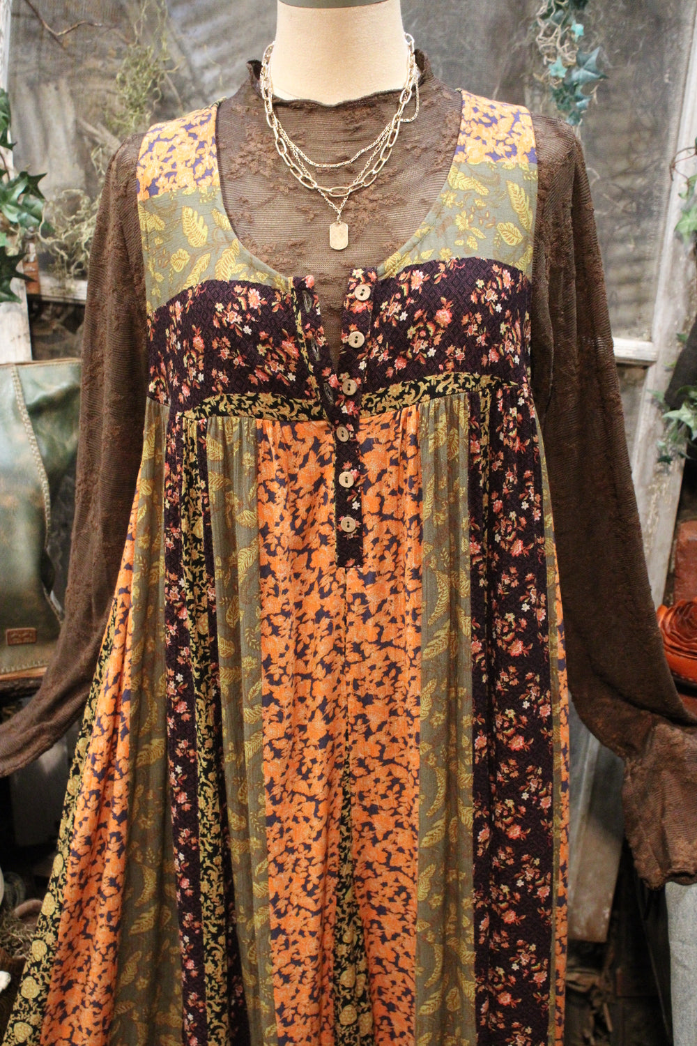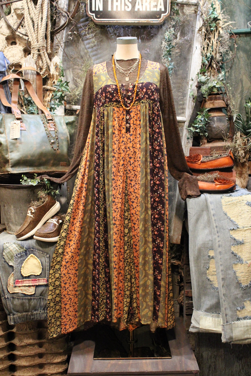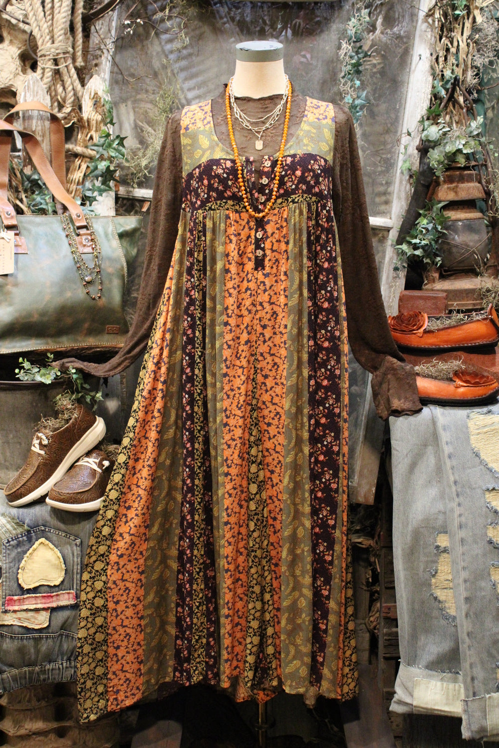 Backroad Orange Floral Romper- Bring bold bohemian energy to your wardrobe with this boho patchwork romper. Designed with a relaxed, wide-leg fit and a mix of earthy floral prints, this sleeveless one-piece blends comfort and standout style. The flattering V-neckline and button-front detail add a polished touch, while the flowy fabric keeps things breezy and lightweight for warm-weather days.