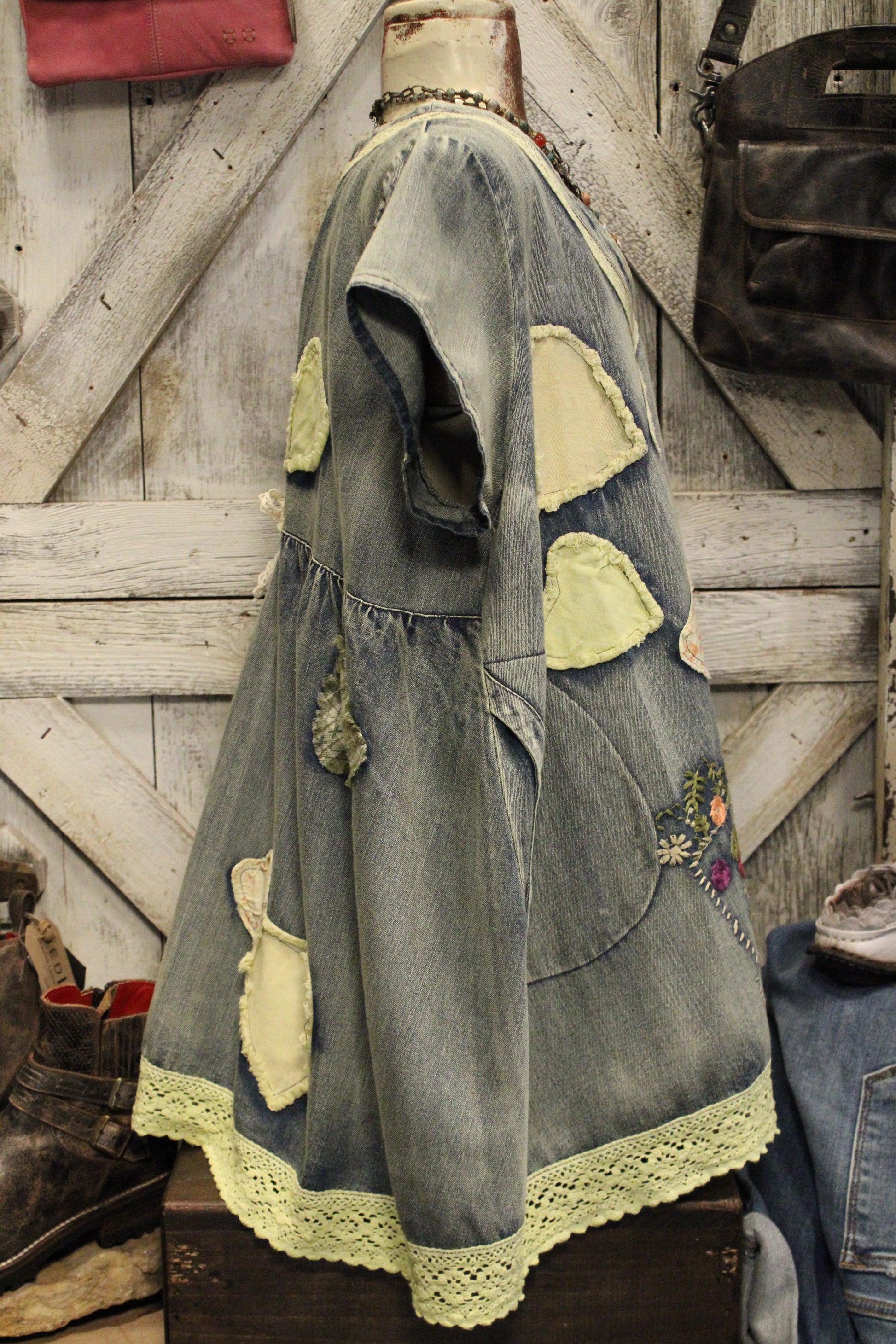 A relaxed, flowy silhouette makes it easy to wear and so comfy, while the embroidered floral detail near the hem adds an extra touch of handmade sweetness. The crochet lace trim along the bottom brings the whole look together with the perfect hint of vintage flair.