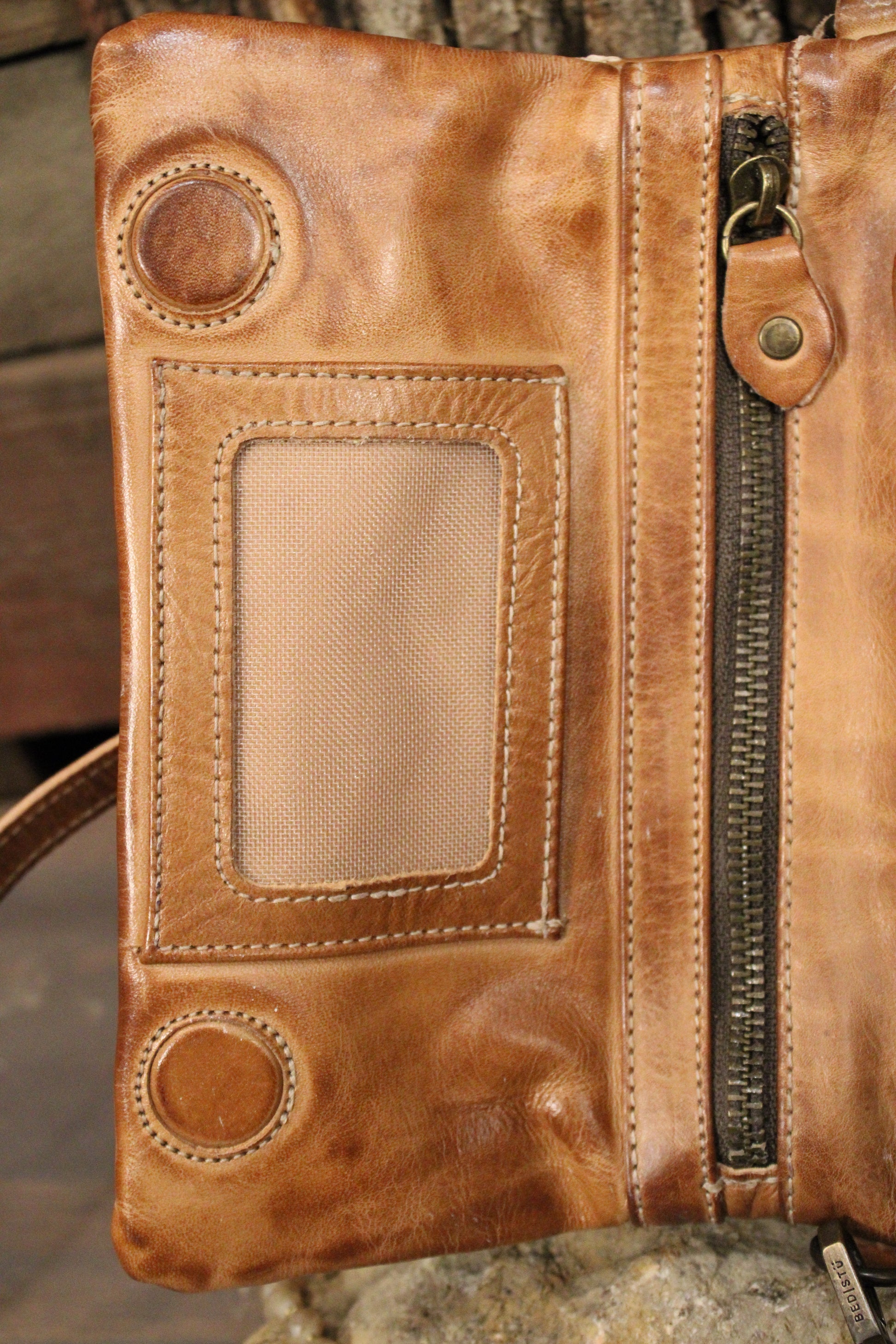 - Studded leather zipper pulls