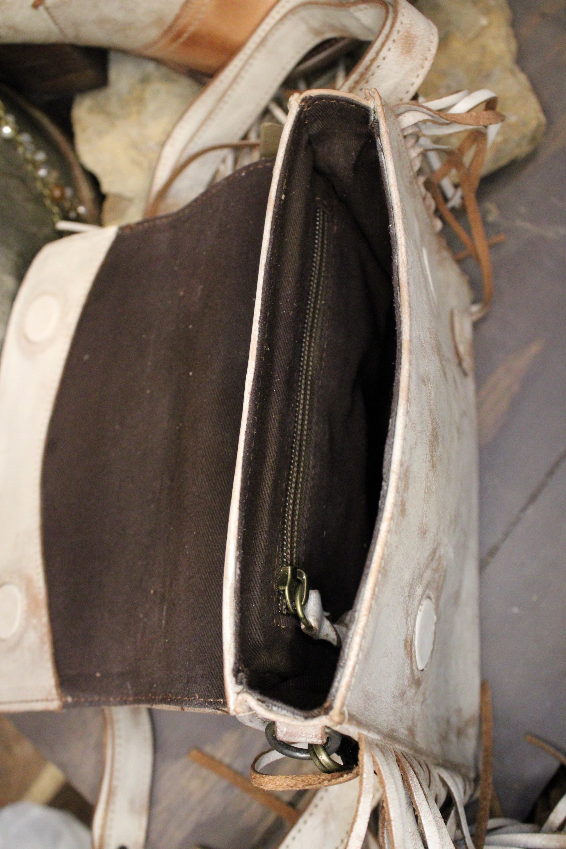 - Compact crossbody with adjustable and removable strap, fun fringe