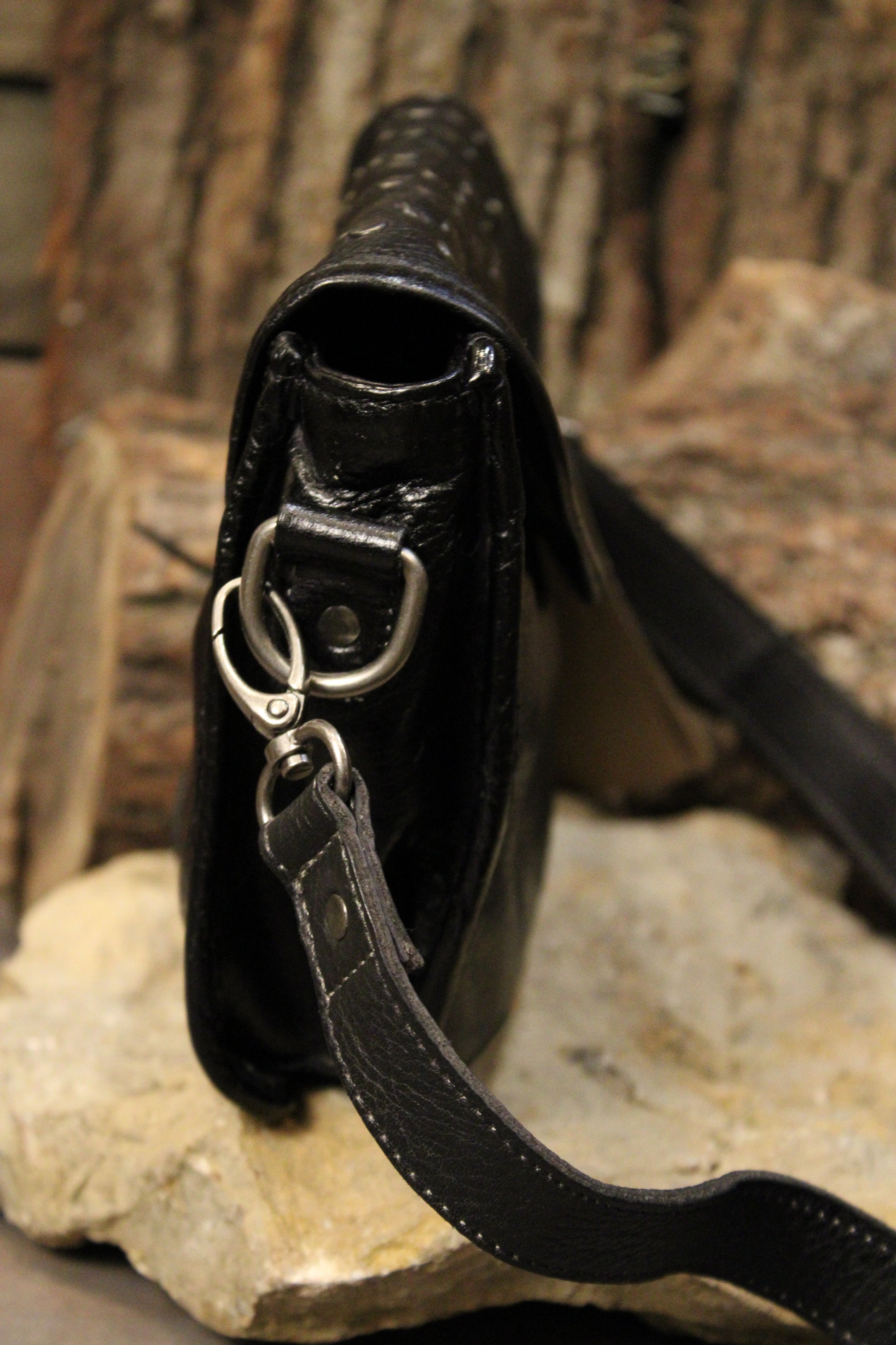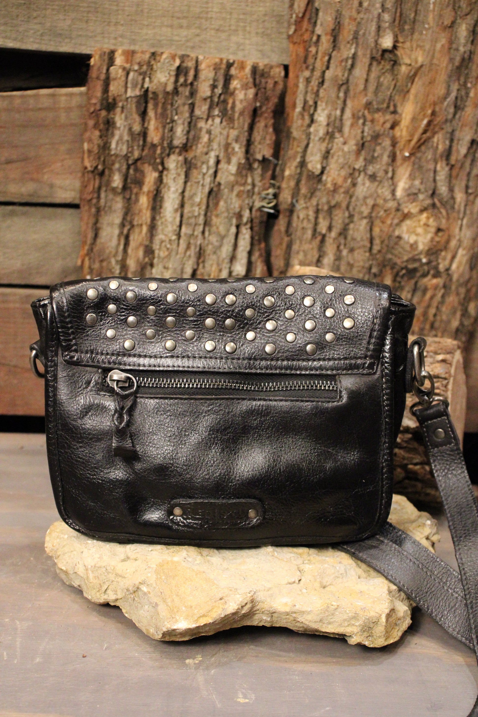 - Perfectly sized crossbody bag with stud details on front flap, adjustable and removable strap to carry under arm