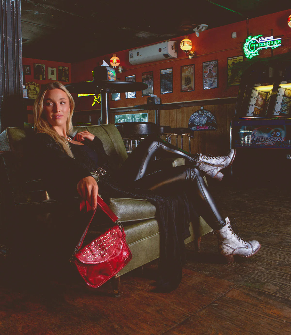 Occurrence is the compact crossbody that packs a punch. Adorned with bold studs on the flap, this versatile bag can be worn as a crossbody or transformed into a clutch by removing the strap. Small but mighty, Occurrence offers just enough space for your essentials while making a statement with its edgy yet elegant design. Perfect for day or night, it's the ultimate grab-and-go accessory.