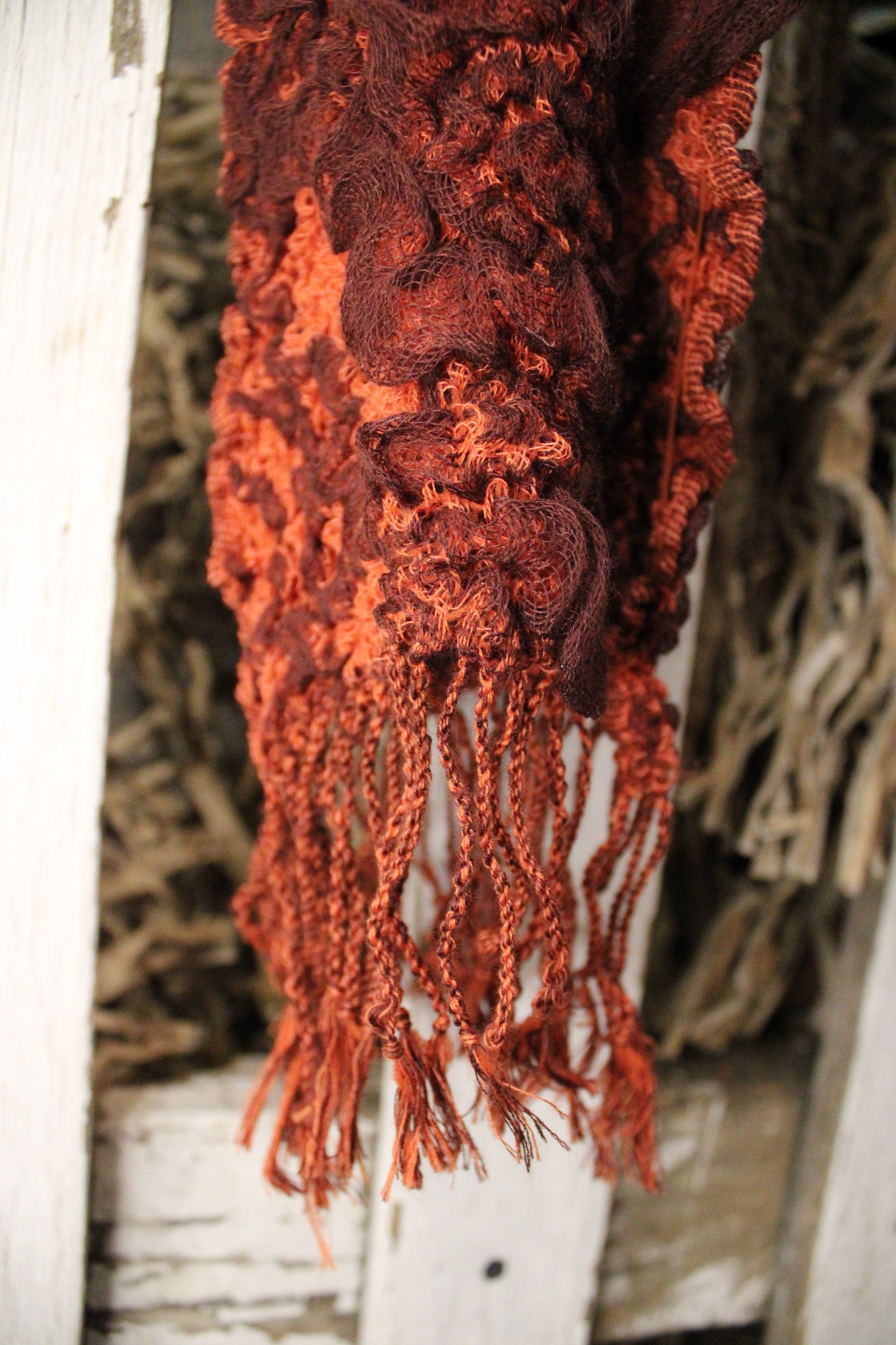 Introducing the stylish and versatile Blaze Scarf, Wrap yourself in cozy fall warmth with this beautifully textured scarf in rich shades of burnt orange and deep rust. The soft, wavy knit design gives it a homespun charm—perfect for adding a pop of color and comfort to any outfit.