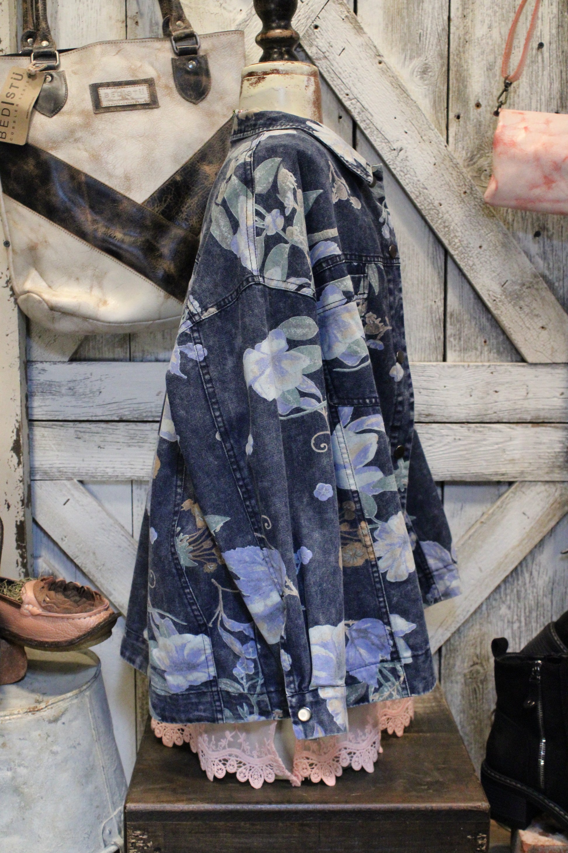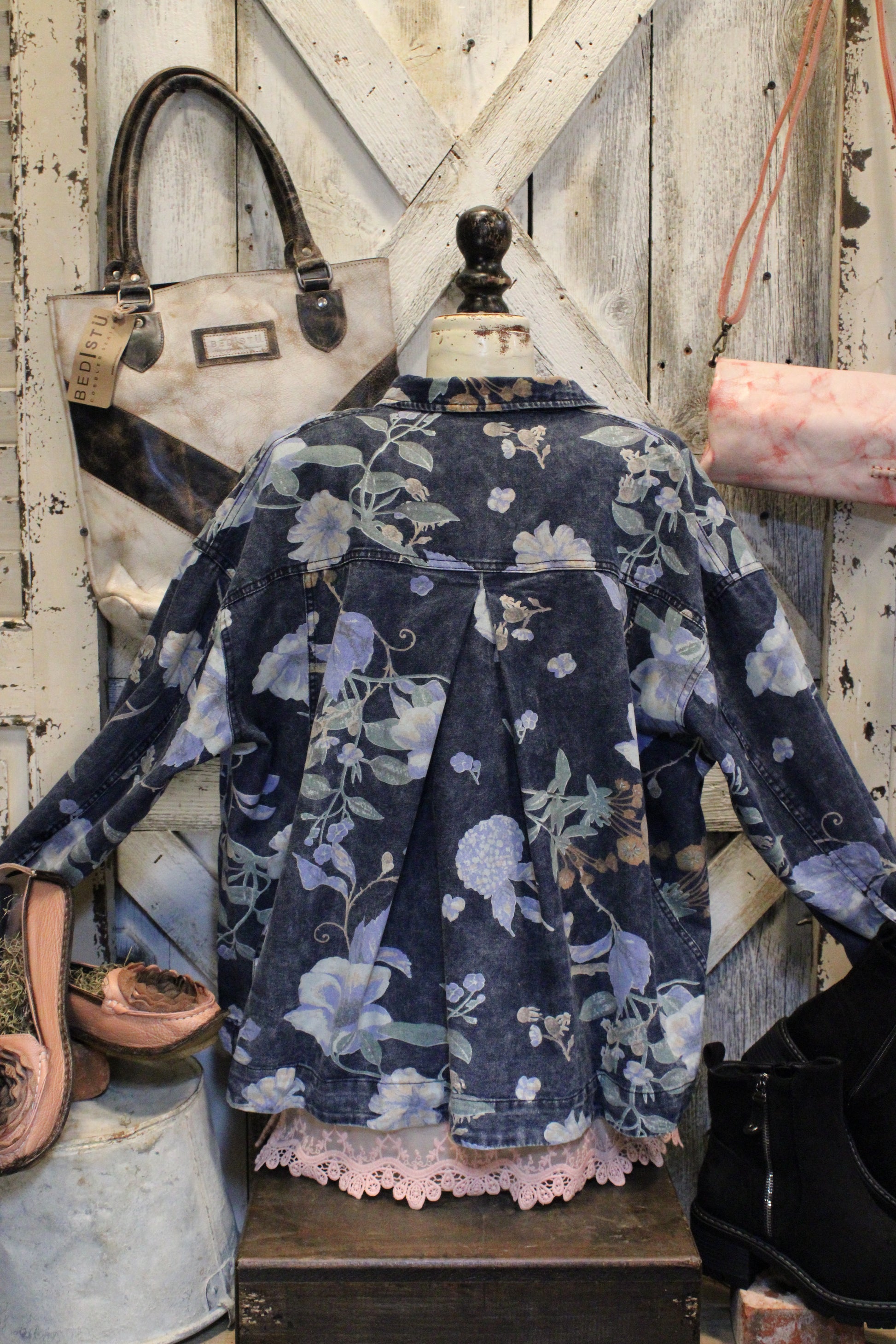 Introducing the Blossom Blooms Denim Shacket- Meet your new go-to layer for every season — this denim floral shacket blends rugged charm with a touch of feminine flair.