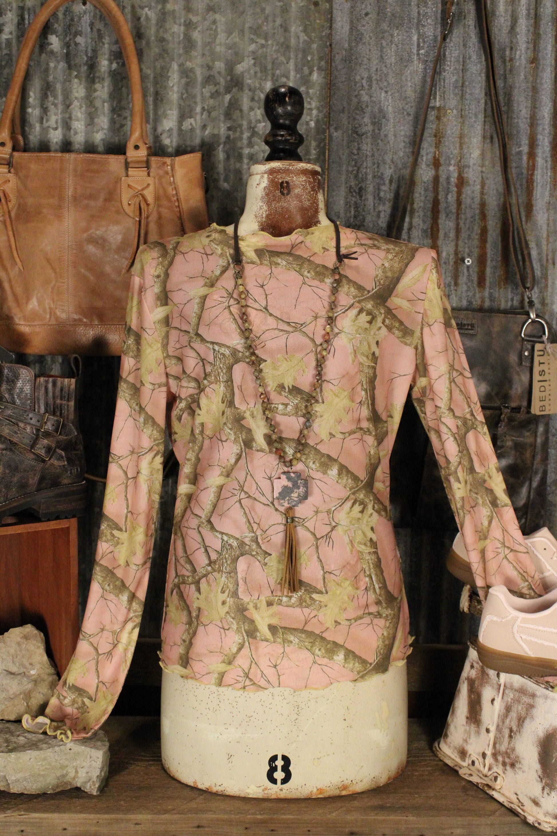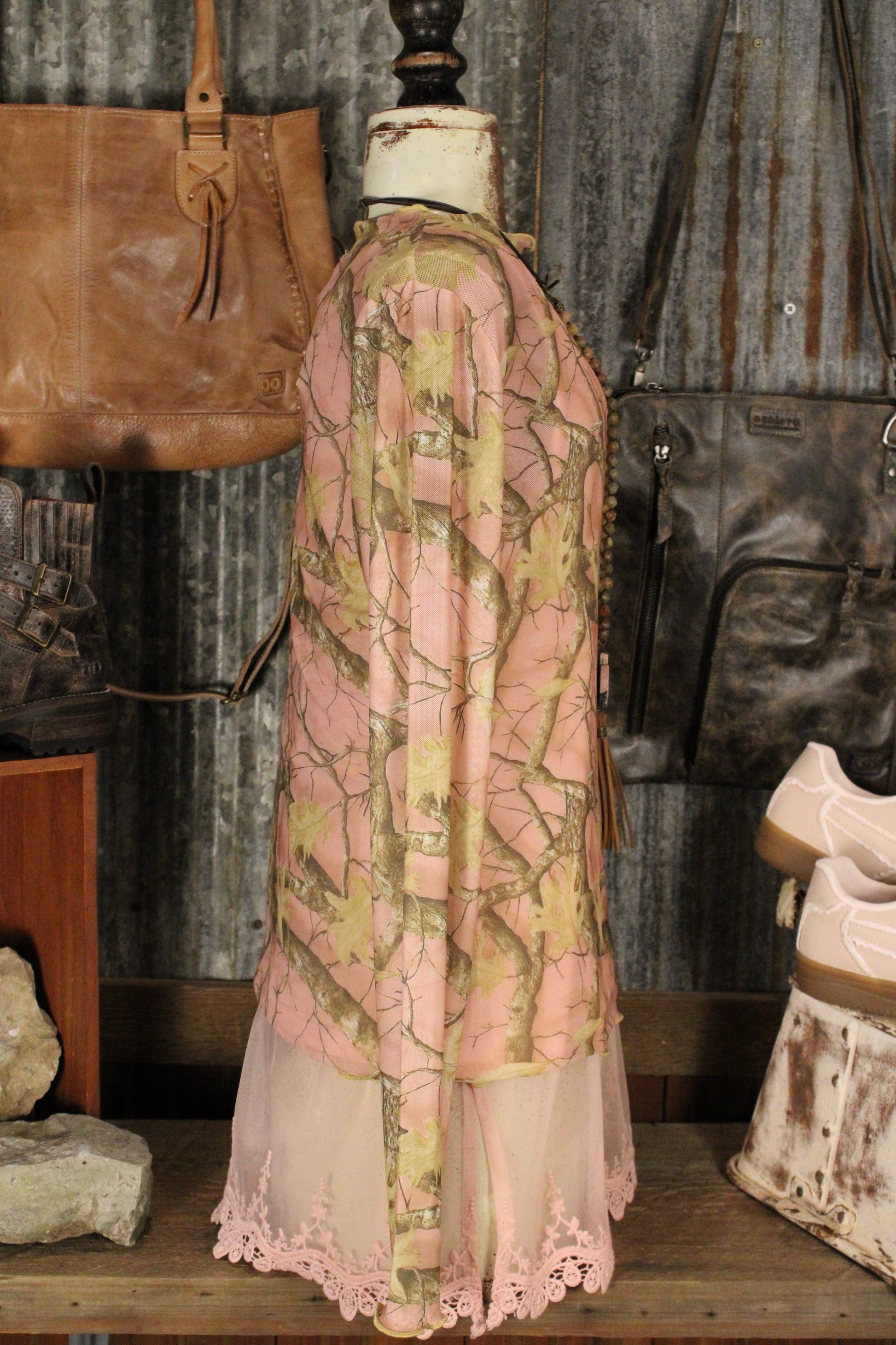 Whether you’re heading to the market, meeting friends, or styling a cozy farm-girl outfit, this camo mesh layering top adds texture, color, and personality to any look. Pair it with denim, boots, or your favorite accessories for an effortless boho western vibe.