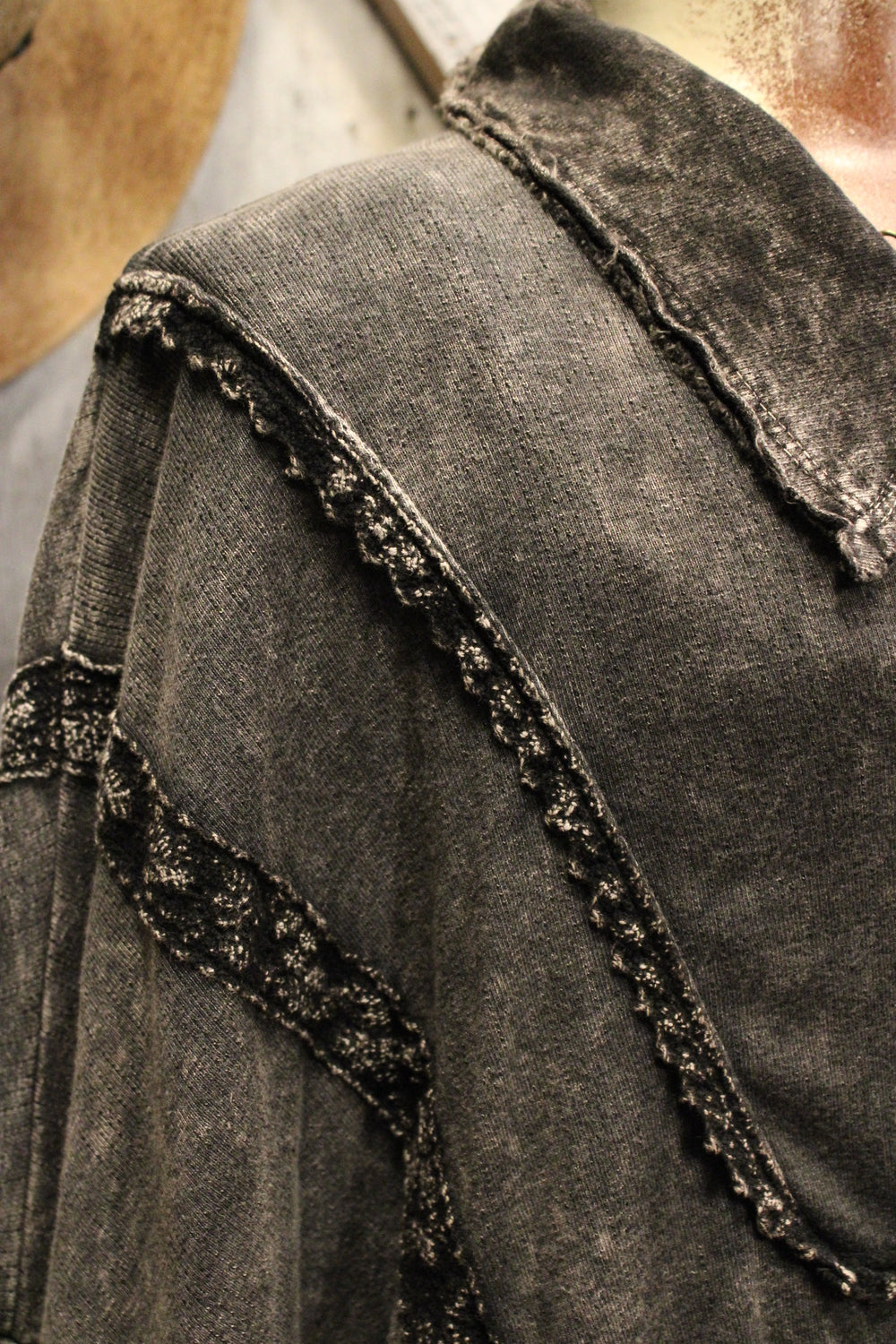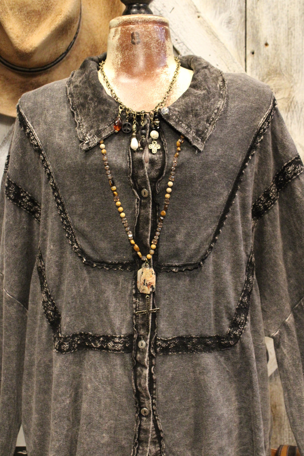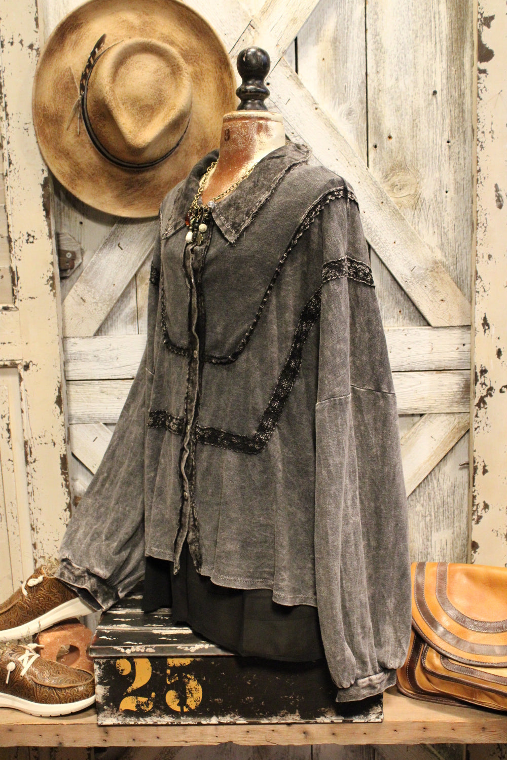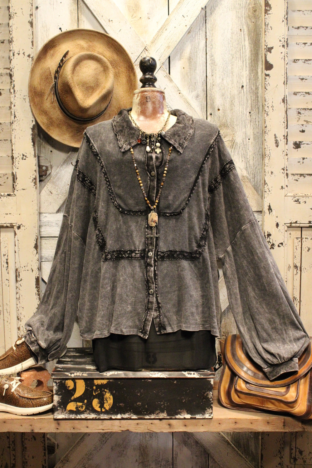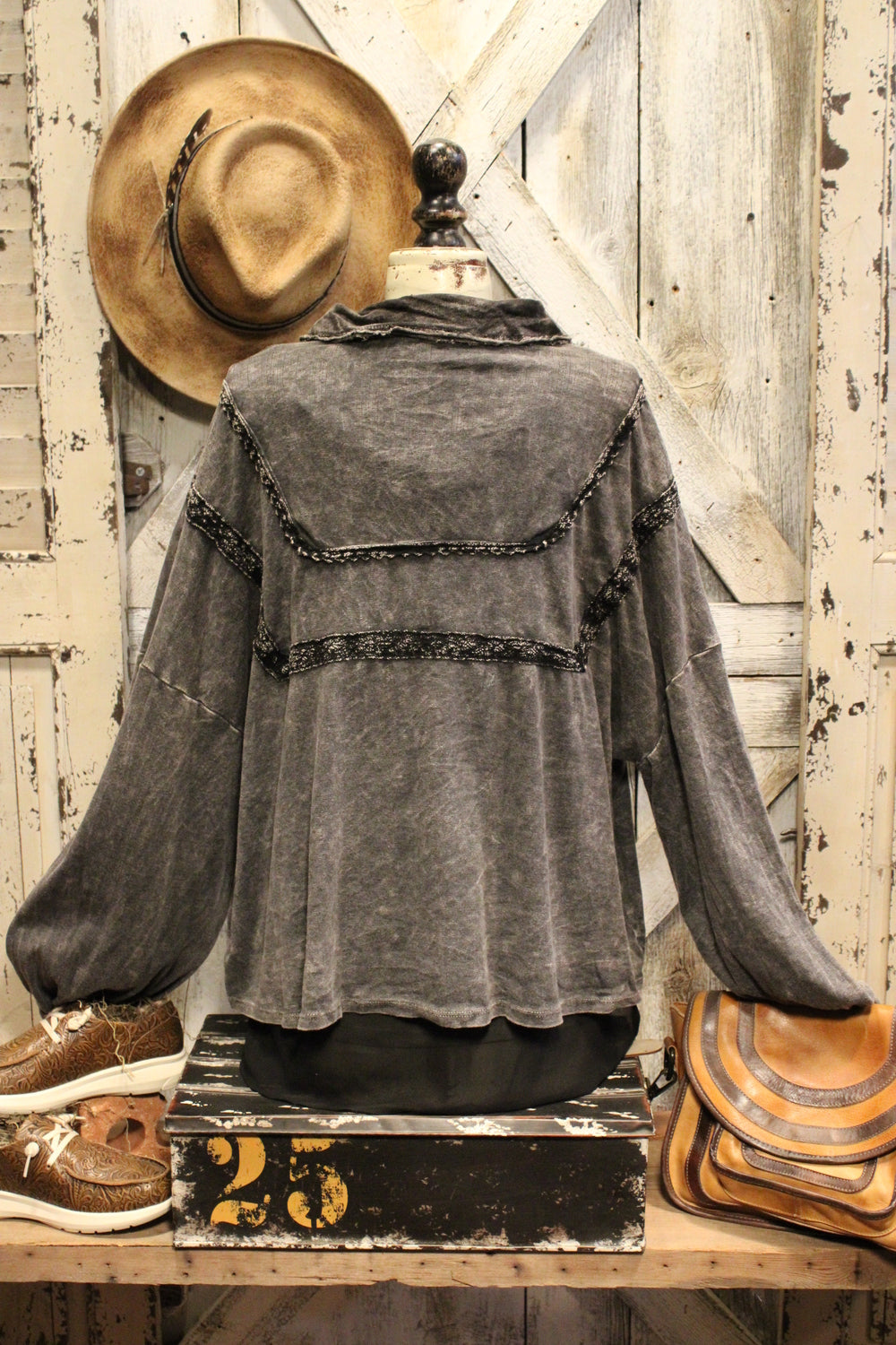 Introducing the Bounce Back Black Blouse-This relaxed button-up blouse brings laid-back ease with just the right touch of detail. Featuring soft washed fabric, subtle lace trim accents, and a flowy silhouette, it’s the perfect piece to dress up or down. Wear it buttoned or open over your favorite tank or tee for a versatile, everyday look.