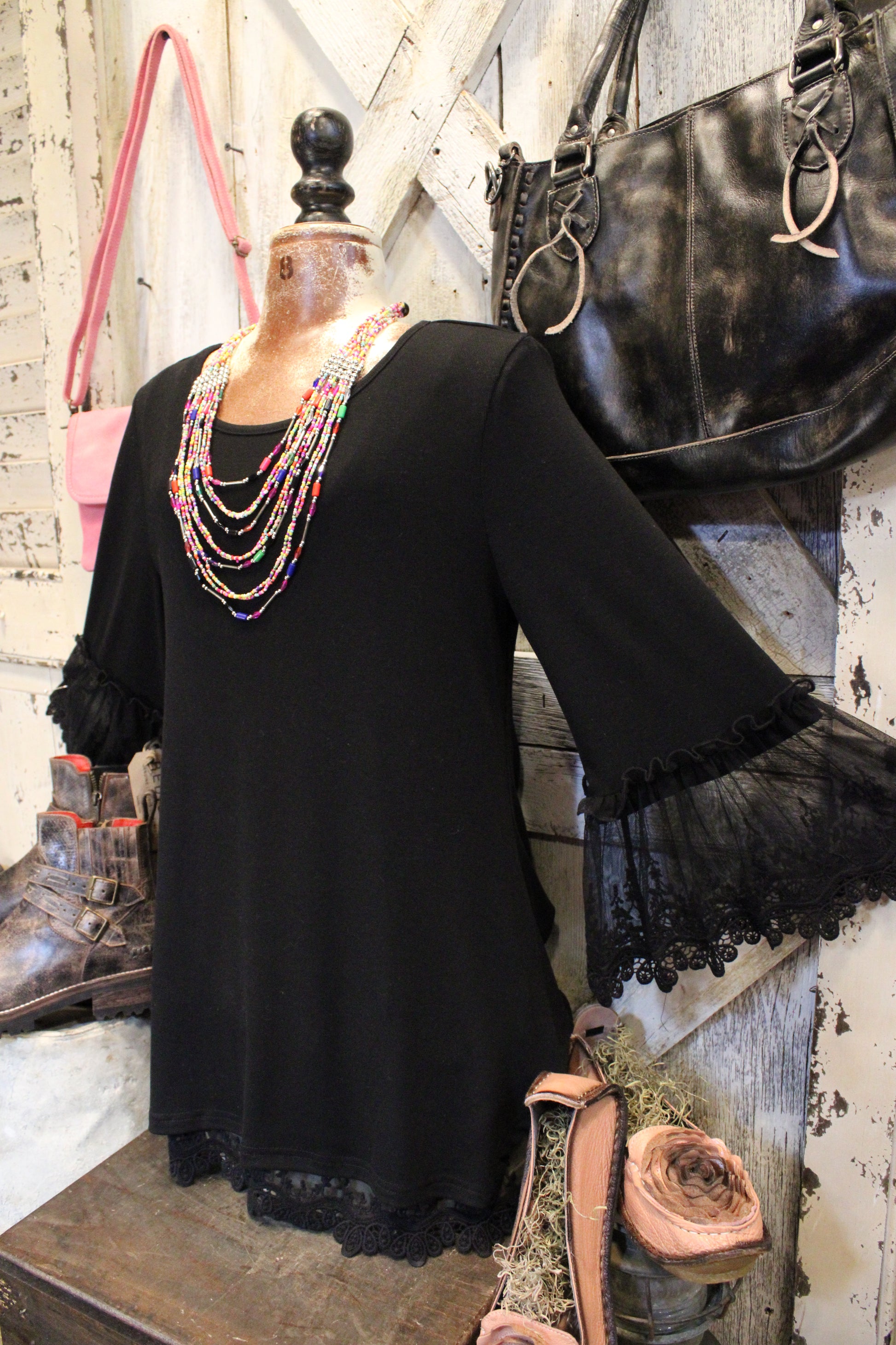 This top is that effortlessly elegant piece every closet needs. The soft, flowy fabric drapes beautifully, while the statement lace bell sleeves add just the right touch of feminine flair. Dress it up with jeans and boots for a dinner out, or layer it under a vest for that perfectly put-together boutique look.