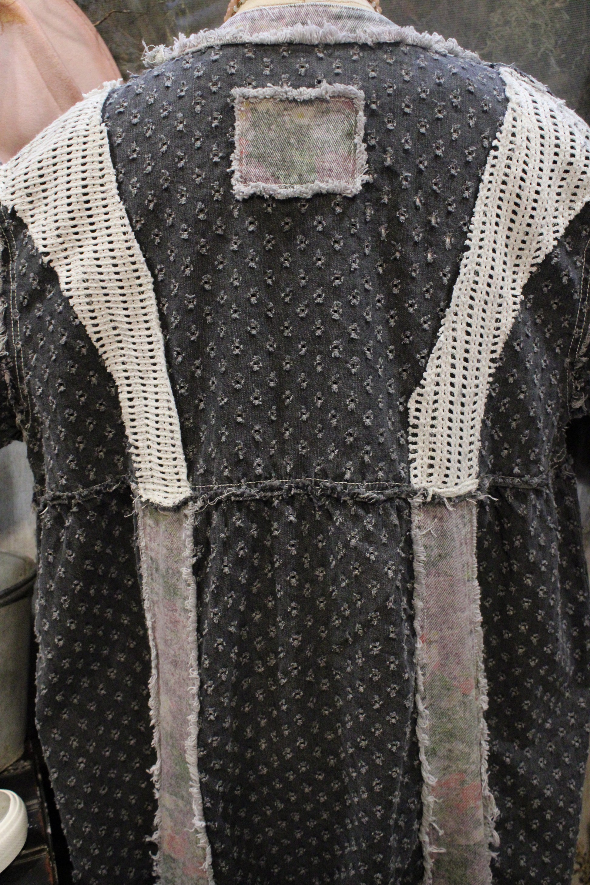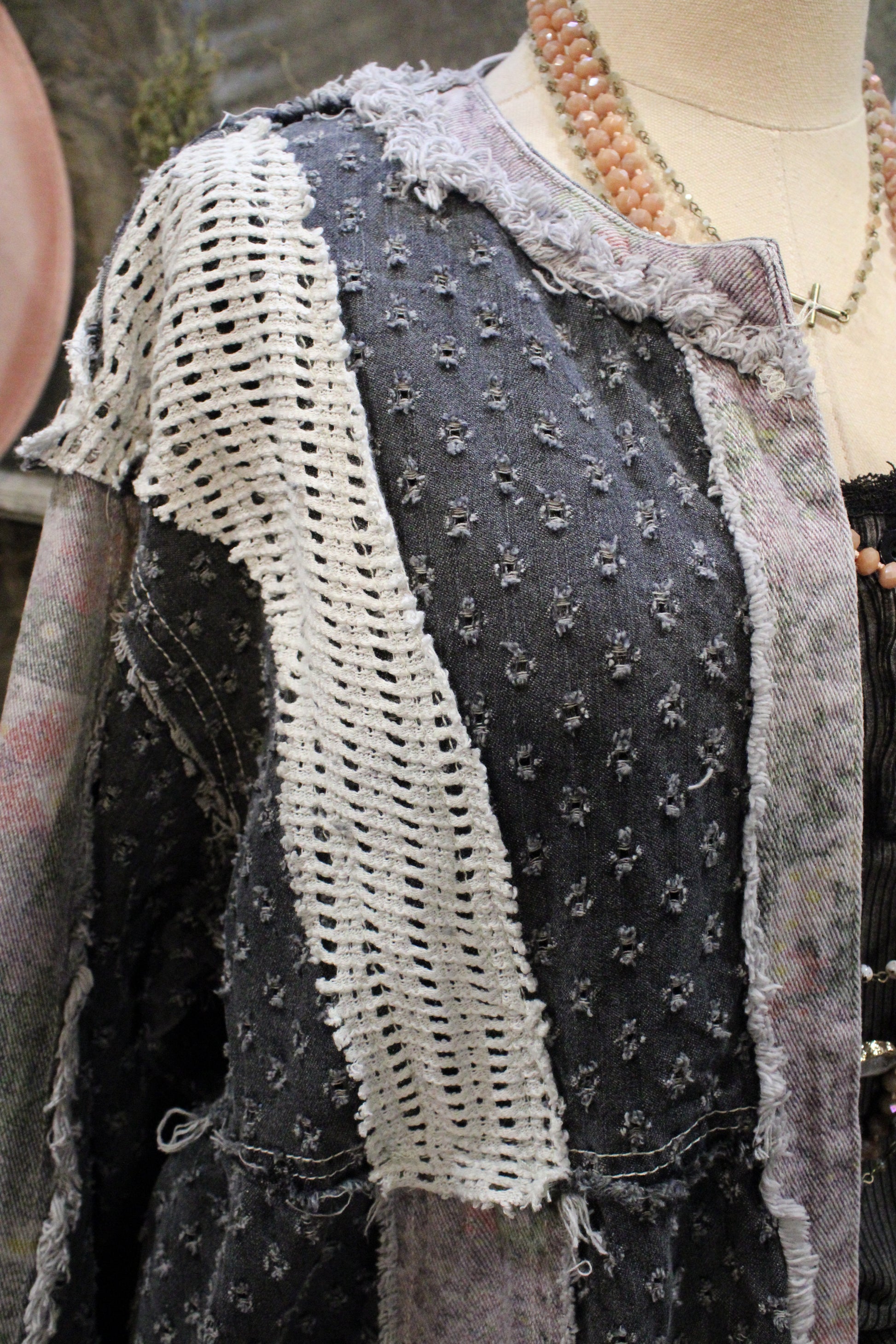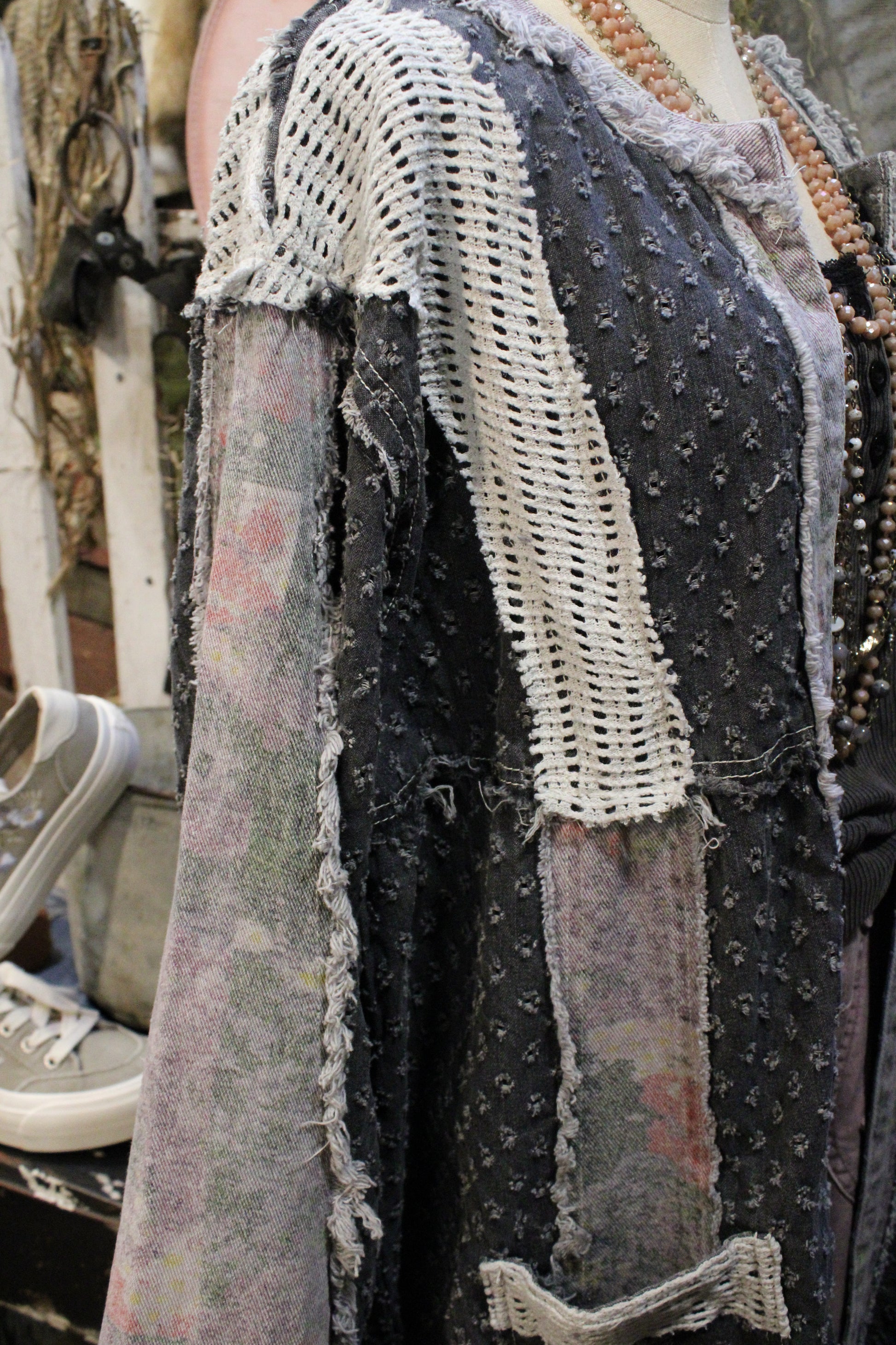 Introducing our Bullet Proof Maxi Duster - Wander freely and layer boldly! This statement piece is rich with vintage-inspired character and eclectic charm. Crafted from a mix of textured fabrics and tonal floral prints, this longline open-front duster features intentional patchwork detailing, crochet panels, and raw-edge seams for a lived-in, one-of-a-kind feel.