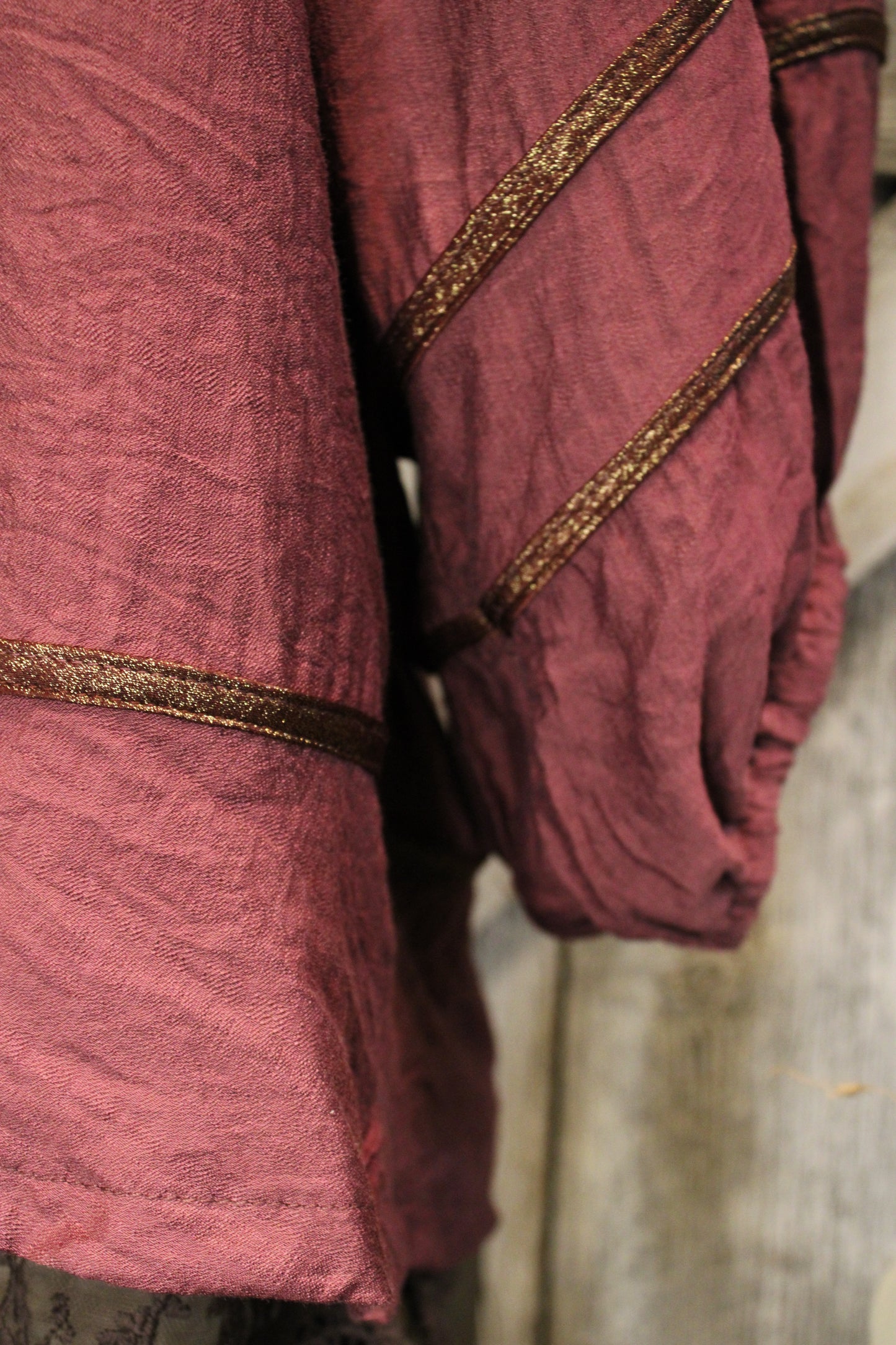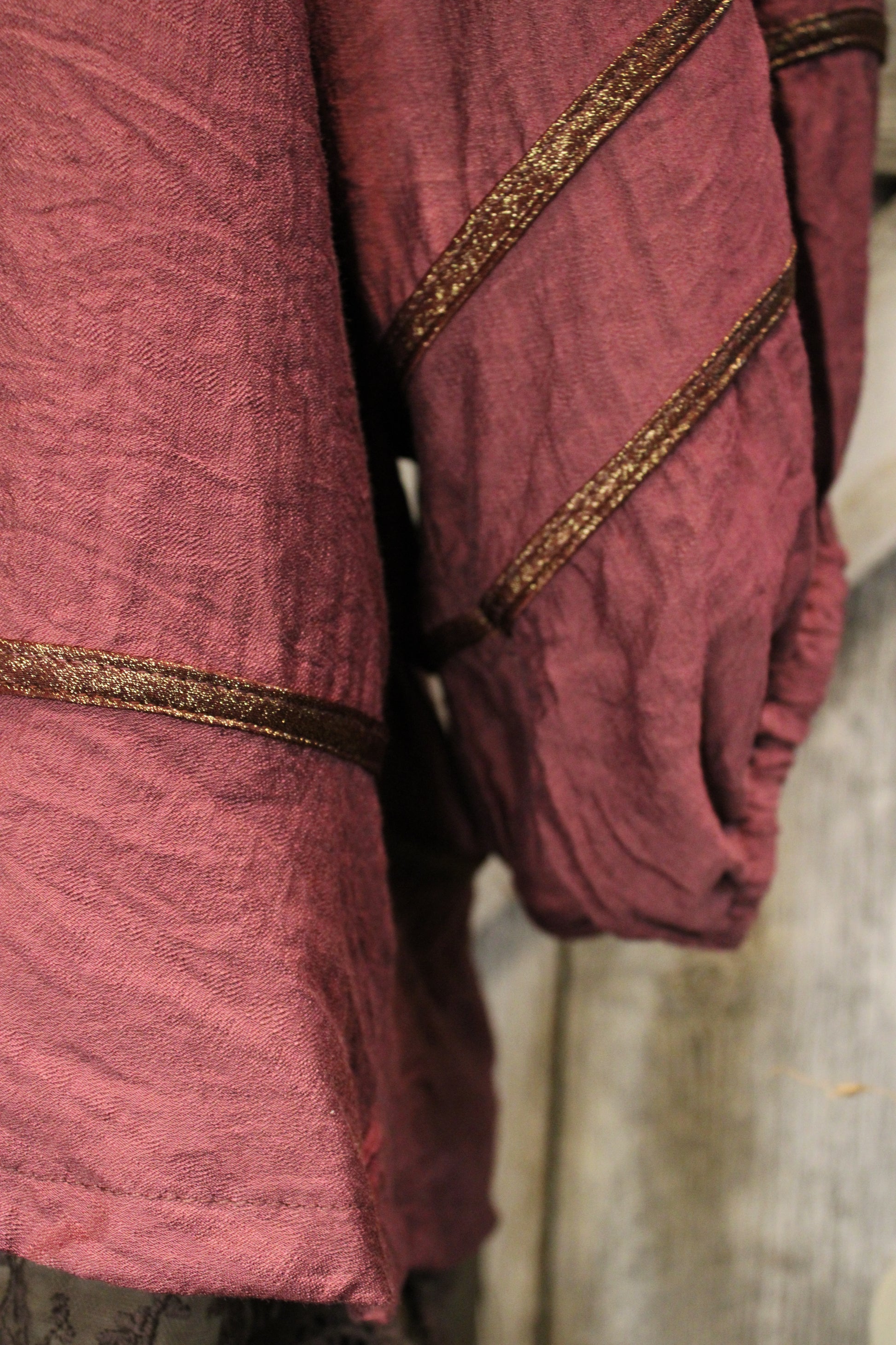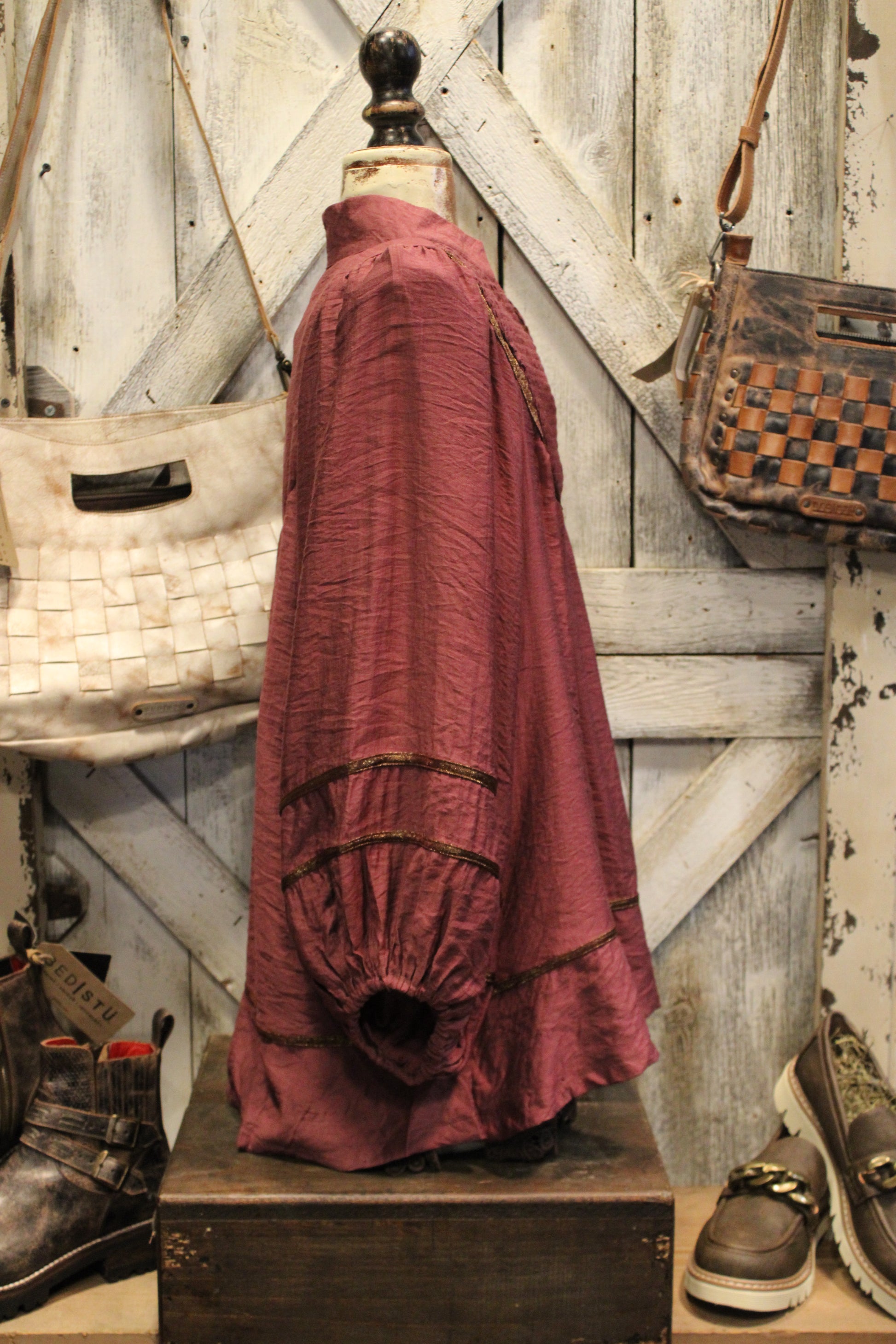 This deep wine-colored beauty features a smocked bodice for a flattering fit, with billowy sleeves and a relaxed, swingy silhouette that drapes effortlessly. The split neckline and delicate stitching details give it that rustic-feminine vibe, perfect for layering with lace or dressing up with your favorite necklace.