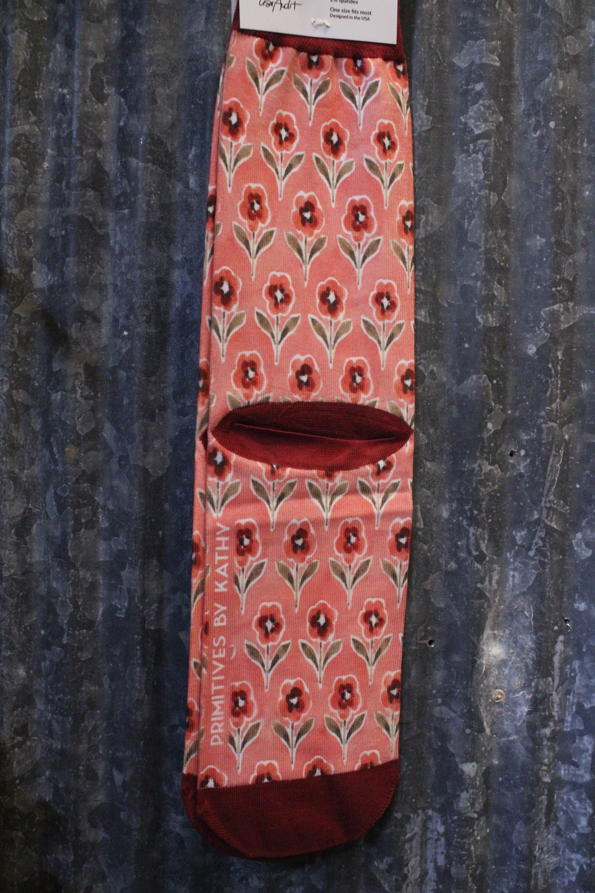 Introducing our Buttery Soft Pink Floral Socks, Add a pop of farmhouse charm to your day with these darling pink socks! Featuring a cheerful pattern of red and blush blooms with soft green leaves on a warm rose background, these socks are as cozy as they are cute.
