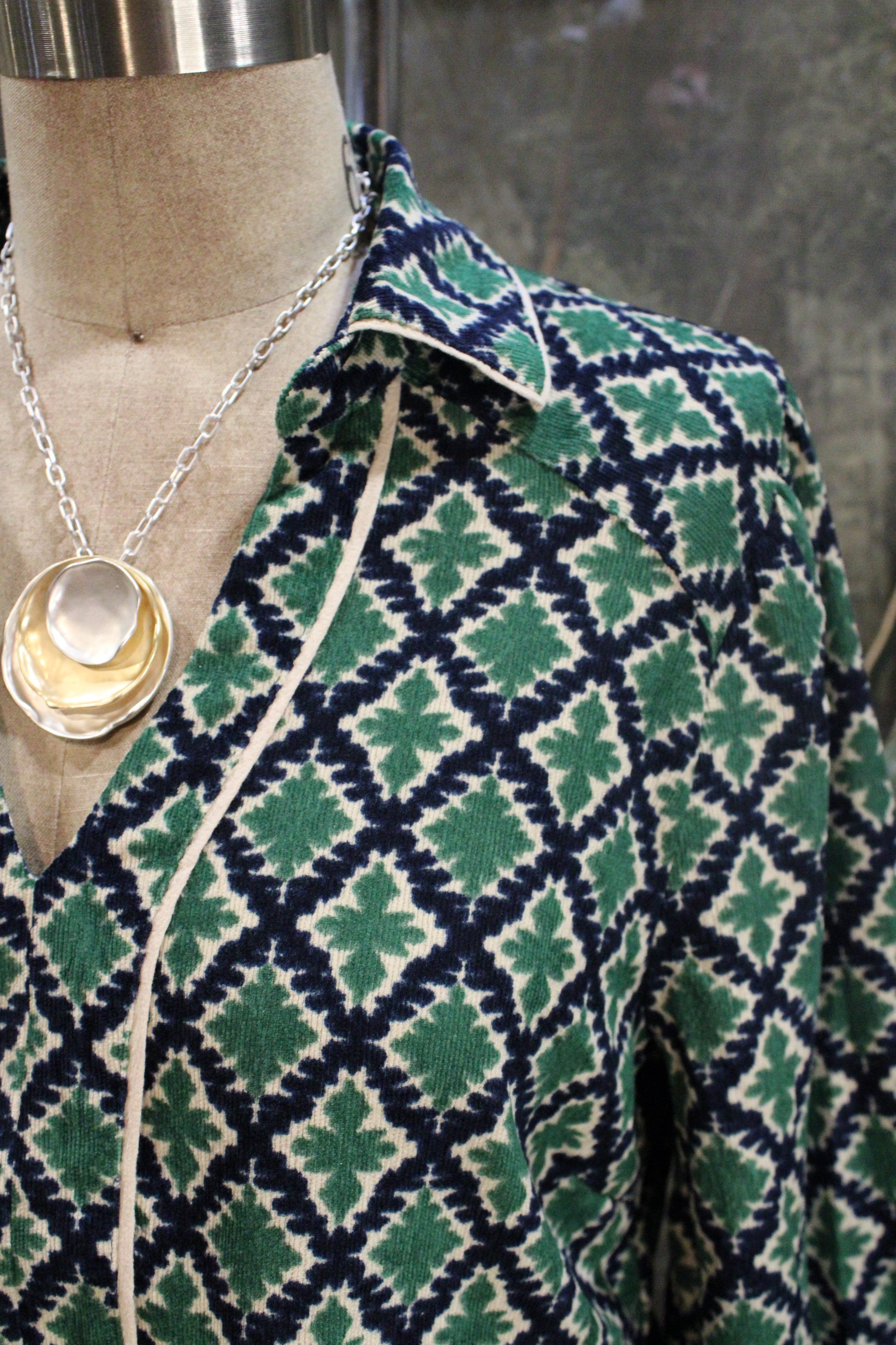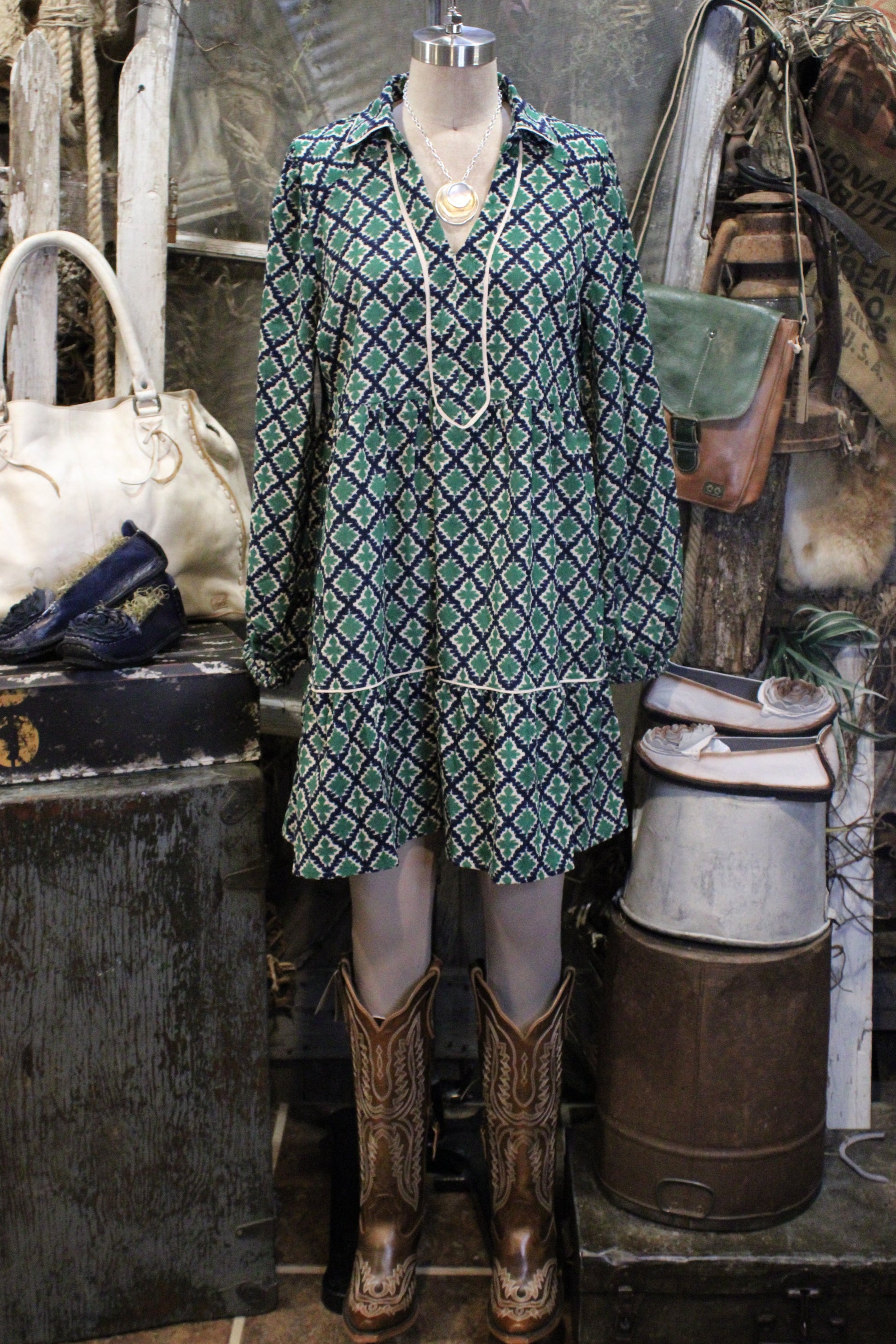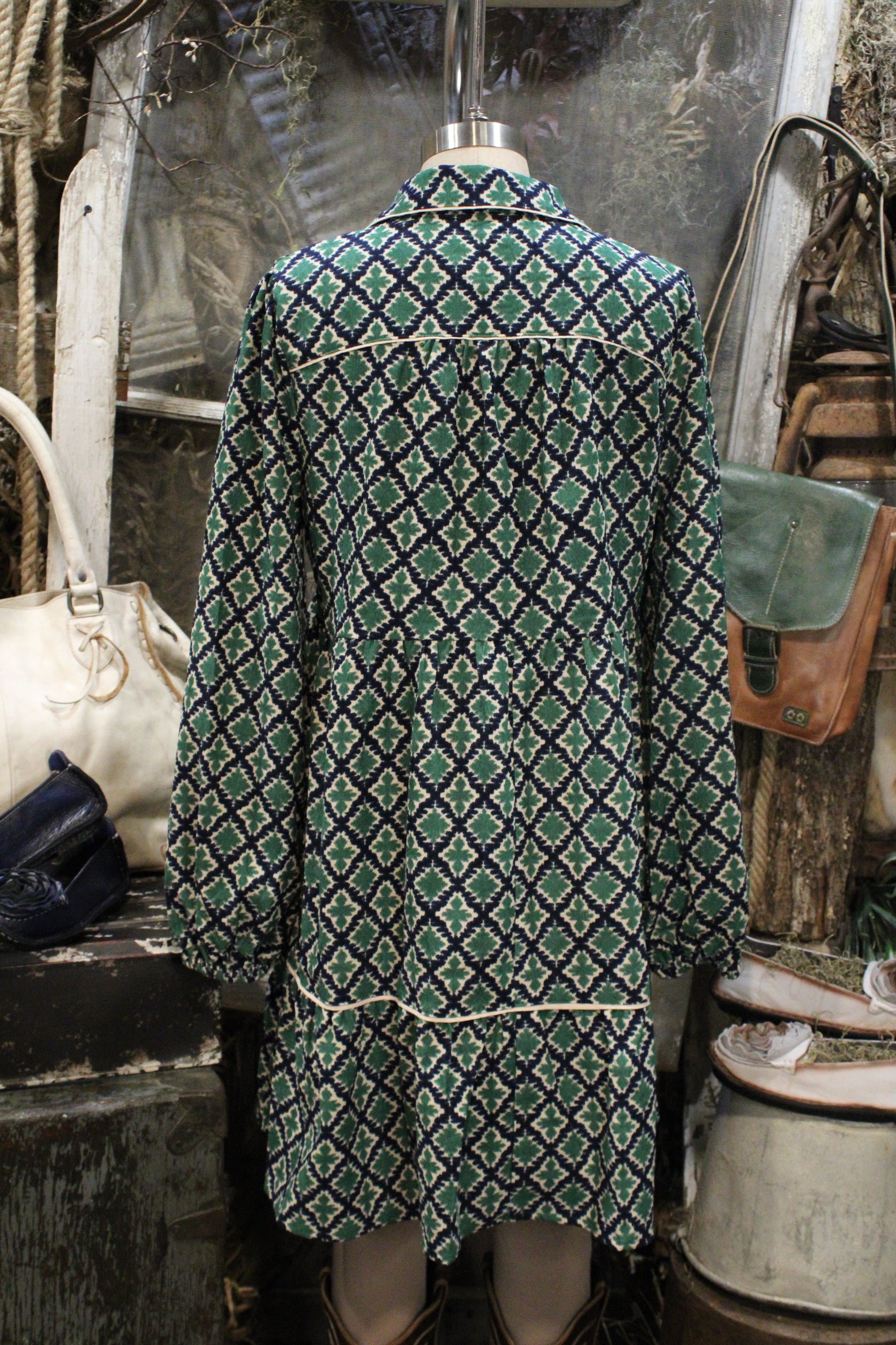 Introducing the Castleton Dress- Bold and effortlessly chic, this geometric print shirt dress is ready to make a statement. Designed with a collared neckline, long sleeves, and a relaxed tiered fit, it’s the perfect mix of structure and flow. The striking green and navy diamond pattern adds plenty of personality, while the soft fabric keeps it comfortable for all-day wear.