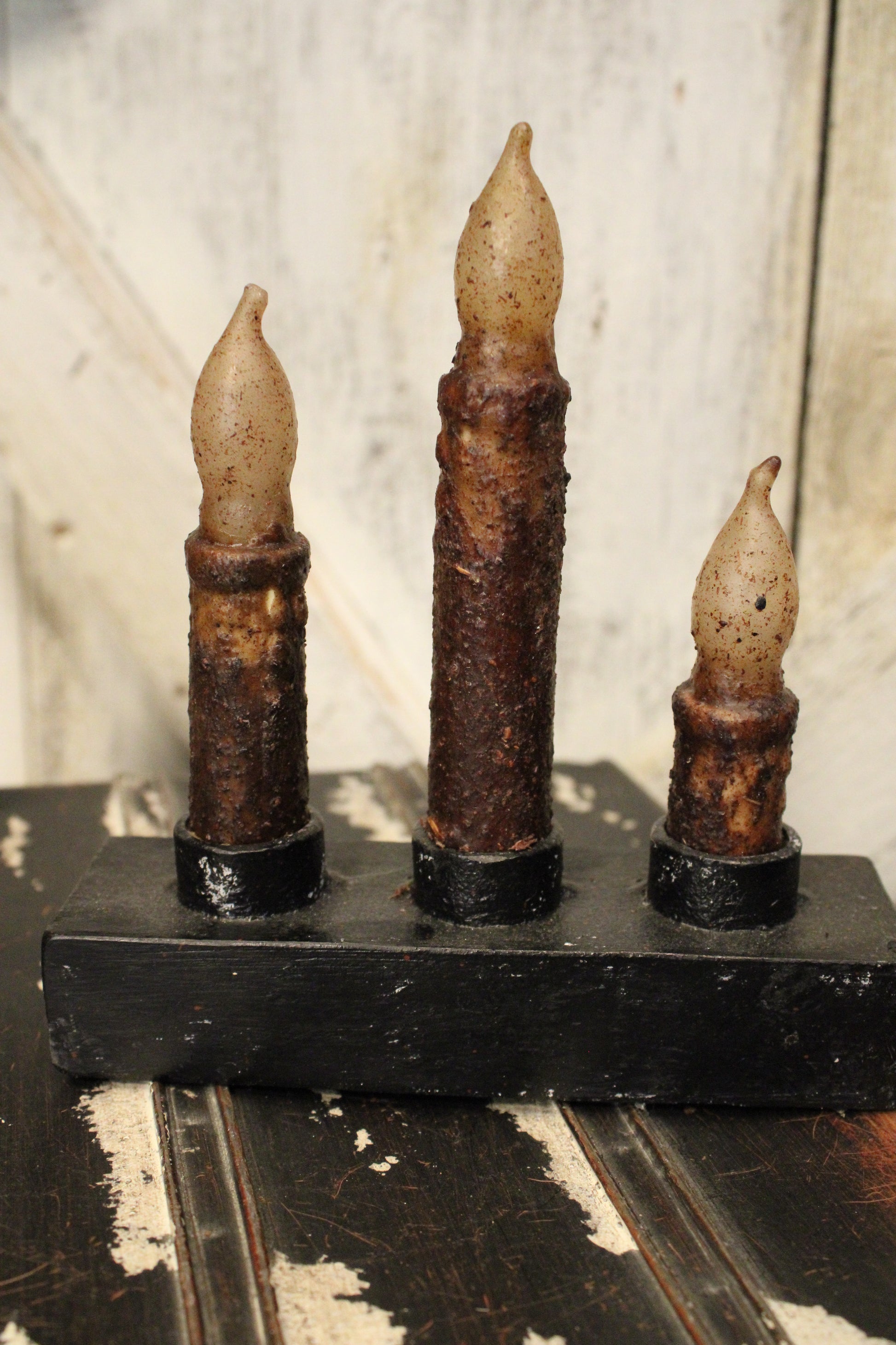 Introducing the Charming Candle Trio- Add a warm, old-fashioned glow to your home with this adorable primitive triple taper candle. The grungy, textured finish and uneven “dripped” look give it that perfect country-aged charm—like something straight out of a cozy farmhouse kitchen.