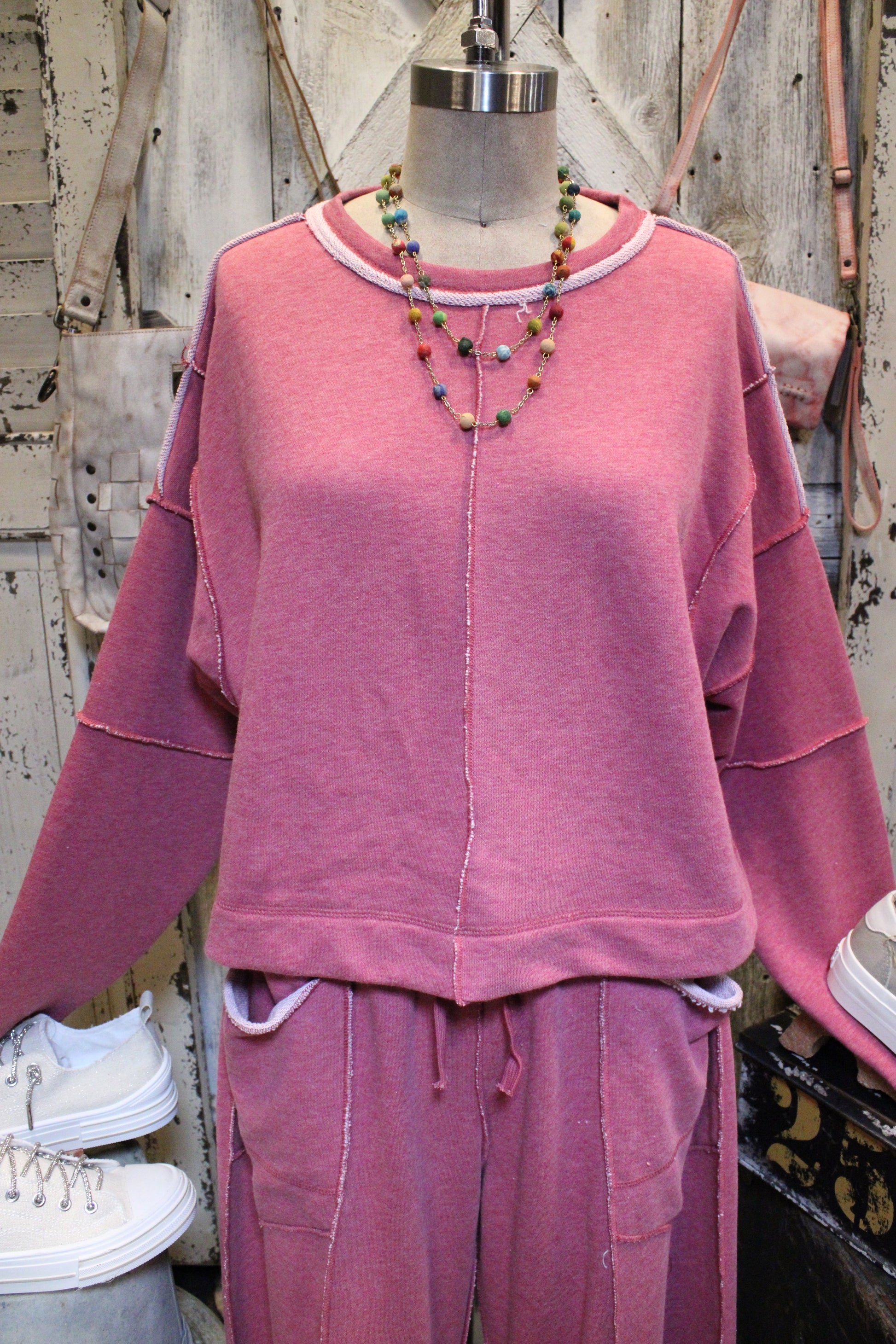 Introducing the Cozy Rose Loungewear Set-Get ready to lounge in farm-girly comfort and charm! This adorable set in this gorgeous rosy hue is the ultimate blend of laid-back and lovely. The soft, washed knit fabric feels dreamy against your skin, while the relaxed, oversized top and wide-leg drawstring pants keep you comfy all day long.