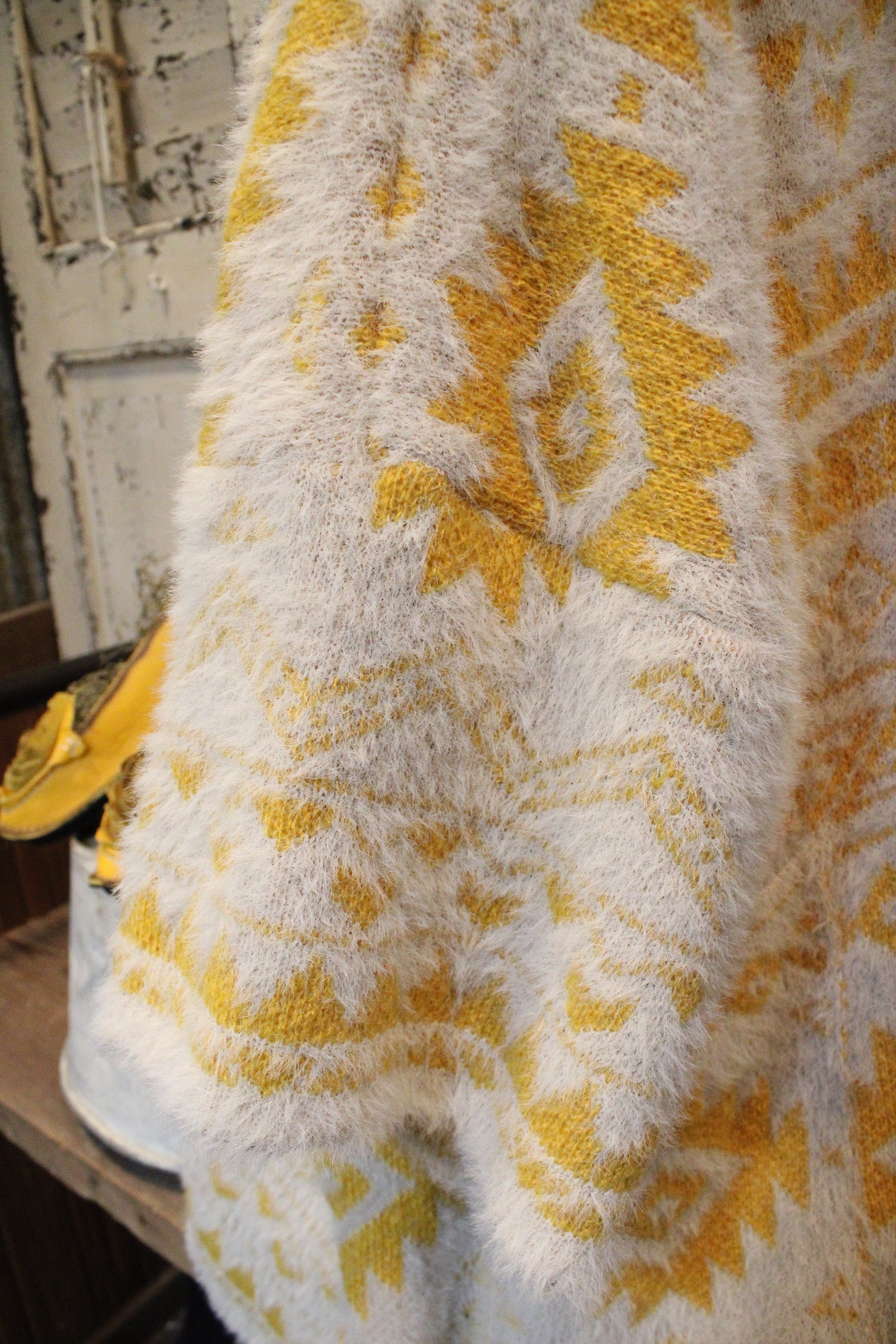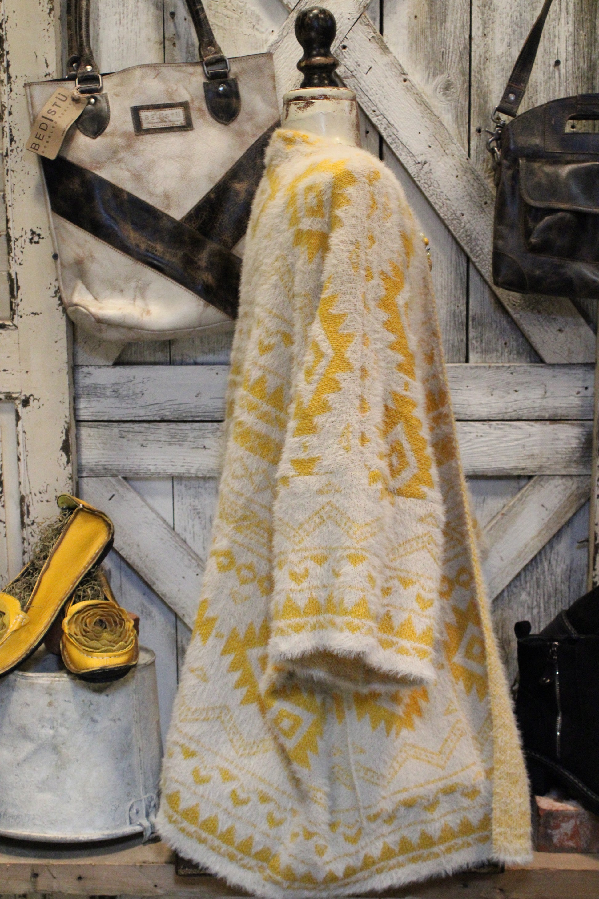 Introducing the Desert Gold Aztec Cardigan – This cardigan wraps you up in soft, snuggly comfort with a bold mustard and cream Aztec pattern that pops with personality. It’s the perfect layering piece for chilly days on the farm, weekend coffee runs, or cozy nights by the fire.