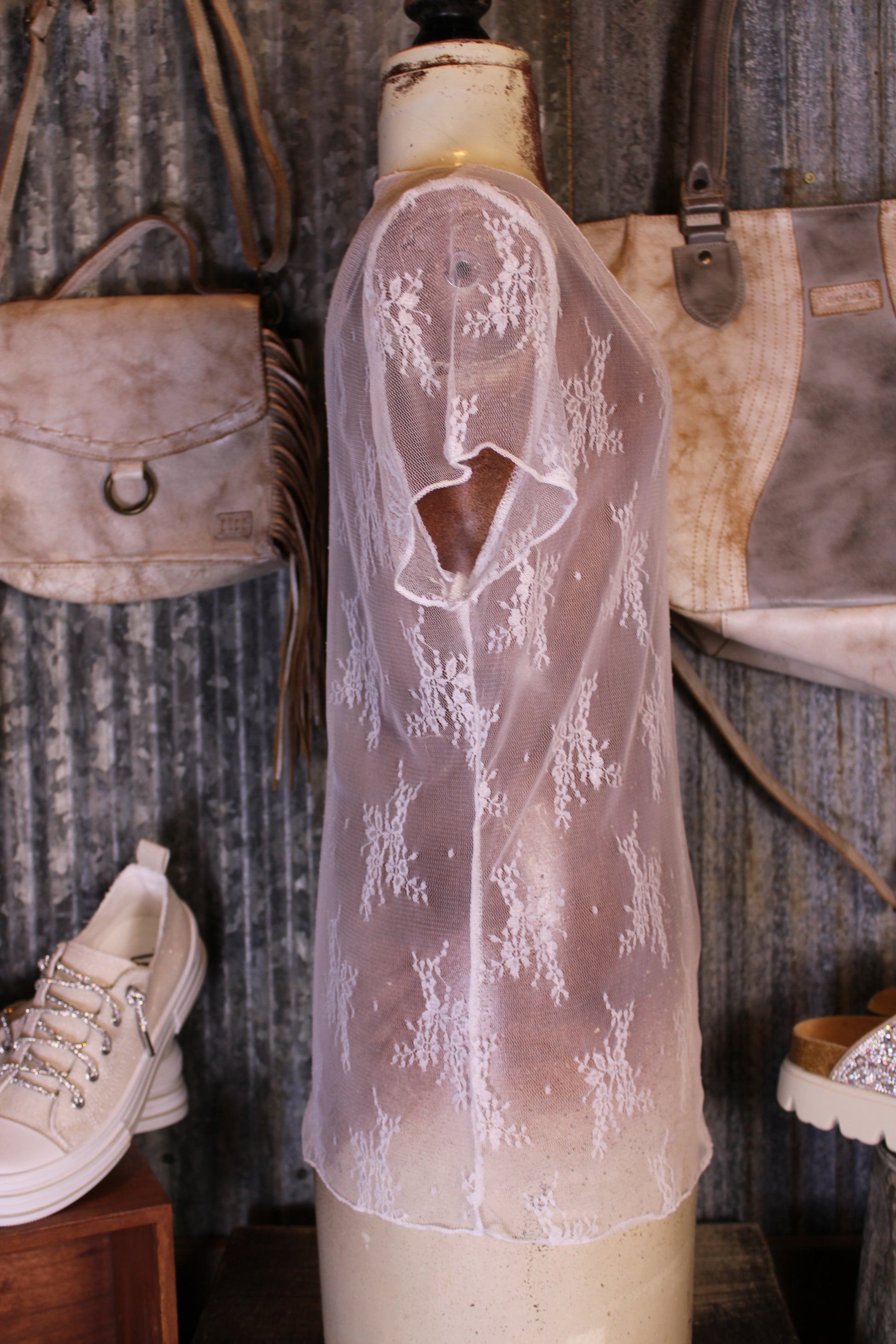 Introducing our Desert Lily Mesh Top – This delicate lace mesh top is the prettiest little layer your wardrobe has been waiting for. Featuring a soft sheer design with an allover lace pattern, it brings just the right touch of feminine charm and detail to any outfit.