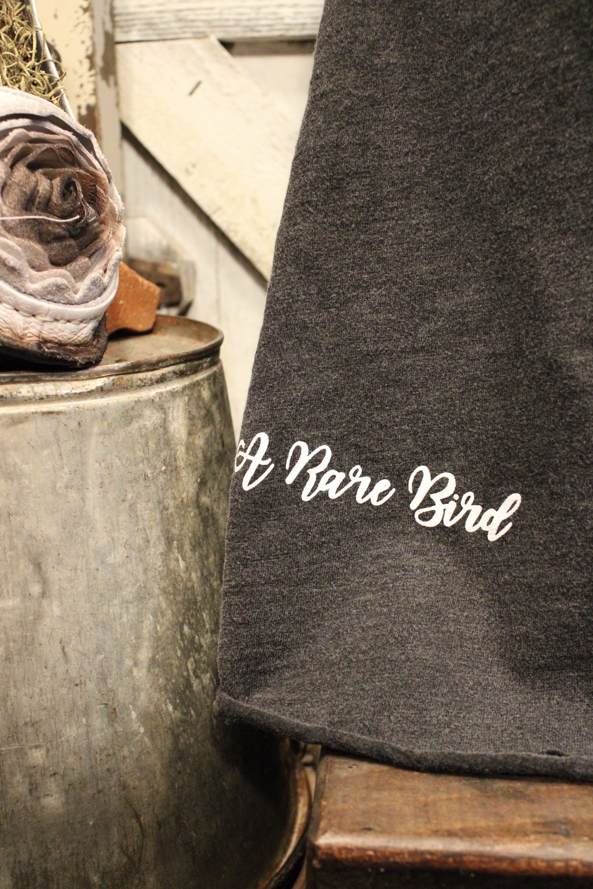 Introducing the Don't Ruffle My Feathers Tunic – This charcoal graphic tee brings bold personality and effortless cool together in one standout piece. Featuring the phrase “Don’t Ruffle My Feathers” in an elegant script, it pairs a strong message with a soft, worn-black look that feels perfectly broken-in without sacrificing style. Thoughtful distressing throughout adds depth and character, giving each tee a unique, vintage-inspired edge.