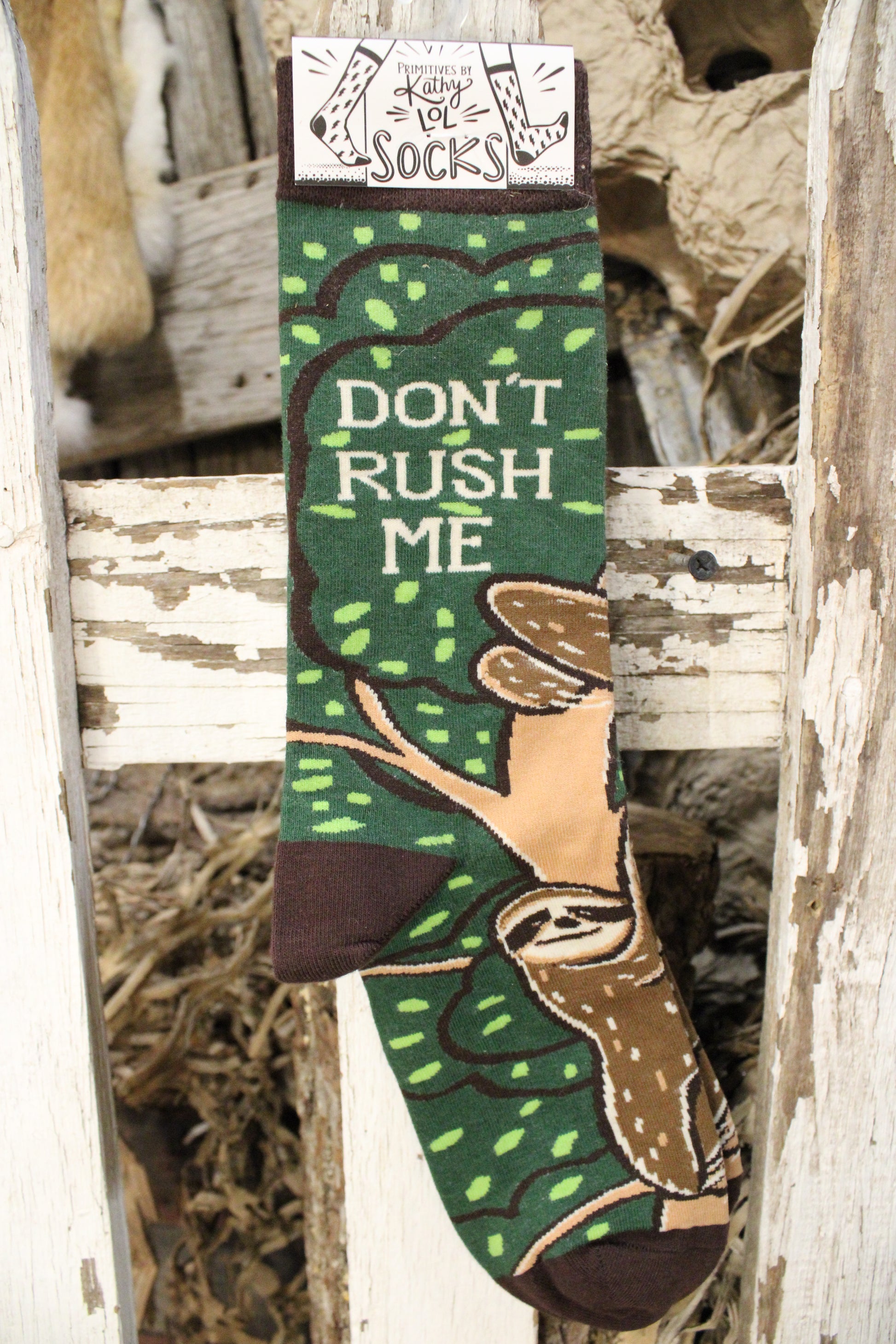 Introducing our "Don't Rush Me Socks" - The perfect socks for anyone whose spirit animal moves at… well… a more relaxed pace. These hilarious sloth socks boldly deliver the message we’ve all wanted to say at least once: