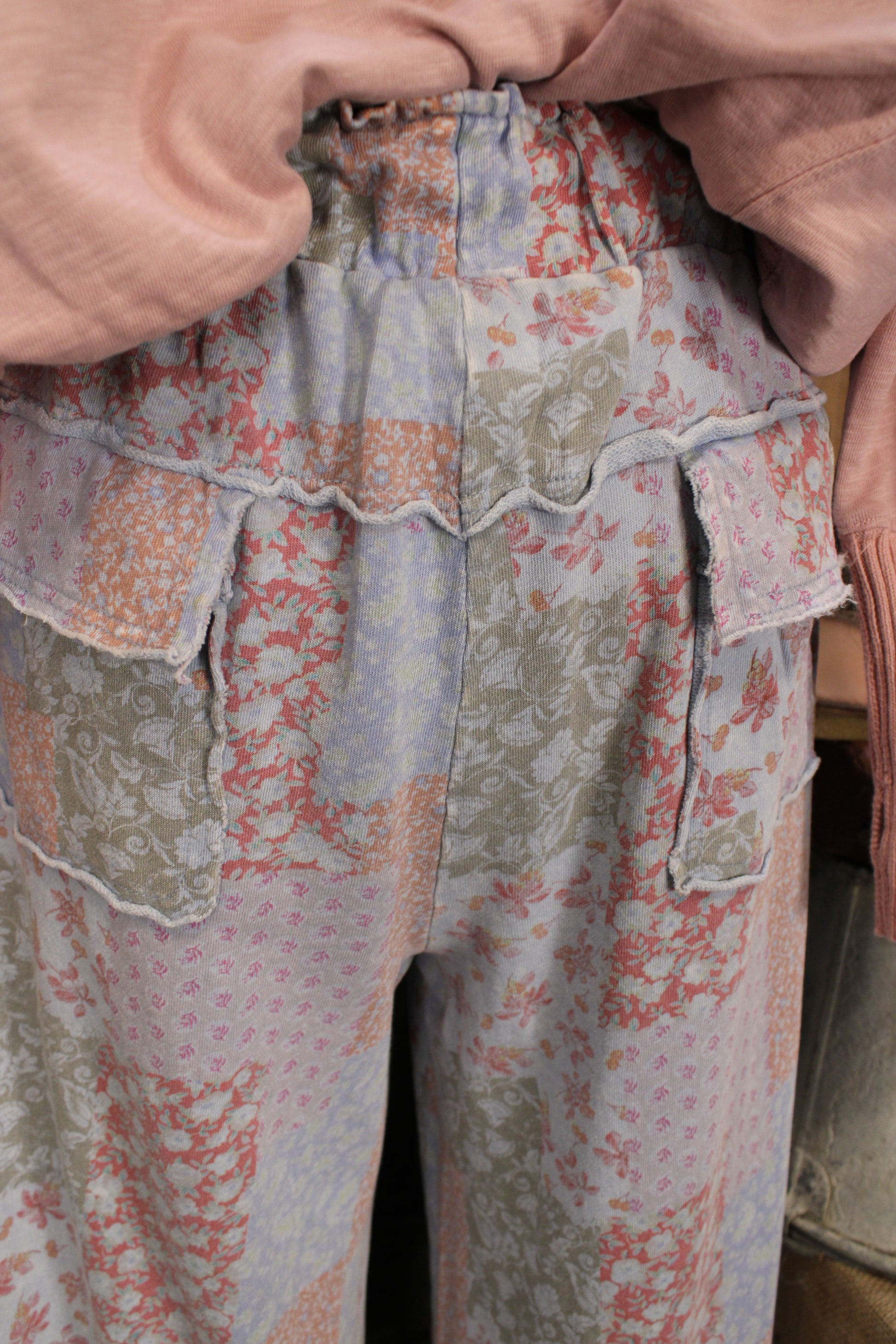 Introducing the Easy Breezy Days Cotton Pants by Easel! Soft patchwork lounge pants with a relaxed wide-leg silhouette and an easy elastic waistband with adjustable drawstring for all-day comfort. The mixed pastel floral patch print gives these pants a sweet, vintage-inspired look while the roomy front pockets add a laid-back, functional touch. Lightweight and flowy, they’re perfect for cozy days at home or styling with your favorite oversized sweater and sneakers for an effortless, casual outfit.