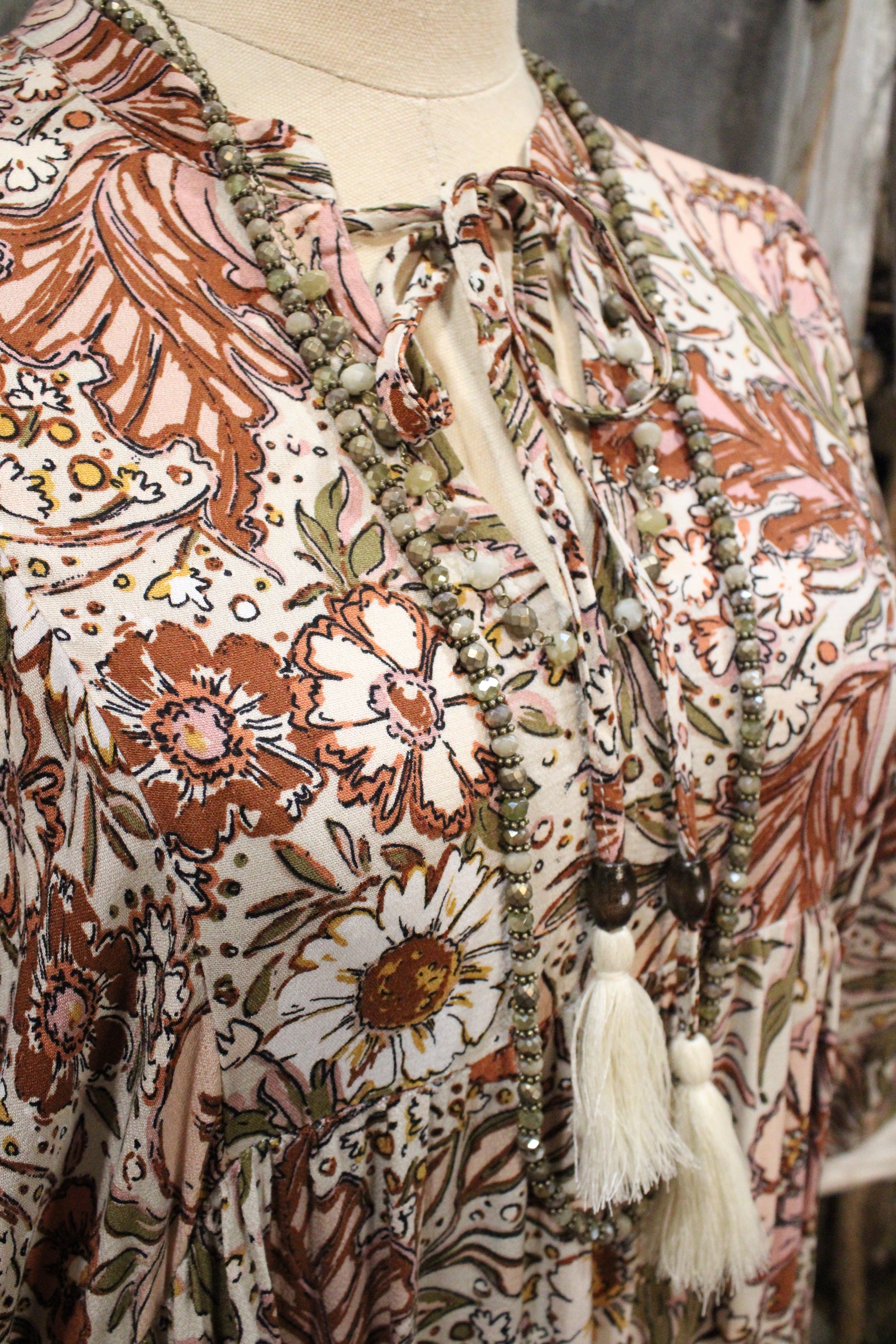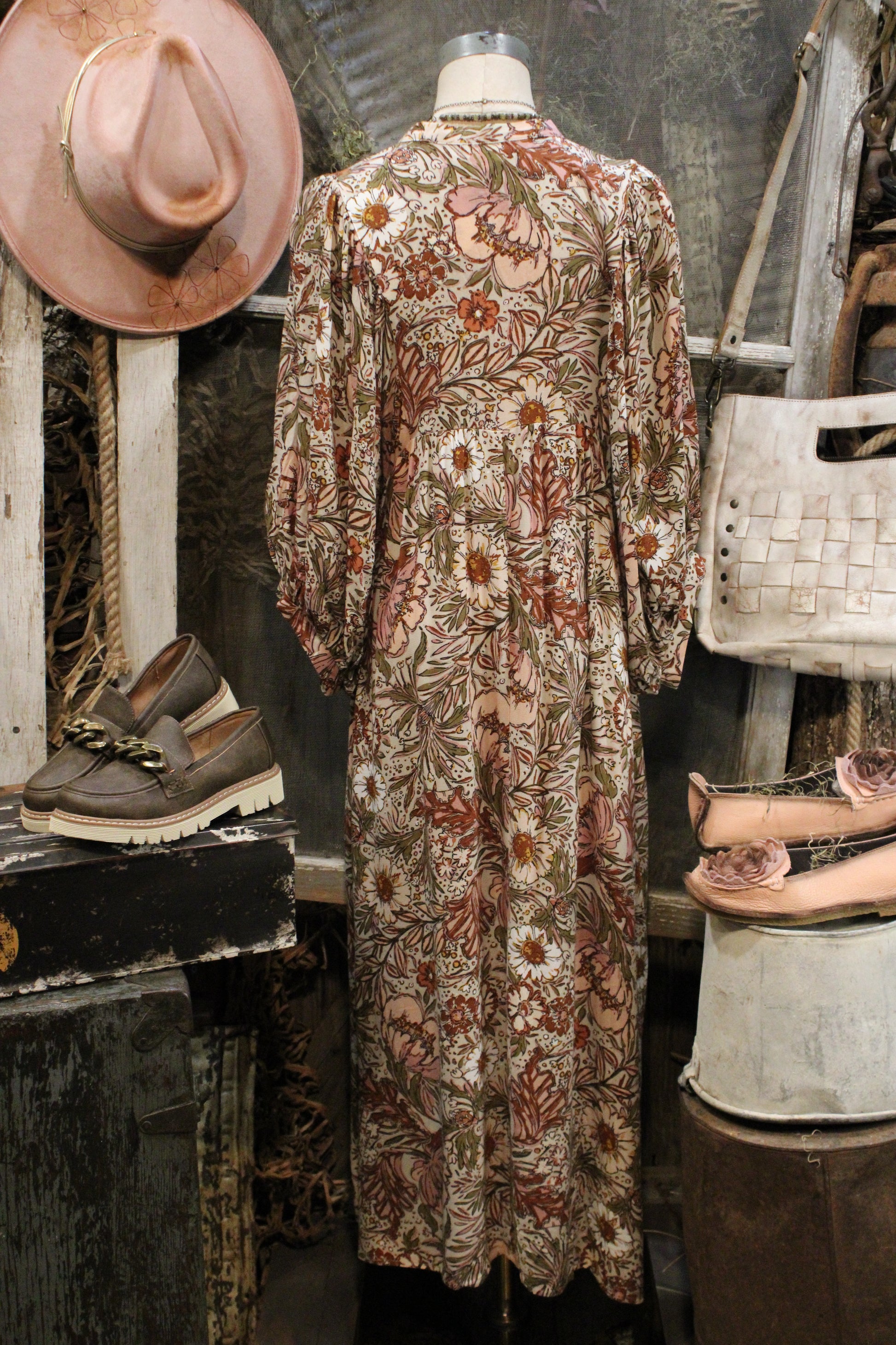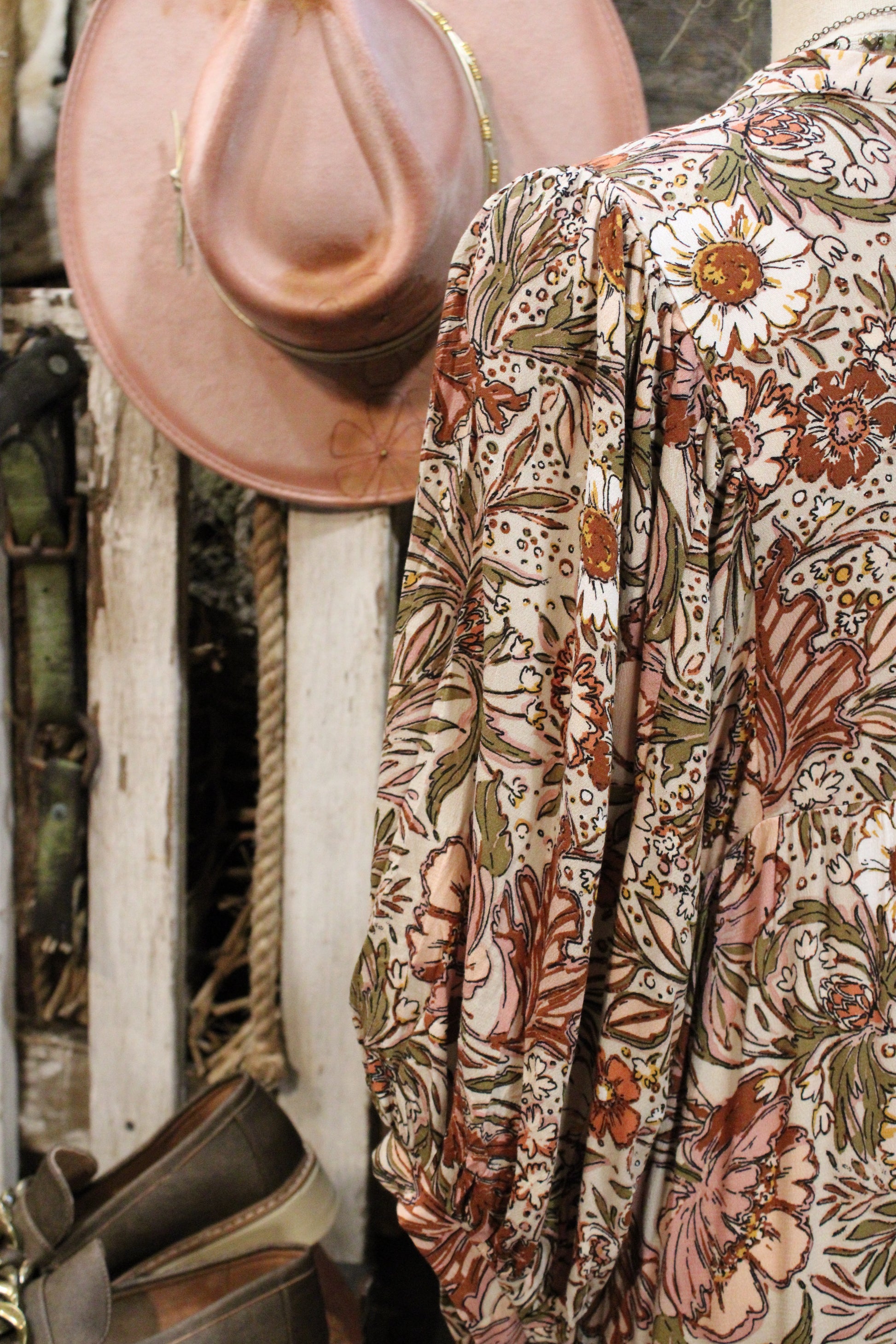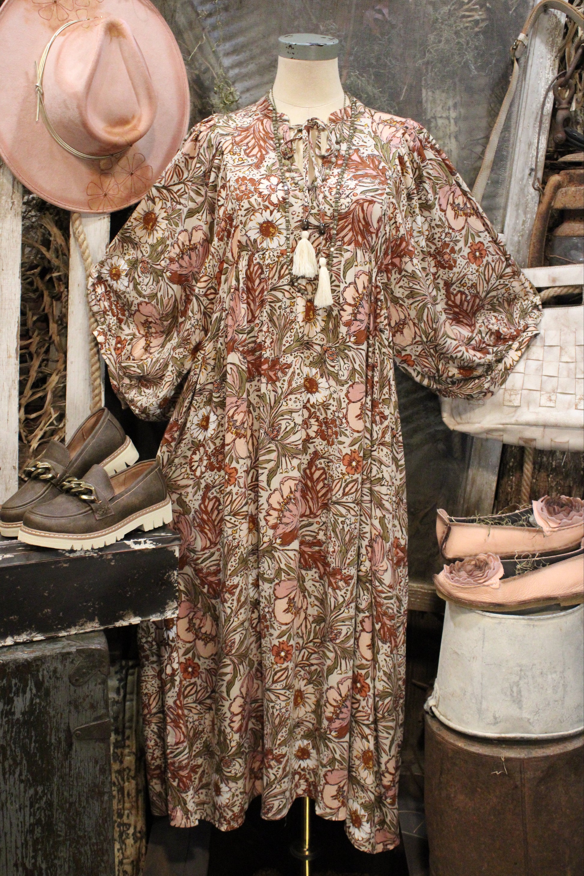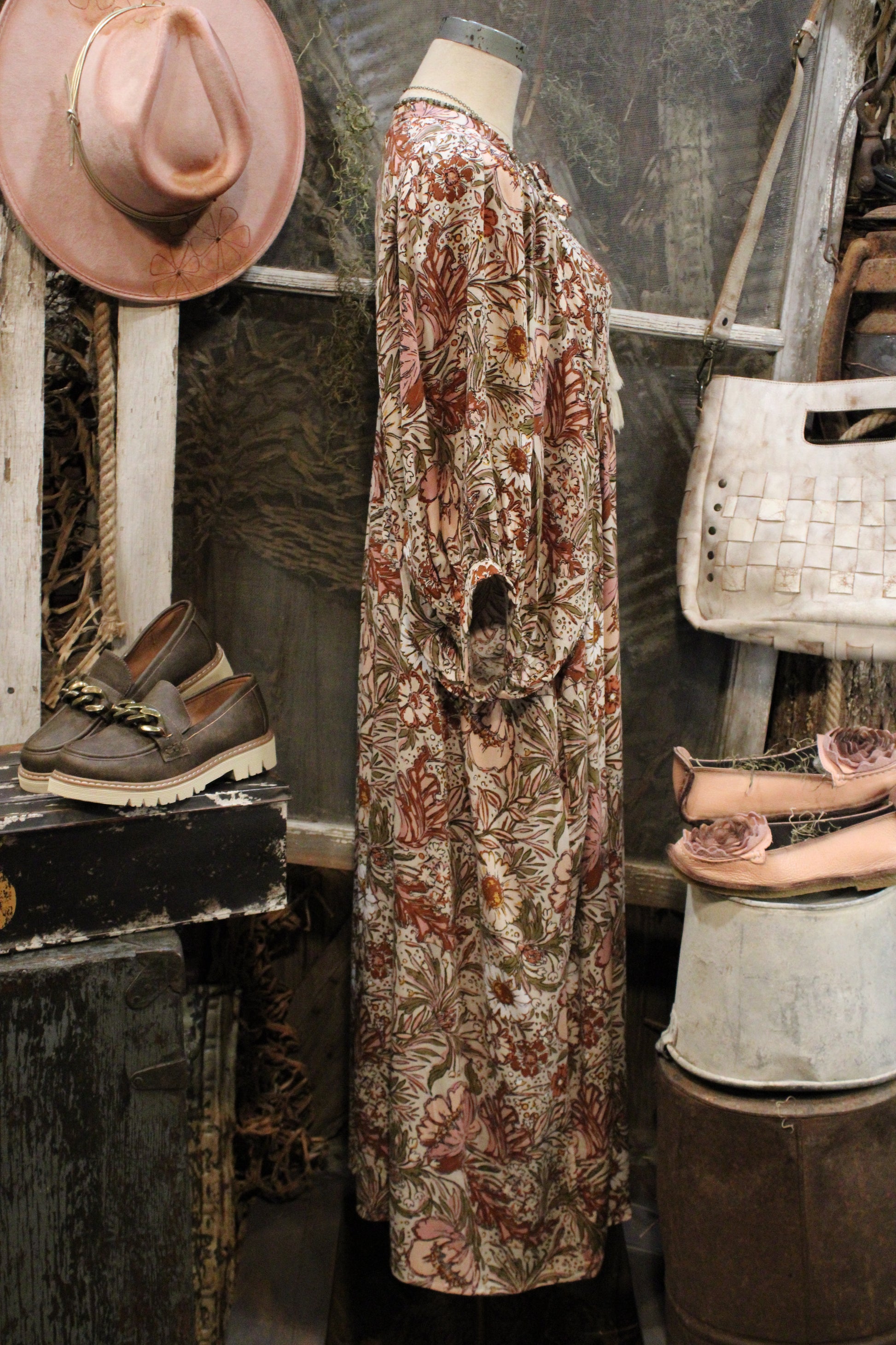 Introducing the Easy Breezy Maxi Dress- This breezy, bohemian silhouette flows effortlessly with every step — like a soft whisper through the trees. Designed with a vintage-inspired floral print, it feels like something you’d stumble upon in a hidden garden.