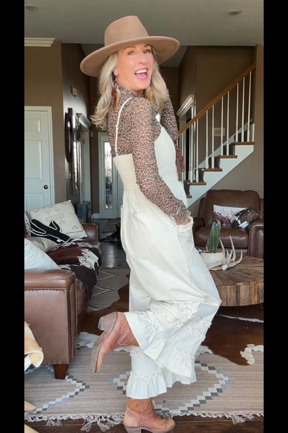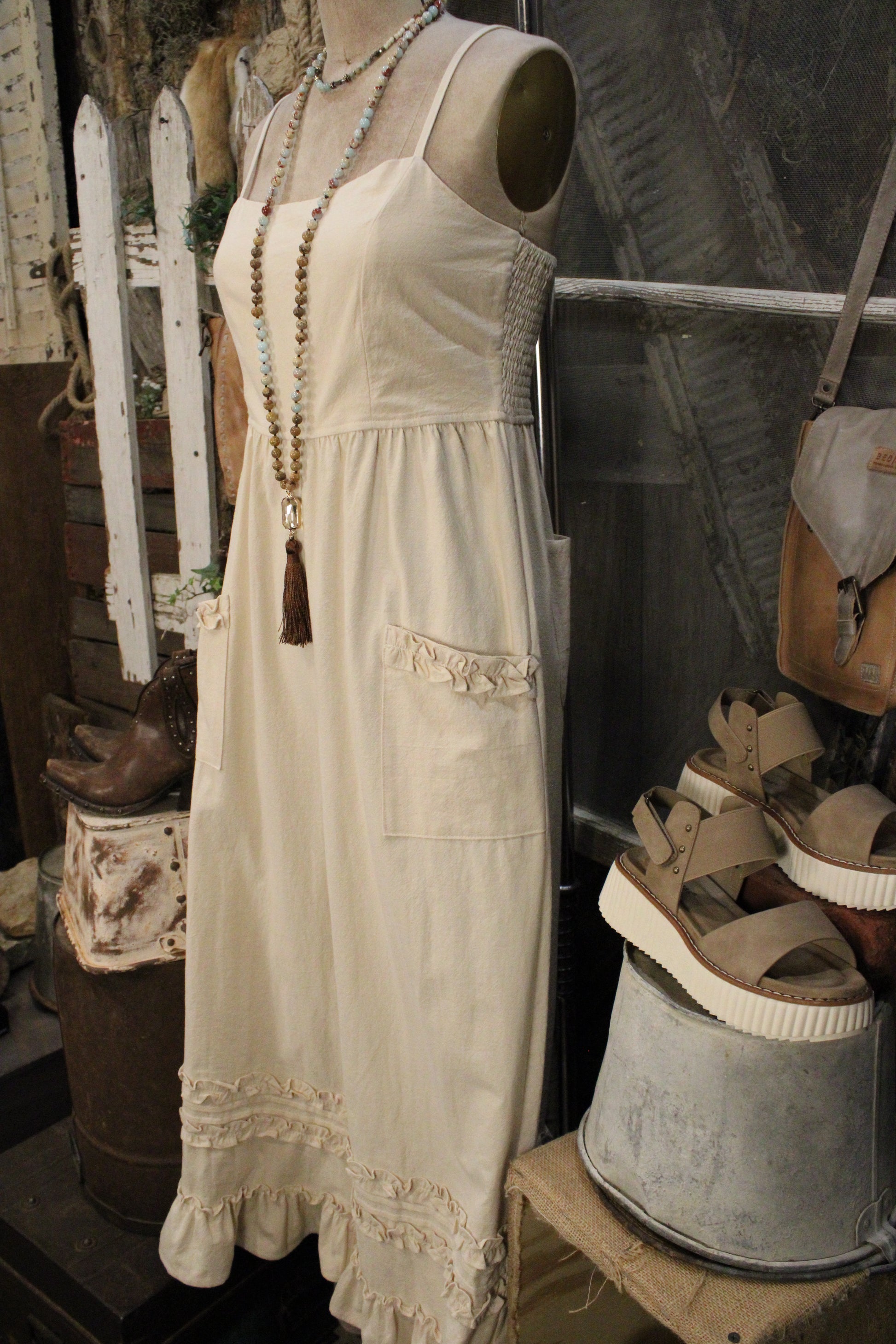 Thoughtful details like front pockets add everyday practicality, while the light, airy fabric makes it perfect for warm days and easy layering. Style it with sandals for a casual outing or dress it up with boots and accessories for a polished, farm-girl inspired look.