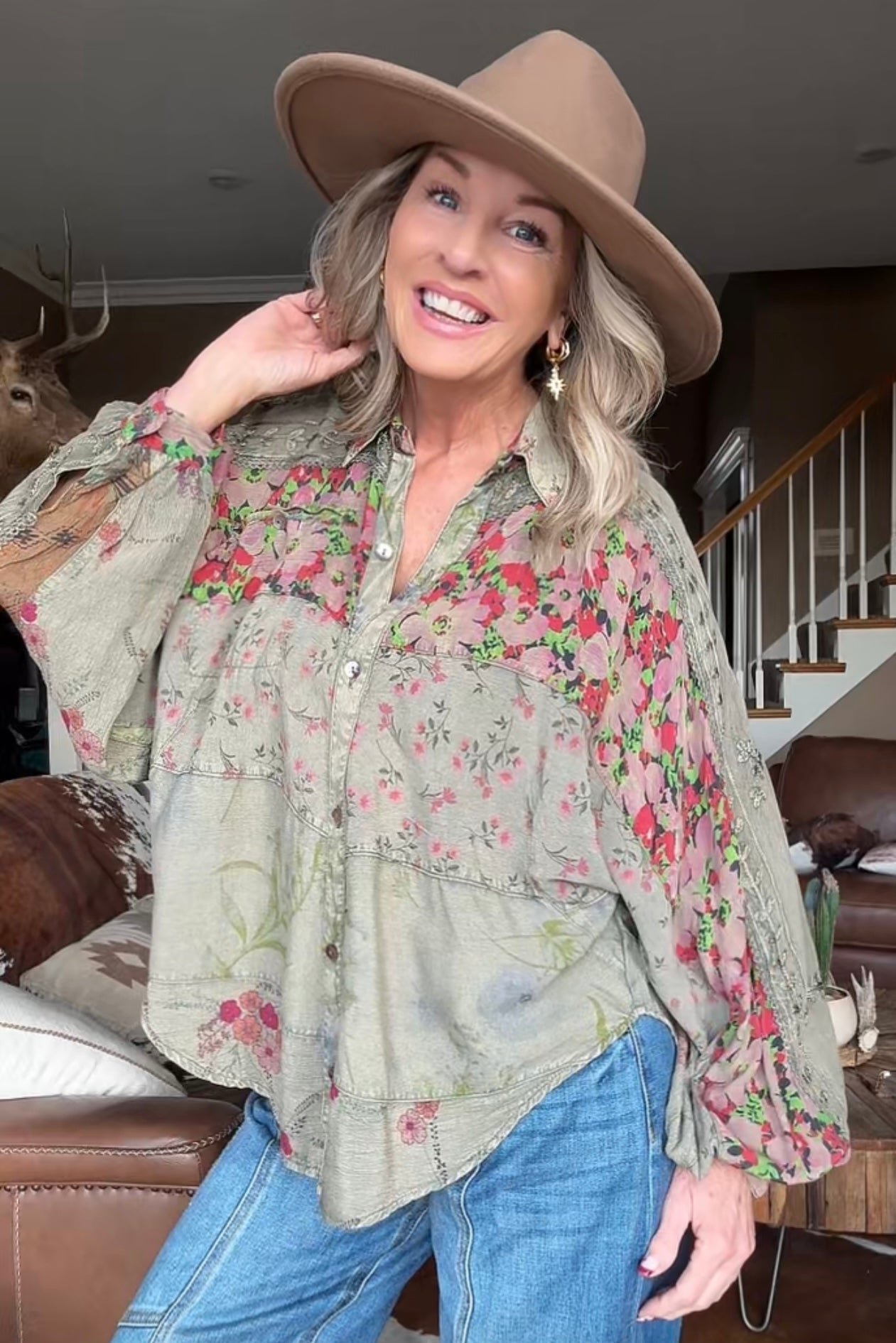 Enchanted Gravel Button Up Blouse