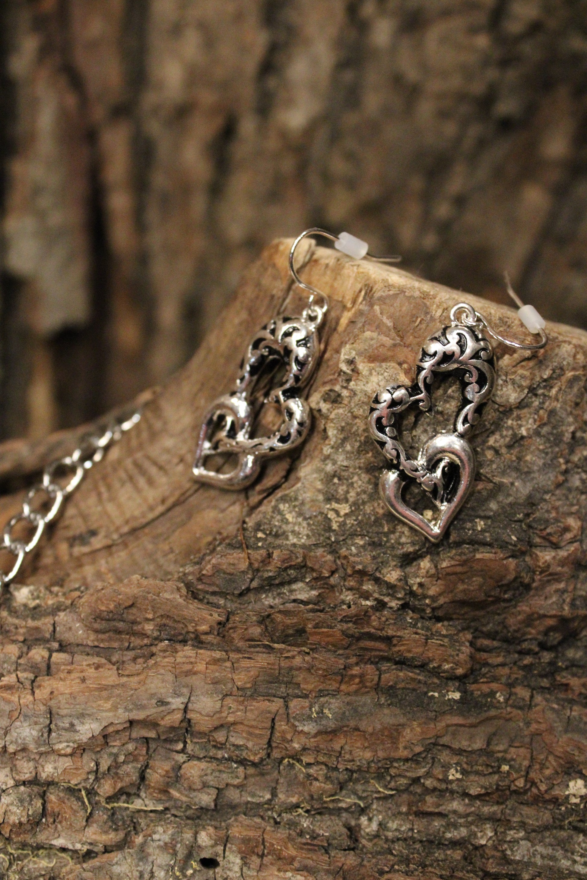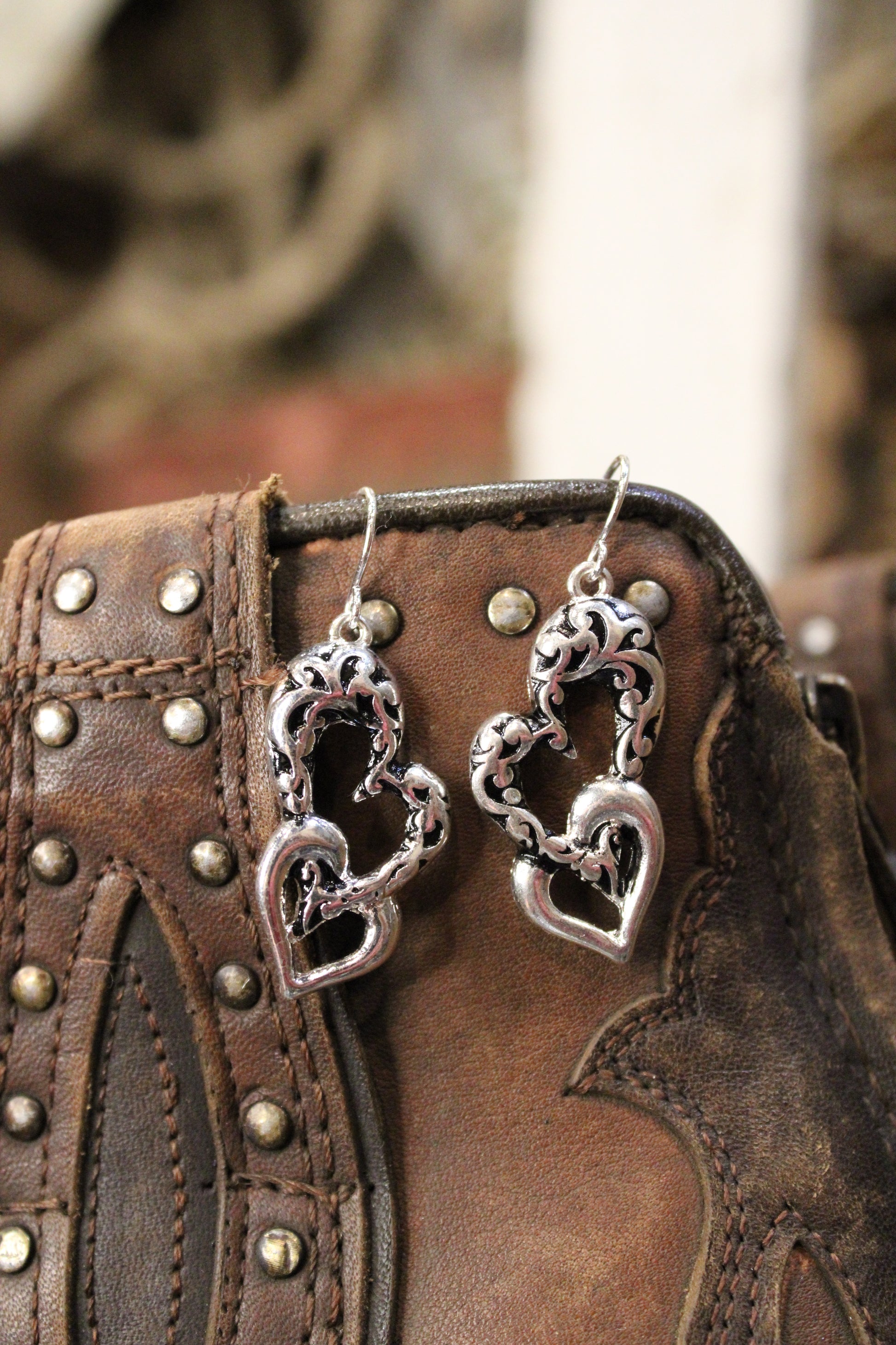 Introducing our beautiful Endless Love Silver Earrings, the perfect accessory to add a touch of elegance to any outfit! These silver heart earrings bring a perfect blend of rustic charm and romantic detail. Designed with an open heart silhouette, each earring features intricate scrollwork accents that add a vintage-inspired feel. The lightweight design and simple hook closure make them comfortable for all-day wear while still adding eye-catching detail.