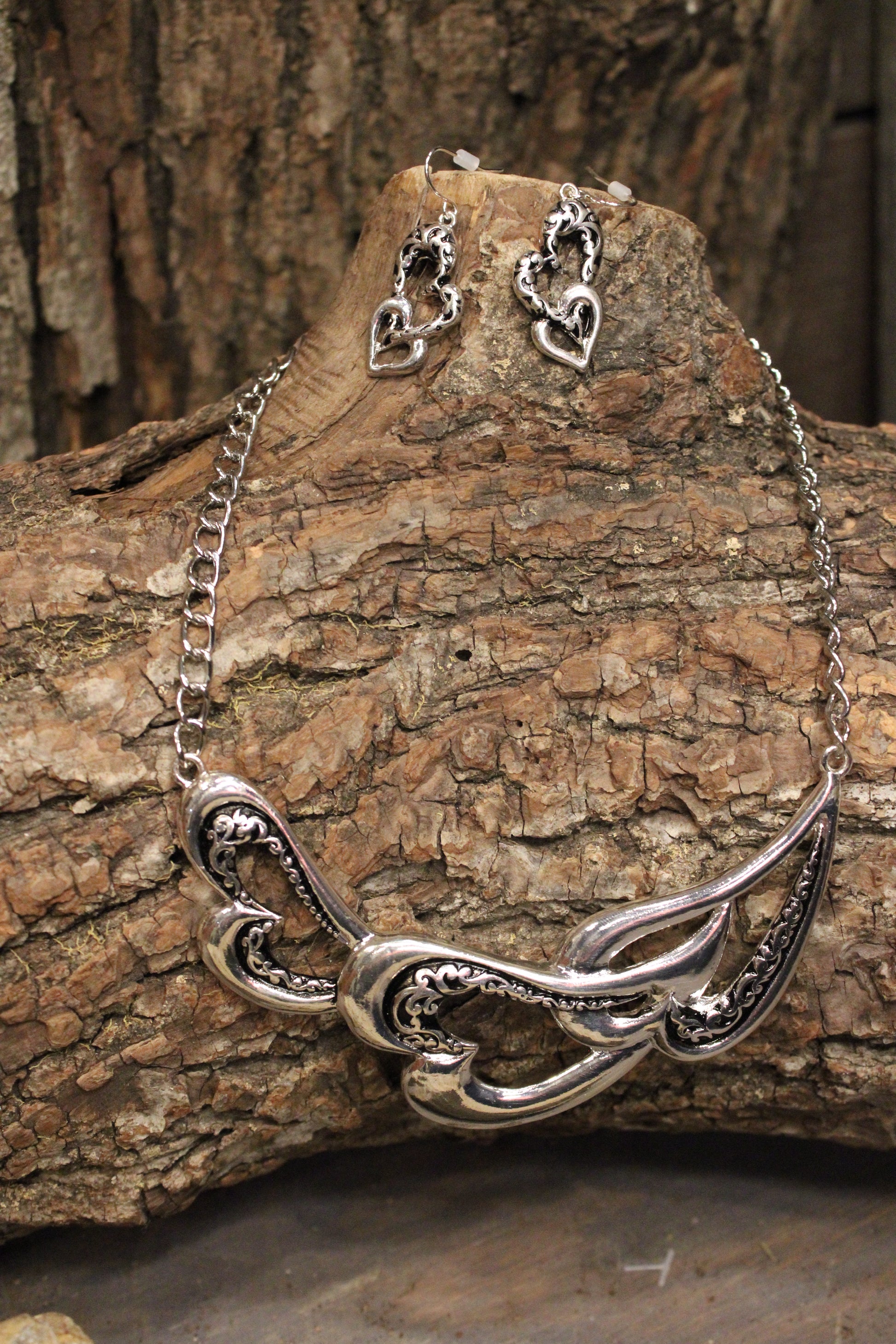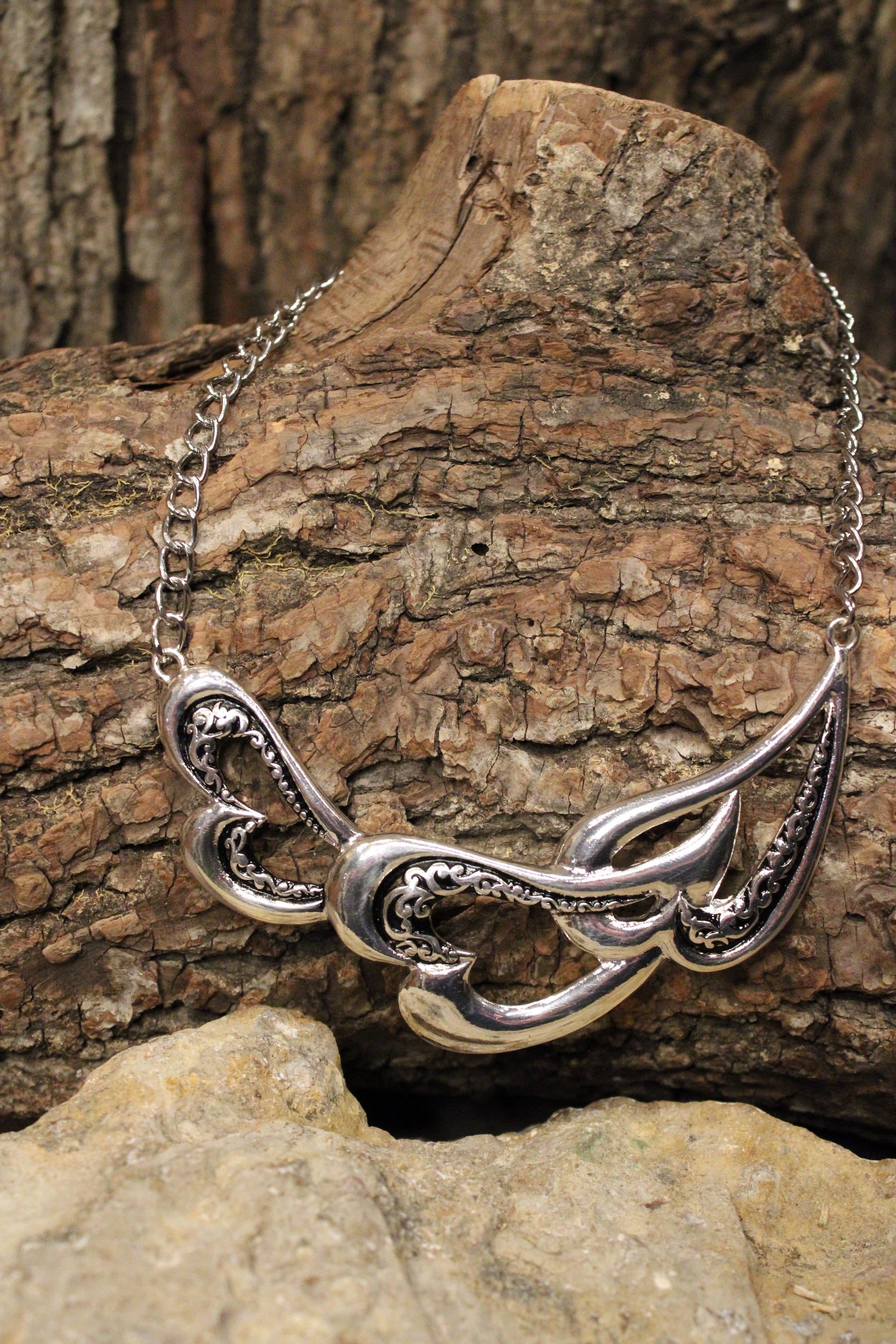 Introducing the Endless Love Silver Necklace, This silver necklace is a true statement piece with a graceful, free-flowing design that feels both western-inspired and beautifully artistic. The sculpted curves and open scrollwork details create depth and movement, giving it an elegant yet slightly rustic edge. Finished with a polished silver tone and a classic chain, it sits perfectly at the neckline and draws the eye without feeling heavy.