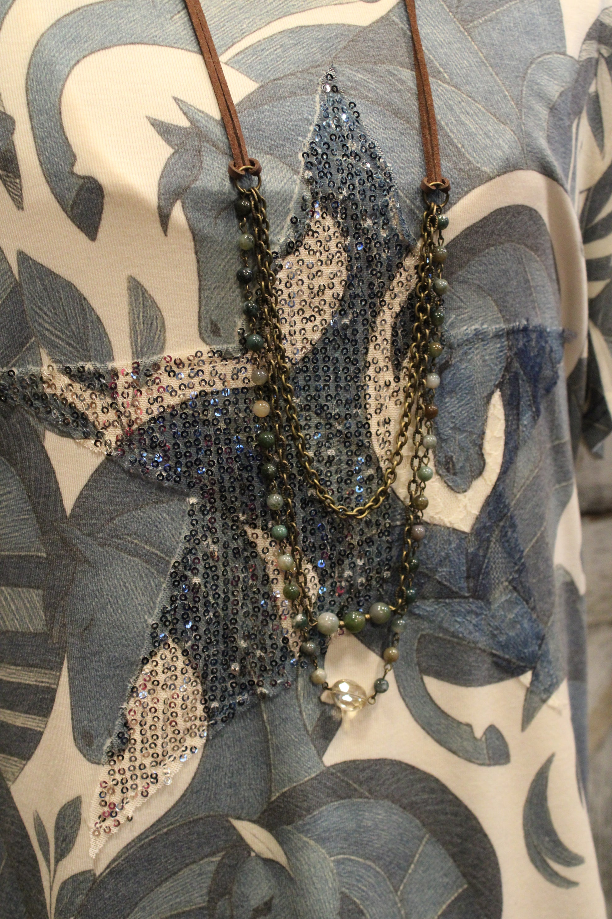 Introducing the Equestrian Dreams Top- Ride into style with this one-of-a-kind graphic top that’s equal parts artsy and free-spirited. Featuring a stunning swirl of running horses in denim-blue tones, this tee feels like wearable artwork. The centerpiece sparkles with a sequined star, adding just the right touch of shine to catch the light (and a few compliments).