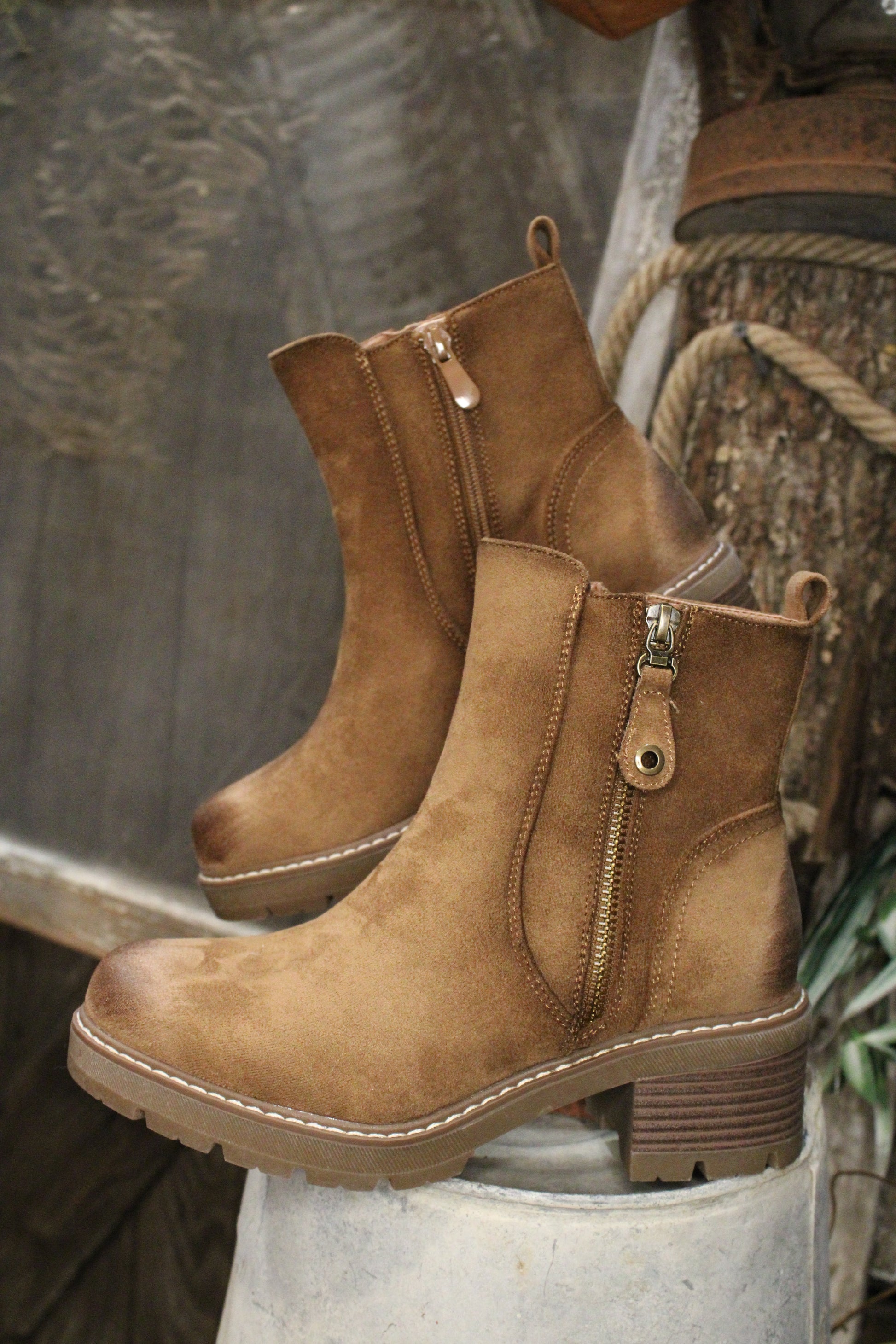 The soft faux suede hugs just right, while the block heel gives you a little lift without slowing your stride. Style them with flowy prairie skirts, denim and flannel, or layered knits — they’re your ride-or-die for crisp mornings and bonfire nights.