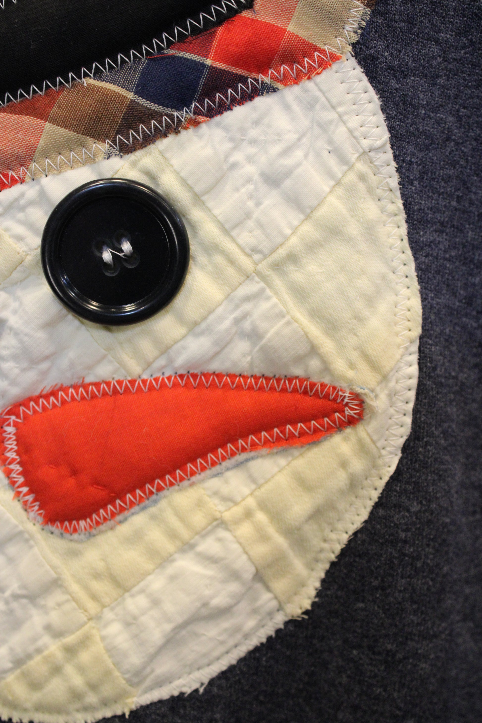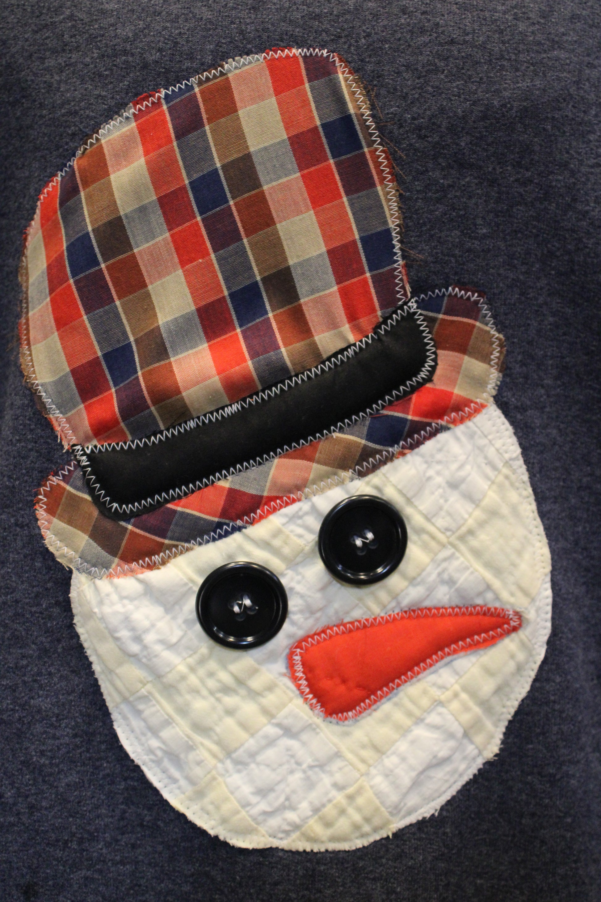 🎄 Each appliqué is uniquely cut from repurposed quilt pieces, making every Frosty just a little different — and just for you.