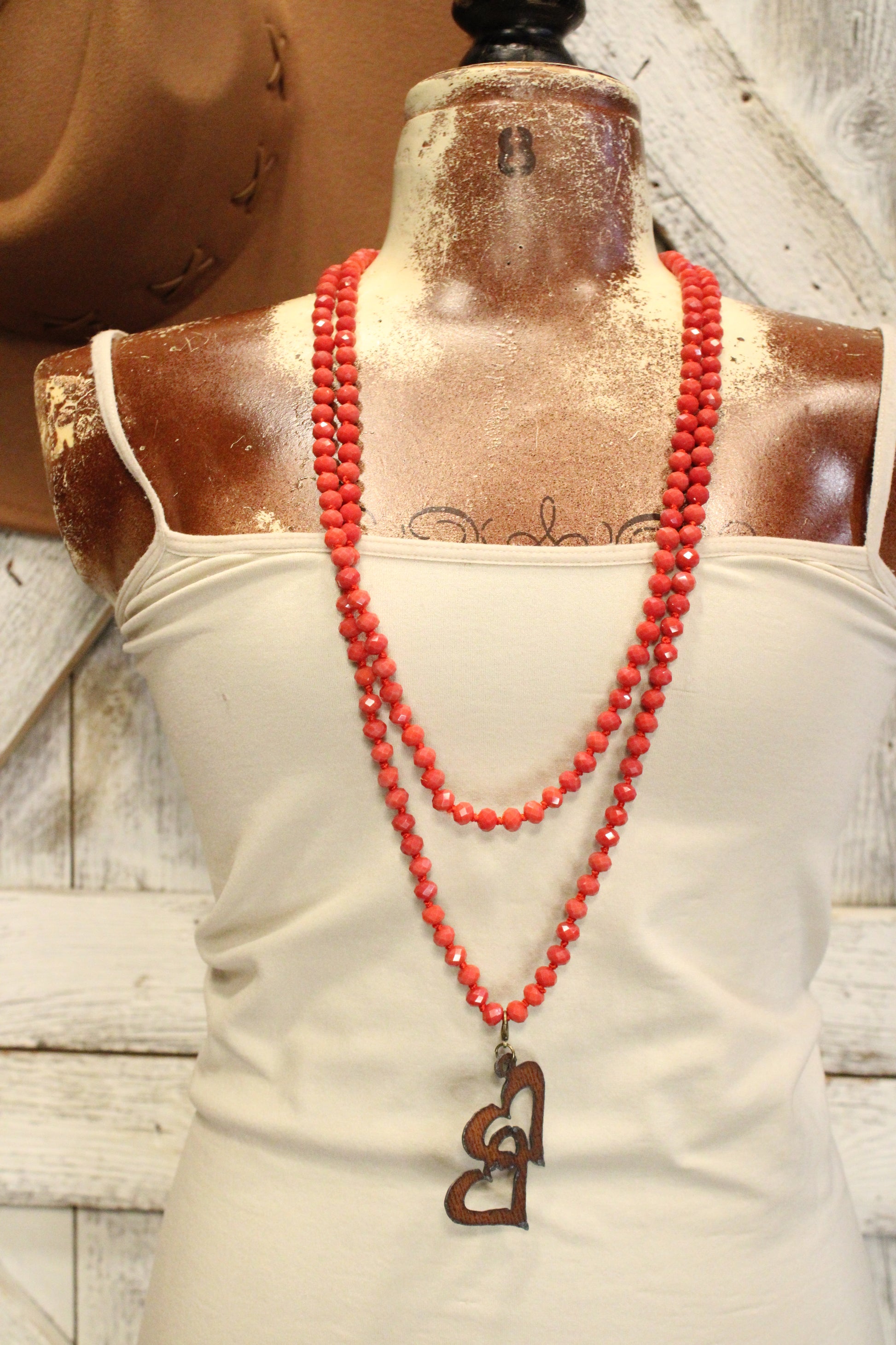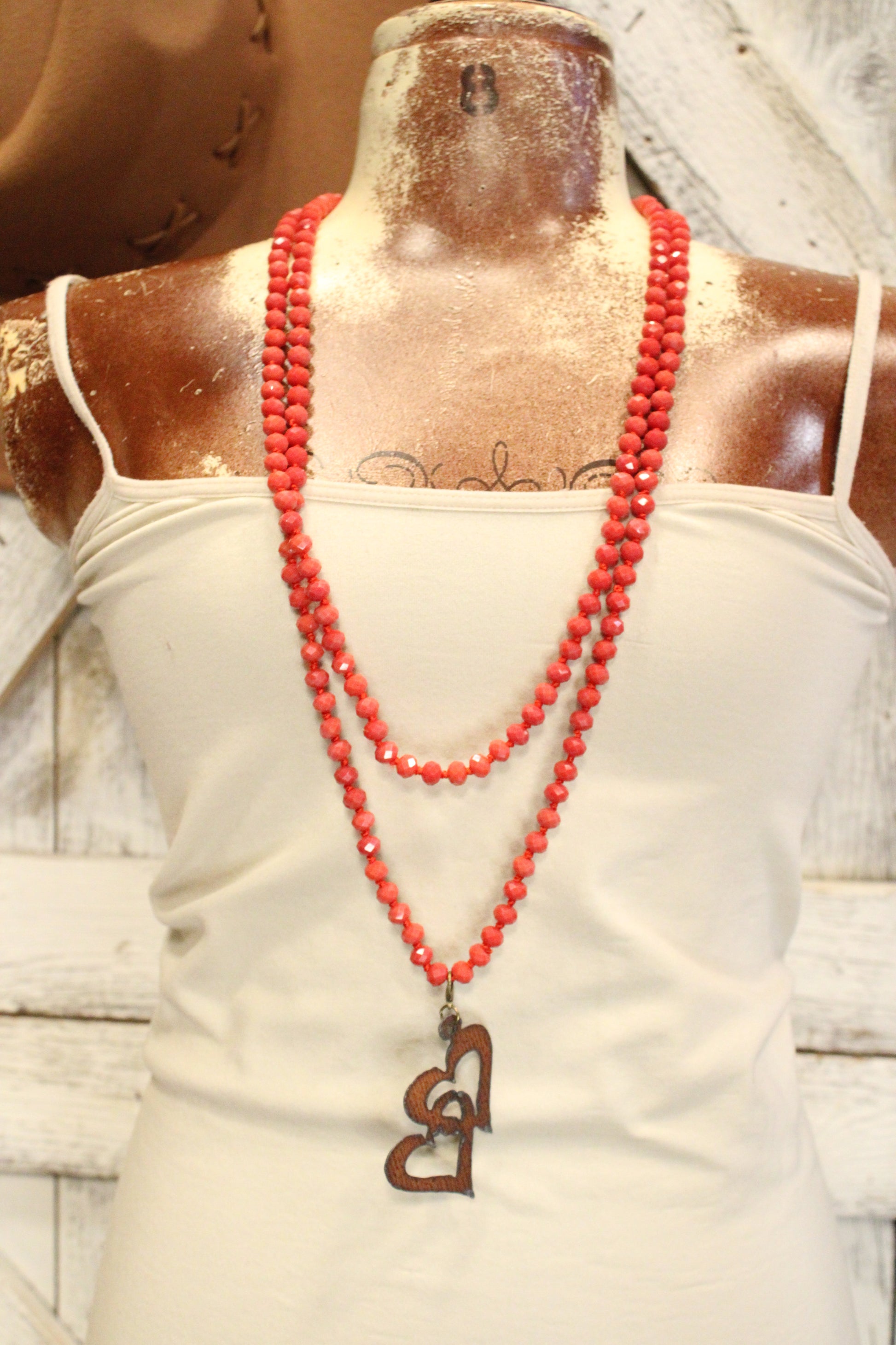 Introducing our FGO Heart To Heart Charm Necklace, Featuring vibrant faceted beads, this long necklace layers beautifully over tanks, tees, sweaters, and dresses. The rustic, removable double-heart pendant gives it that cozy, farmhouse-meets-boho feel we love so much, making it an easy go-to for everyday wear or gifting. Lightweight and easy to style, it brings just the right touch of warmth and personality to any outfit.