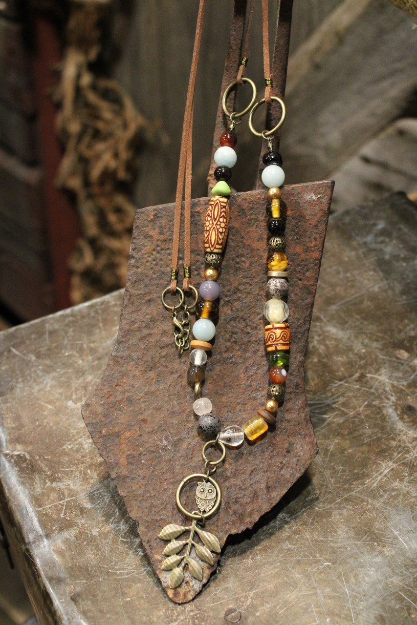Made with genuine leather, Blue Amazonite Gemstone, Red Coffee Agate, & Black Imperial Jasper