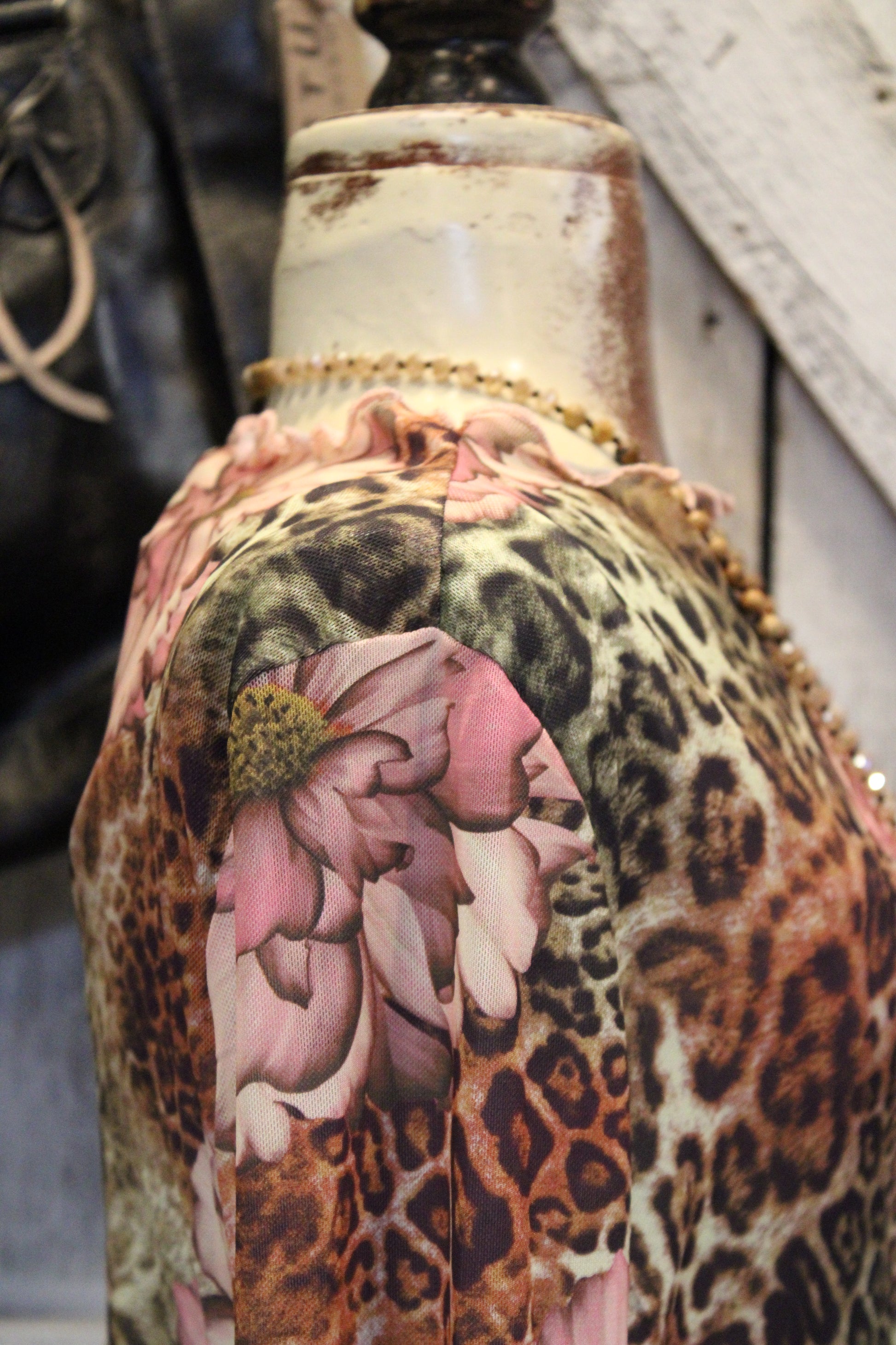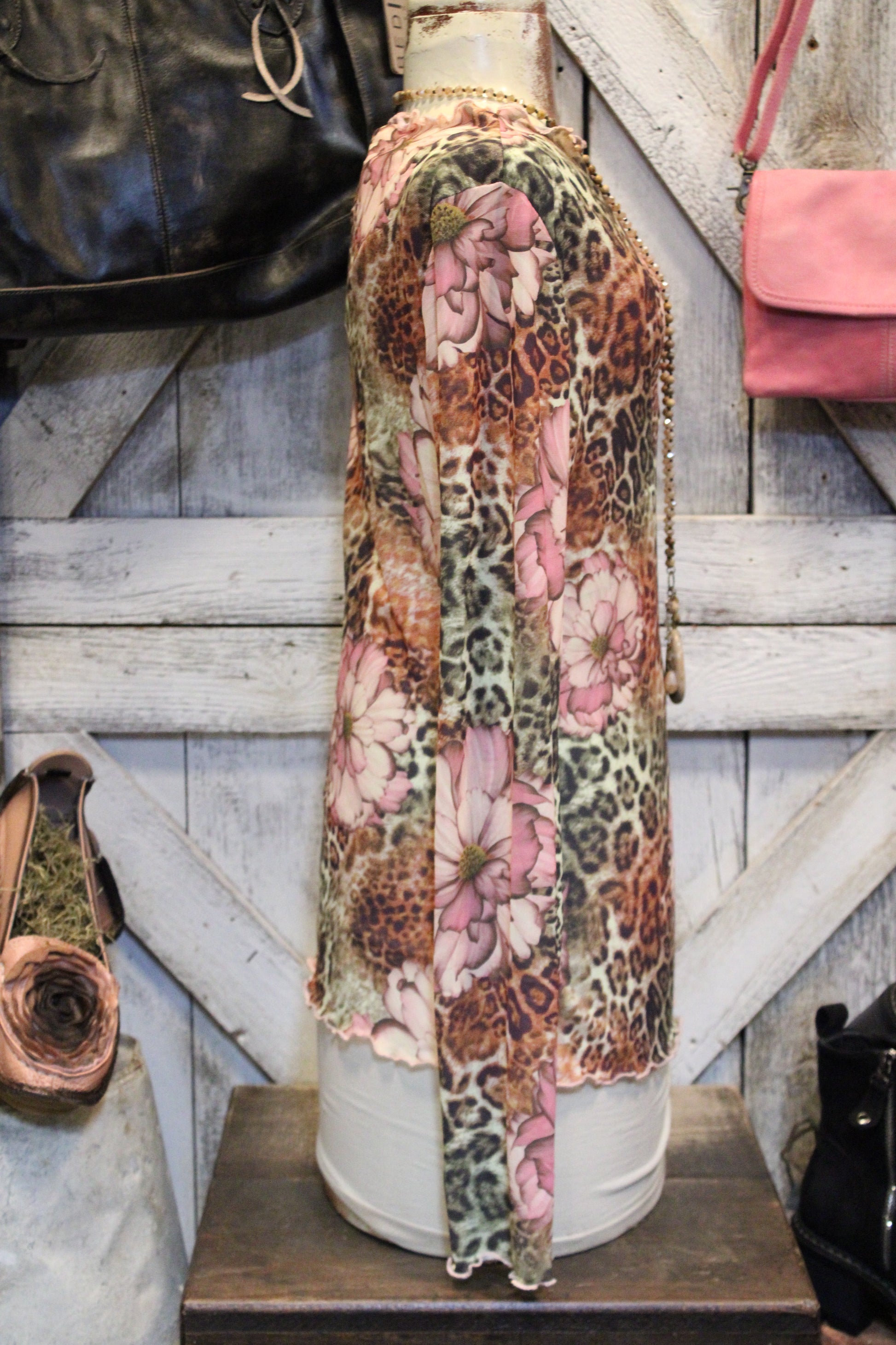 Introducing the Fierce Floral Mesh Top- Turn heads in this wild-meets-whimsy mesh top! Featuring a bold mix of leopard print and soft floral accents, this lightweight mesh long sleeve brings the perfect balance of fierce and feminine. The semi-sheer fabric makes it ideal for layering — pair it with a bralette, cami, or denim jacket for an effortlessly edgy vibe.