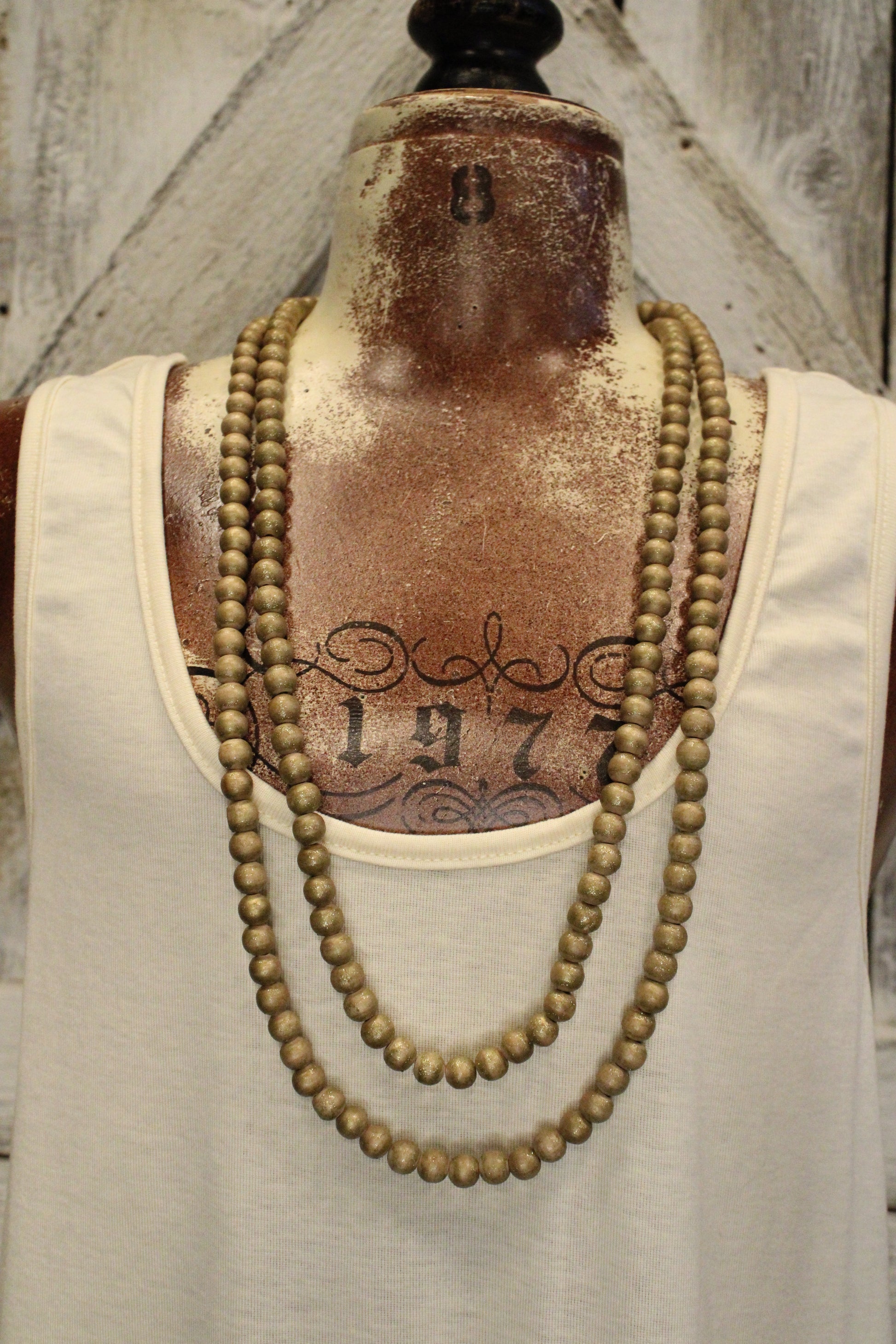 Gold Teakwood Bead Necklace