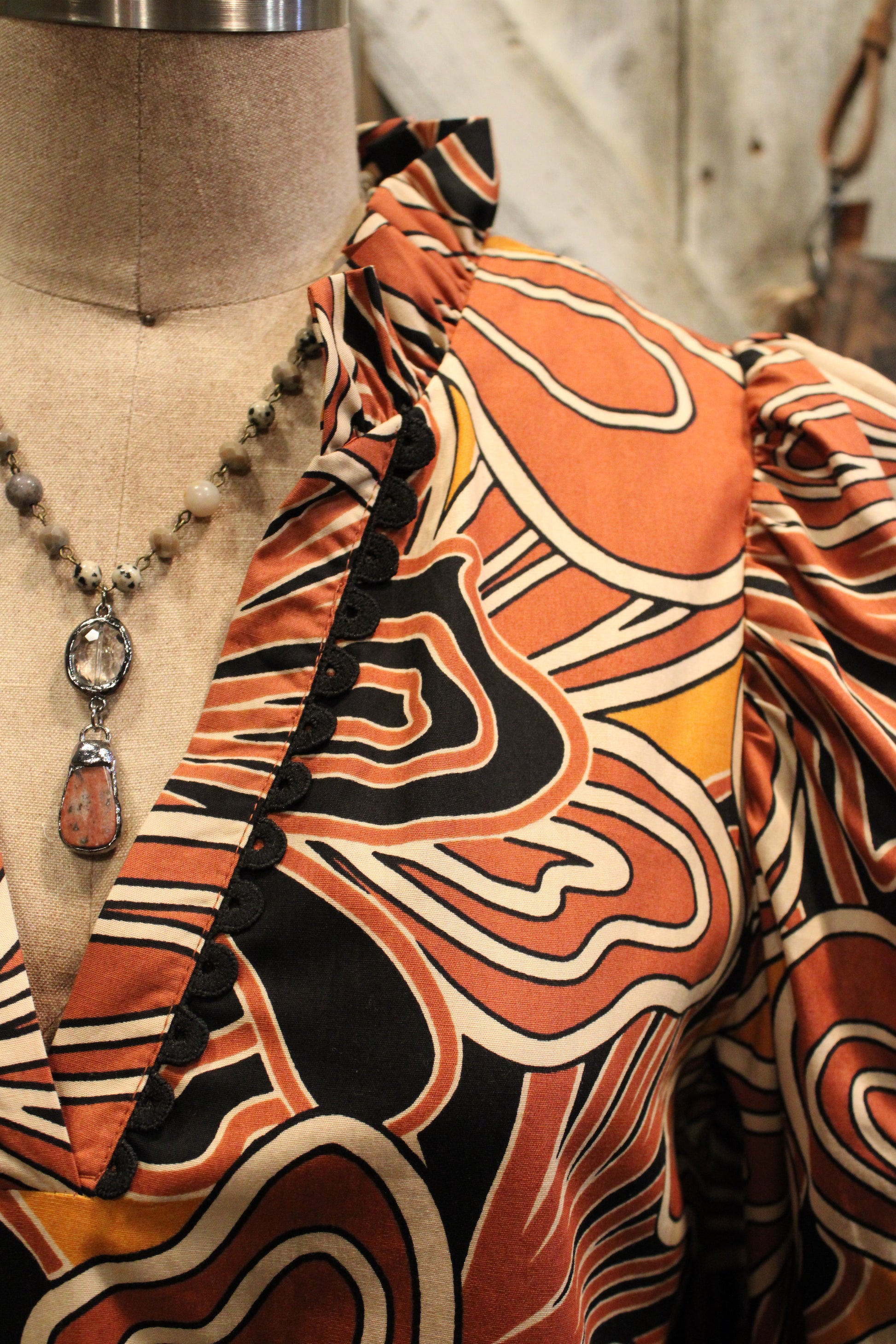 Introducing the Good Vibes Dress-This dress is all about bold retro charm with a modern boho twist. The flowy A-line silhouette moves beautifully with every step, while the billowy three-quarter sleeves and split neckline add an effortlessly chic touch. Designed in a warm palette of rust, cream, and black, the oversized floral pattern makes a statement that feels both vintage and fresh. Perfect for fall outings, festivals, or a night out, this dress brings comfort and confidence together in one unforgettable look.