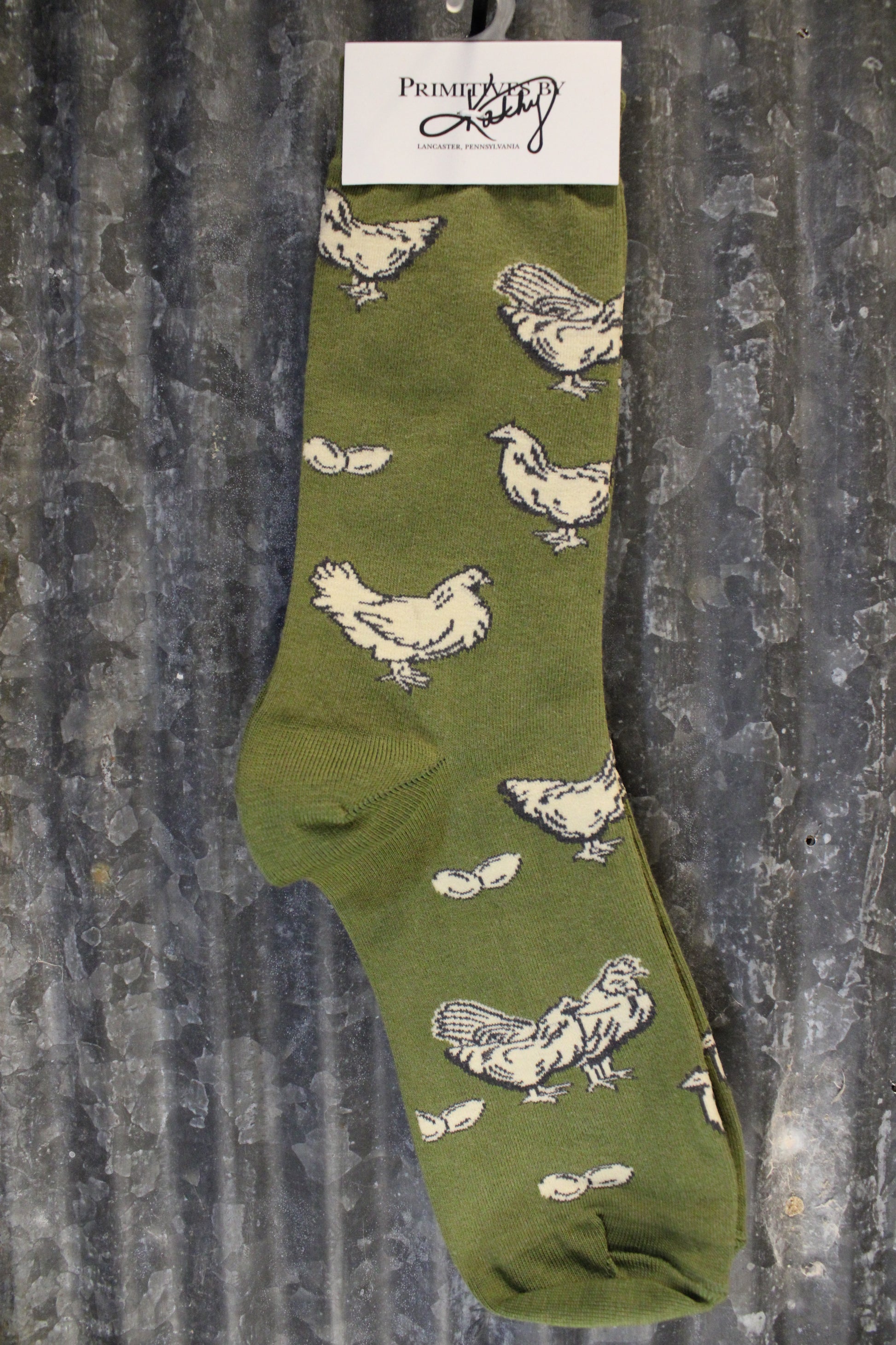 Introducing Happy Chicken Socks, These cozy green socks feature a playful print of happy hens and fresh eggs — perfect for any farm girl who loves a touch of country flair from head to toe.