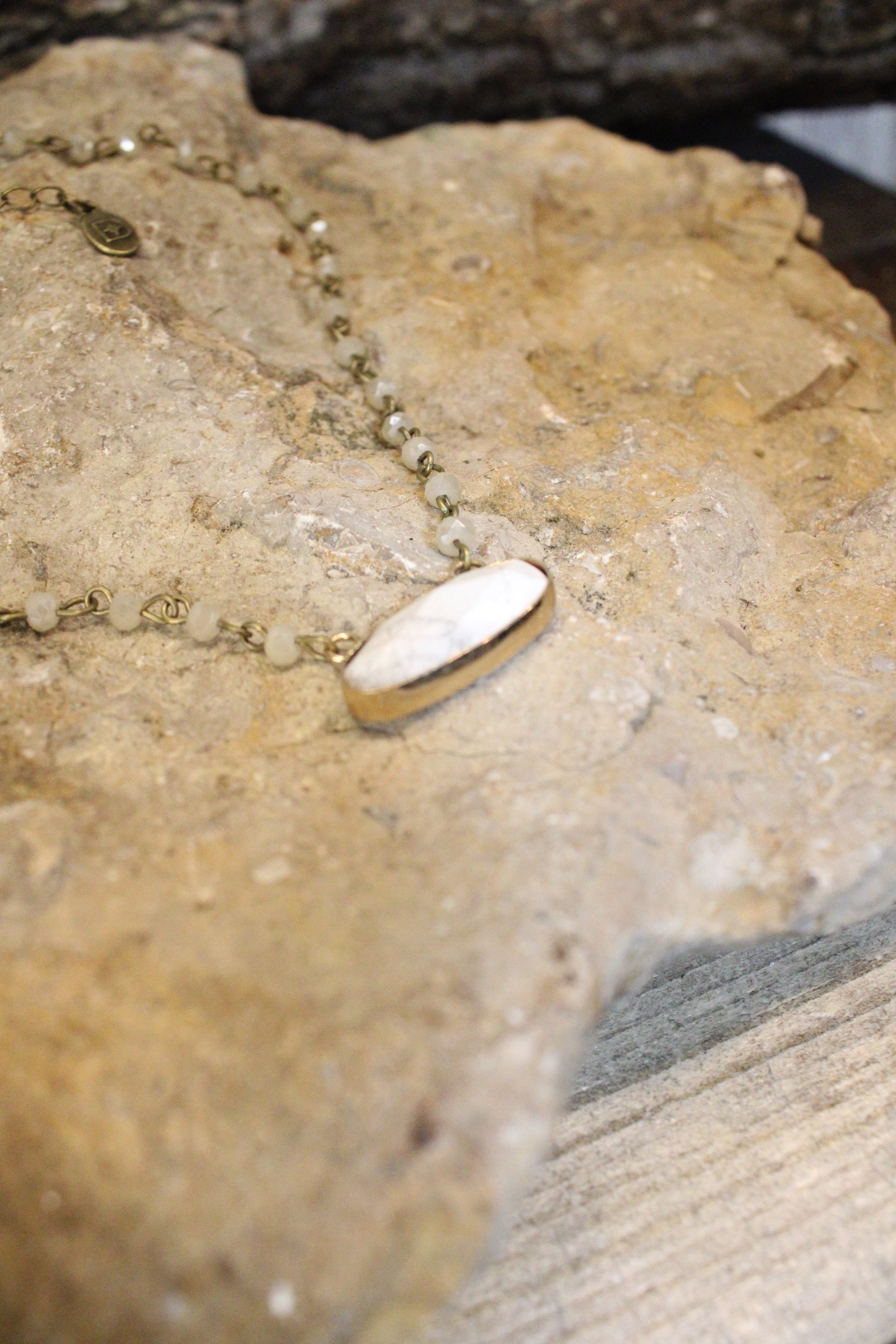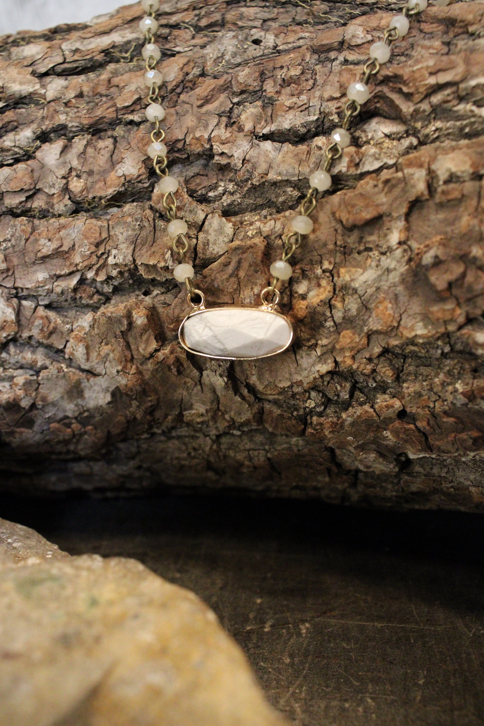 Introducing the stylish Hazel Necklace that effortlessly transitions between seasons! Delicate, dreamy, and effortlessly elegant — this necklace is pure charm in jewelry form. Featuring soft, pearly beads and a stunning white stone pendant framed in gold, it catches the light just right for a subtle glow that goes with everything.