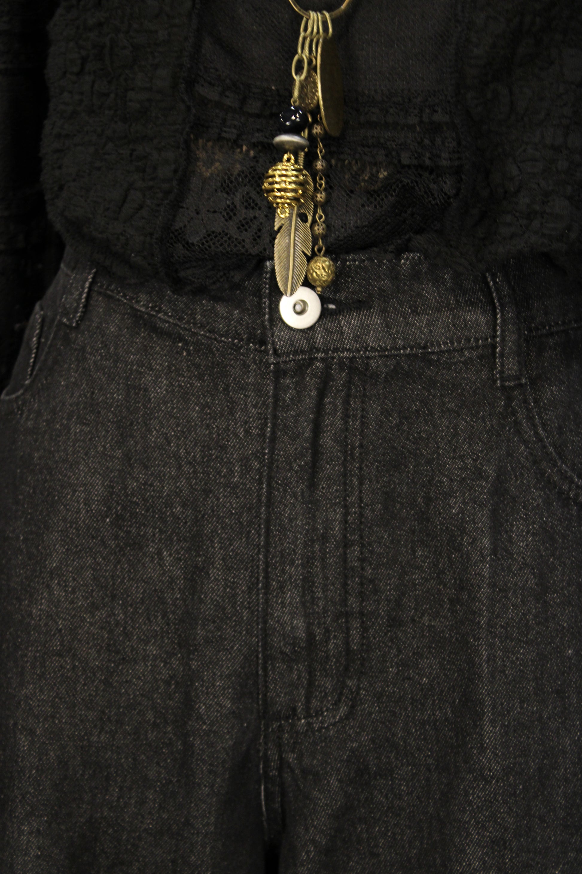 - Features: Pockets, Belt Loops, Zipper, Sheer