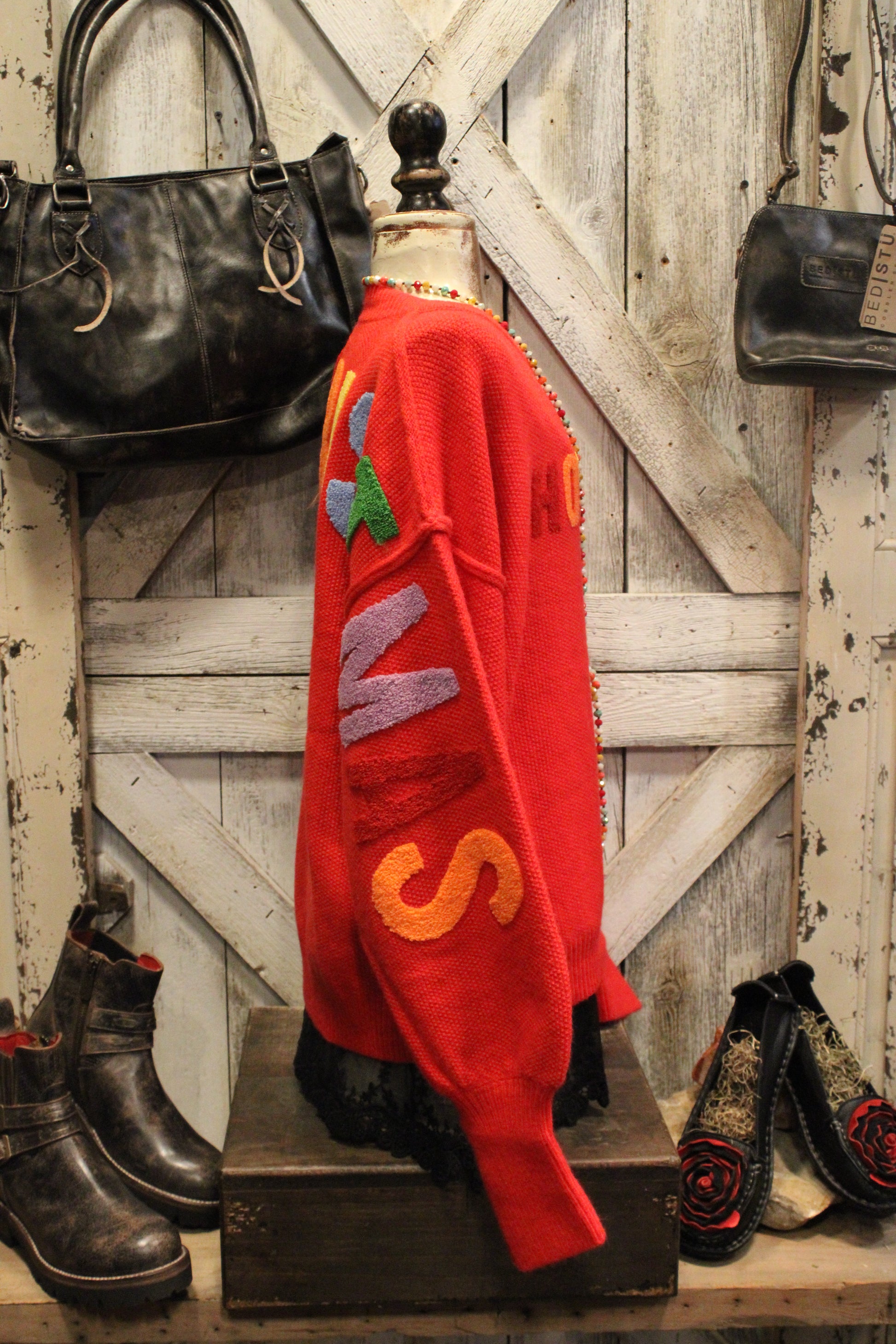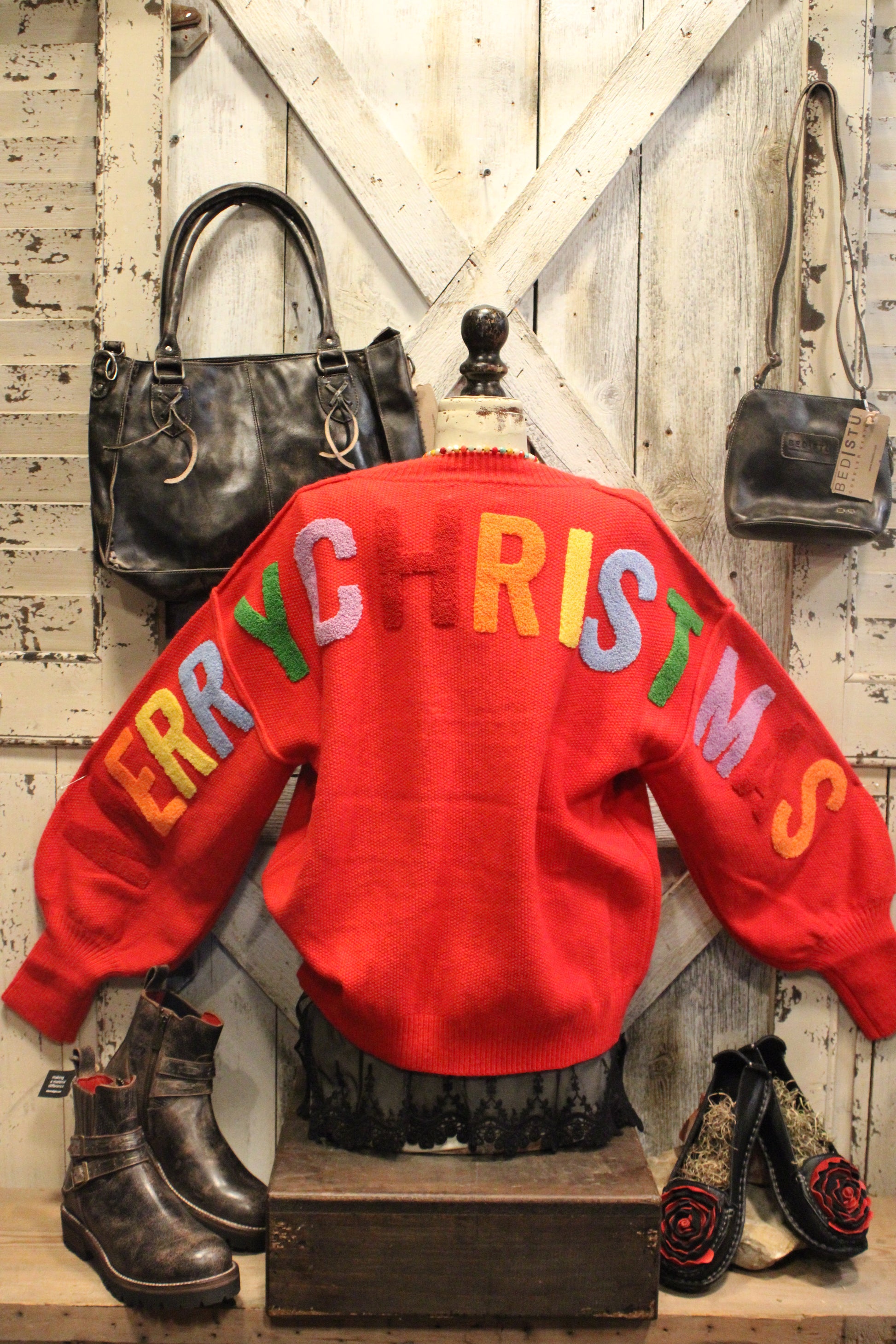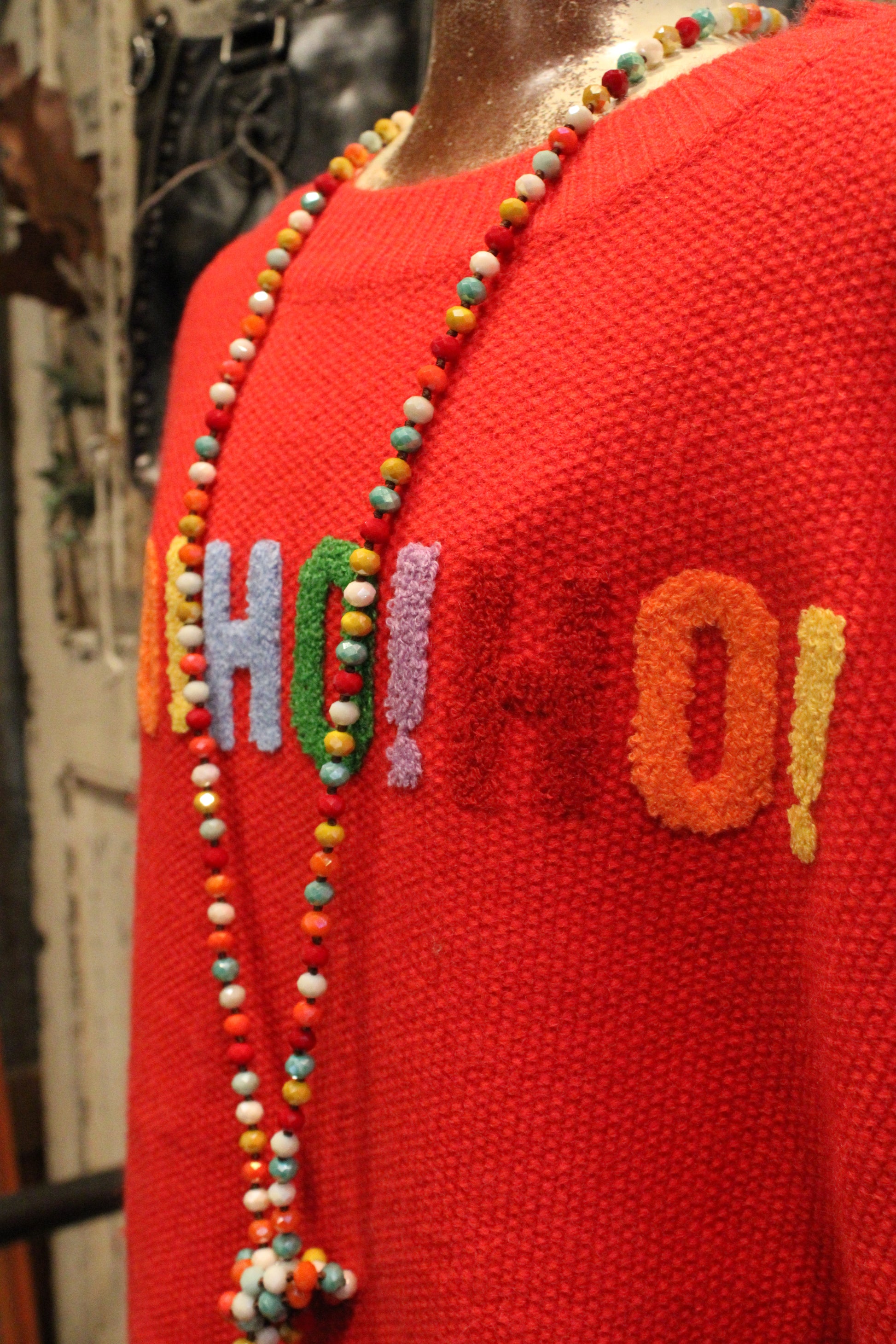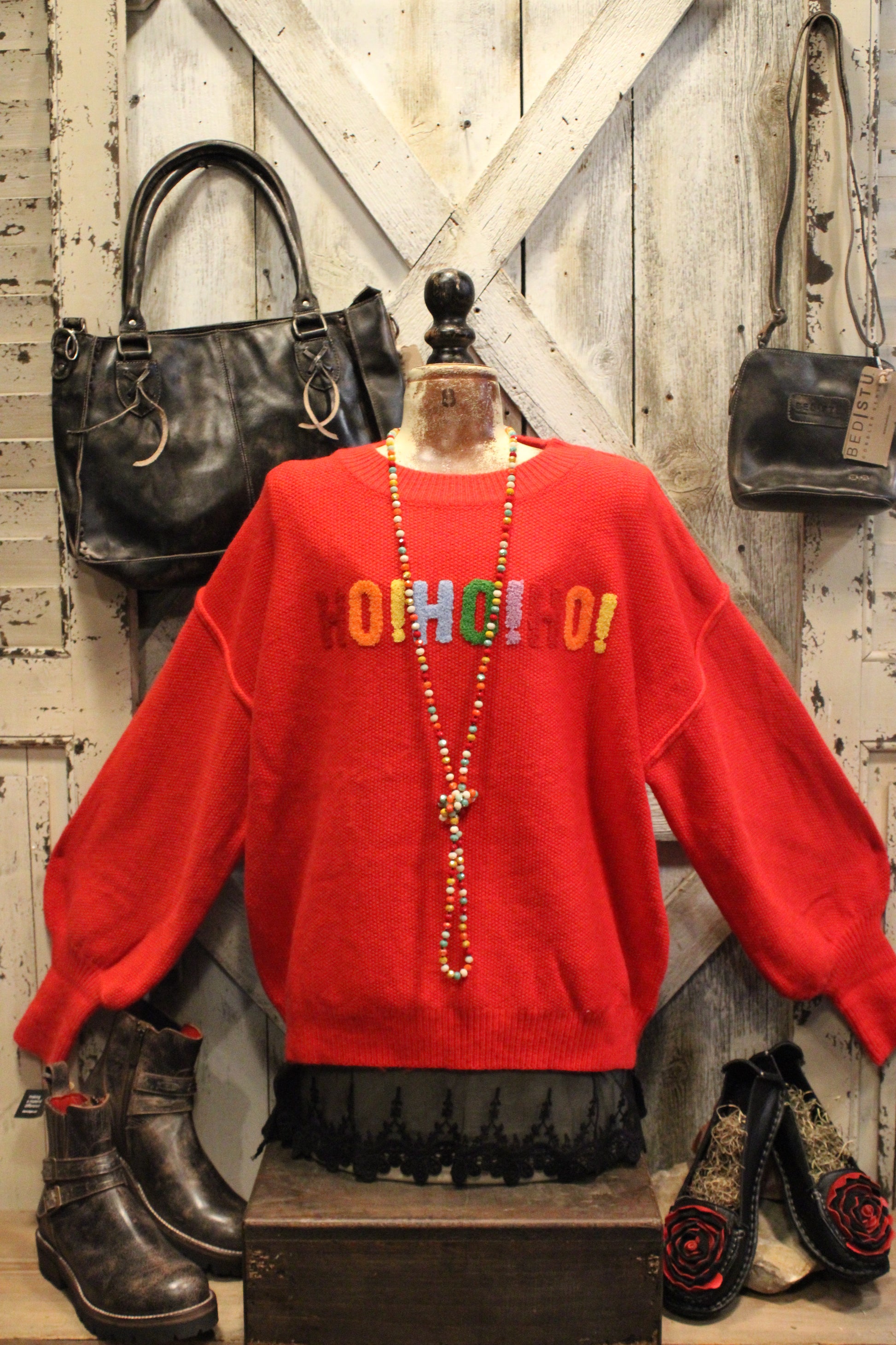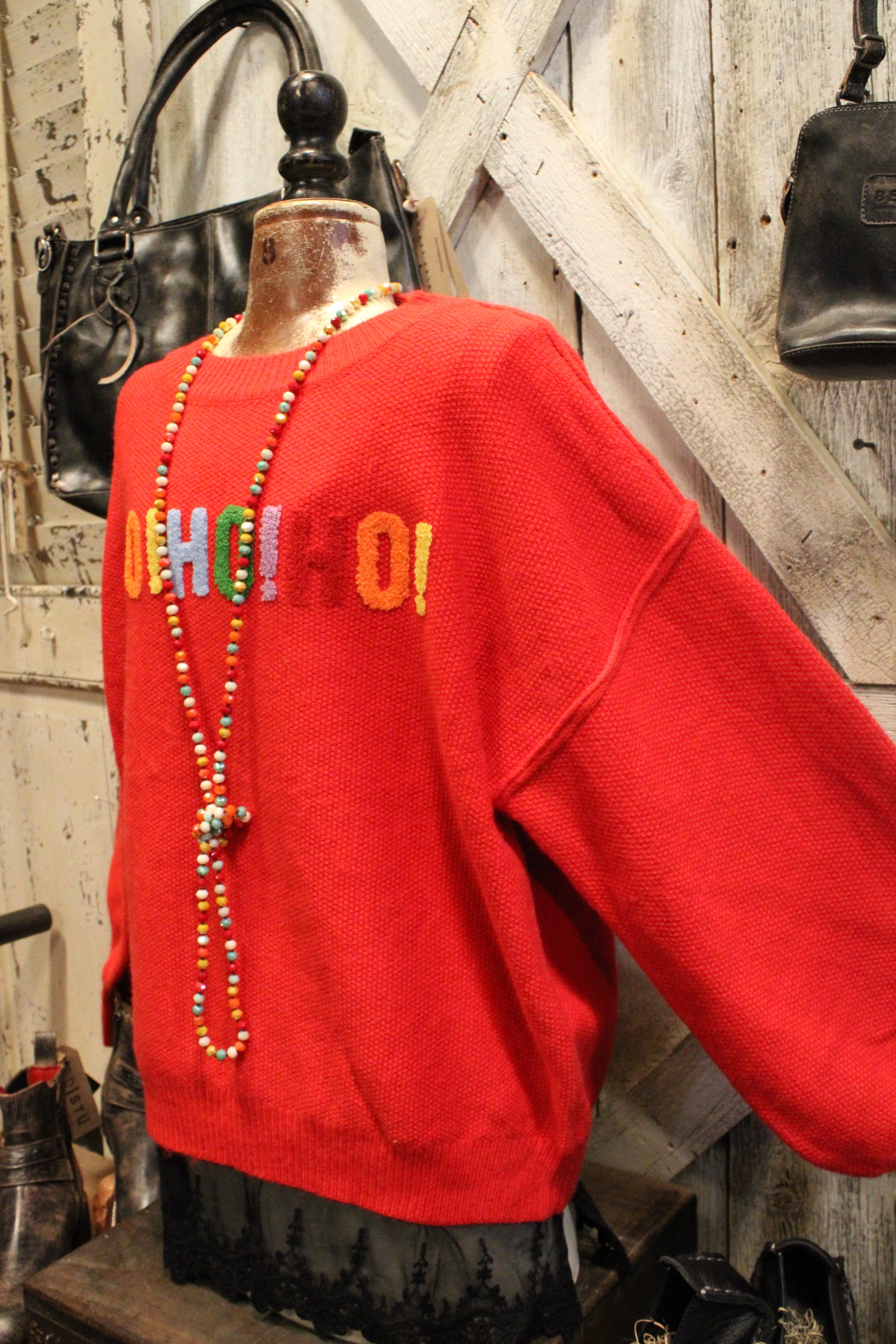 Get into the festive spirit with our HO HO HO Holiday Sweater- Bring the festive cheer wherever you go with this merry red sweater! Featuring bold, colorful “HO HO HO!” lettering across the front, it’s the perfect blend of cozy comfort and playful holiday spirit. The relaxed fit and soft knit fabric make it ideal for layering, whether you’re heading to a Christmas party, cozying up by the fire, or dashing through town for some holiday shopping.