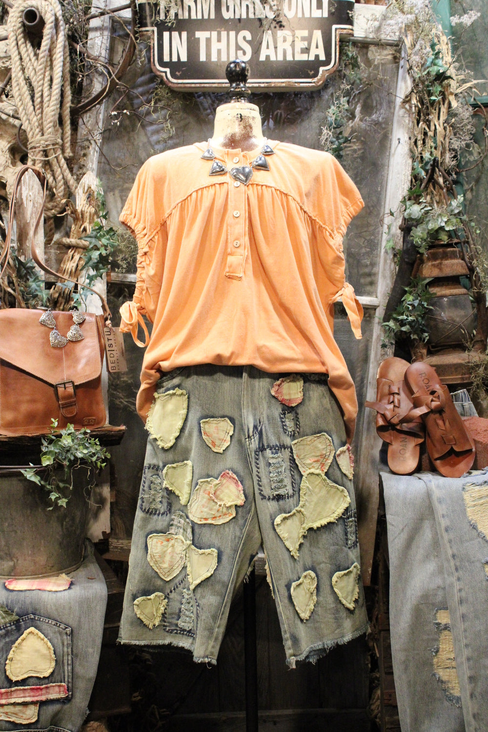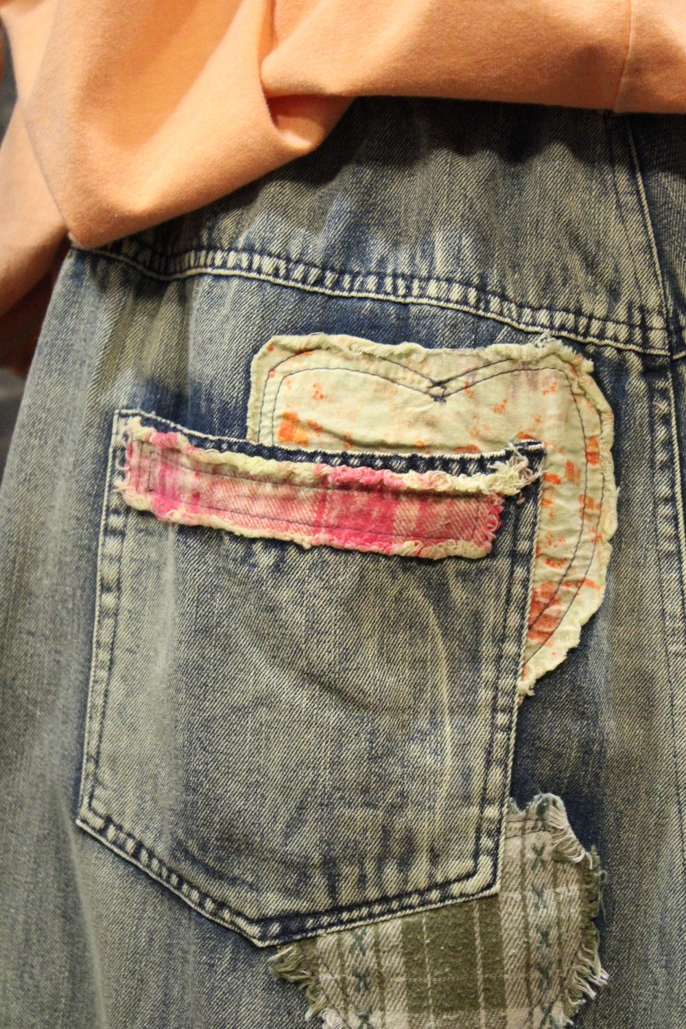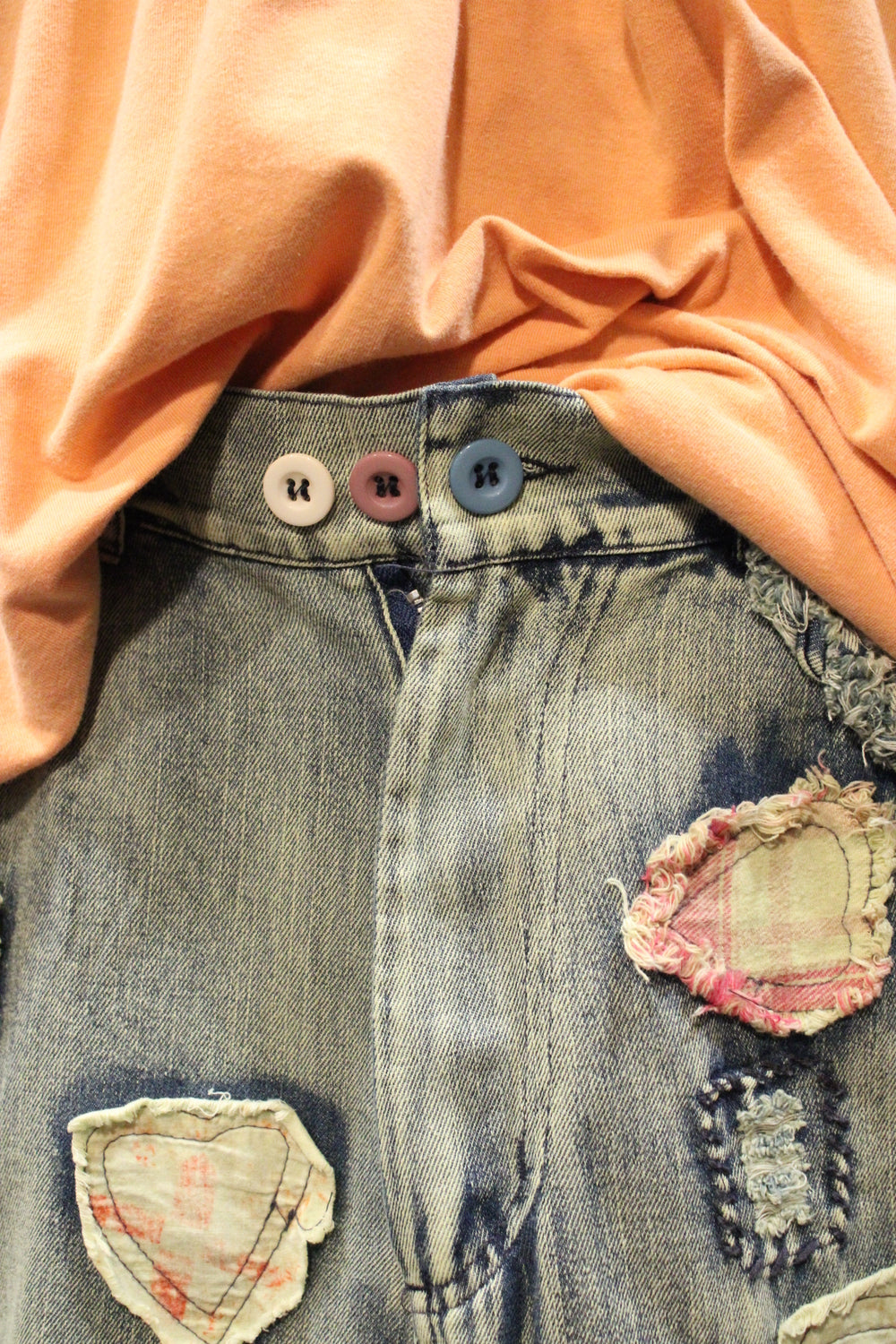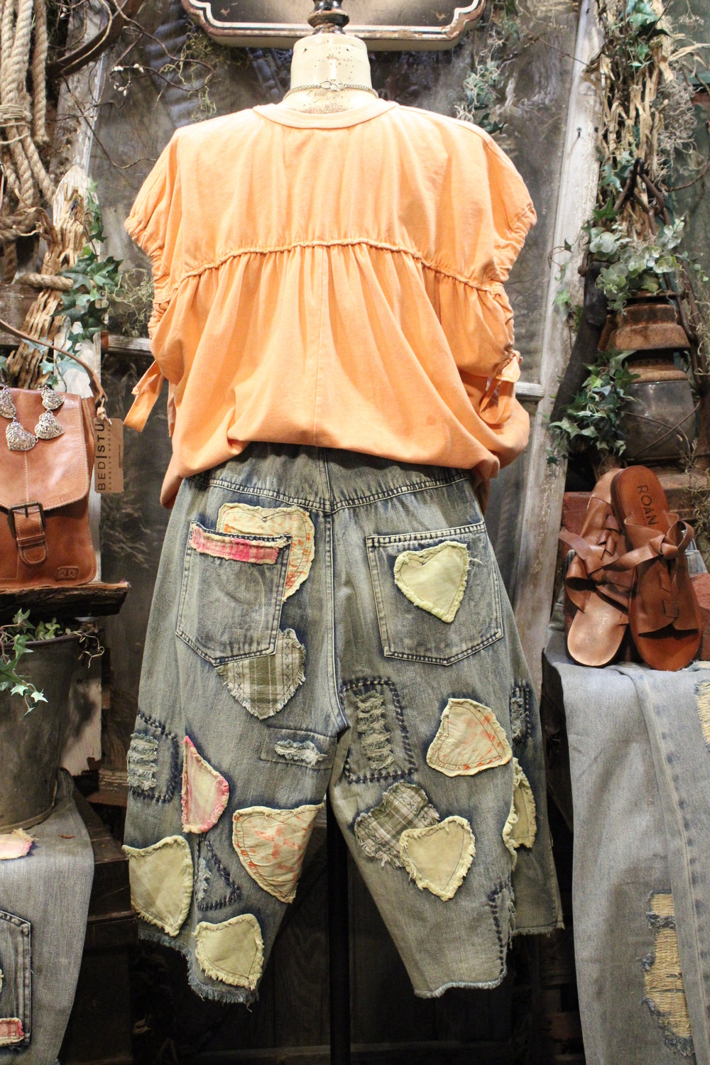 Introducing the Hugs & Stitches Shorts- Make a statement without saying a word in these standout patchwork heart denim shorts. Designed for the trendsetter with a love for vintage flair, these relaxed-fit, mid-rise shorts feature soft, washed denim and eye-catching heart-shaped patchwork in mixed pastel and plaid fabrics. The raw edges and visible stitching give just the right amount of edge, while the unique handcrafted feel keeps things fresh and fashion-forward.