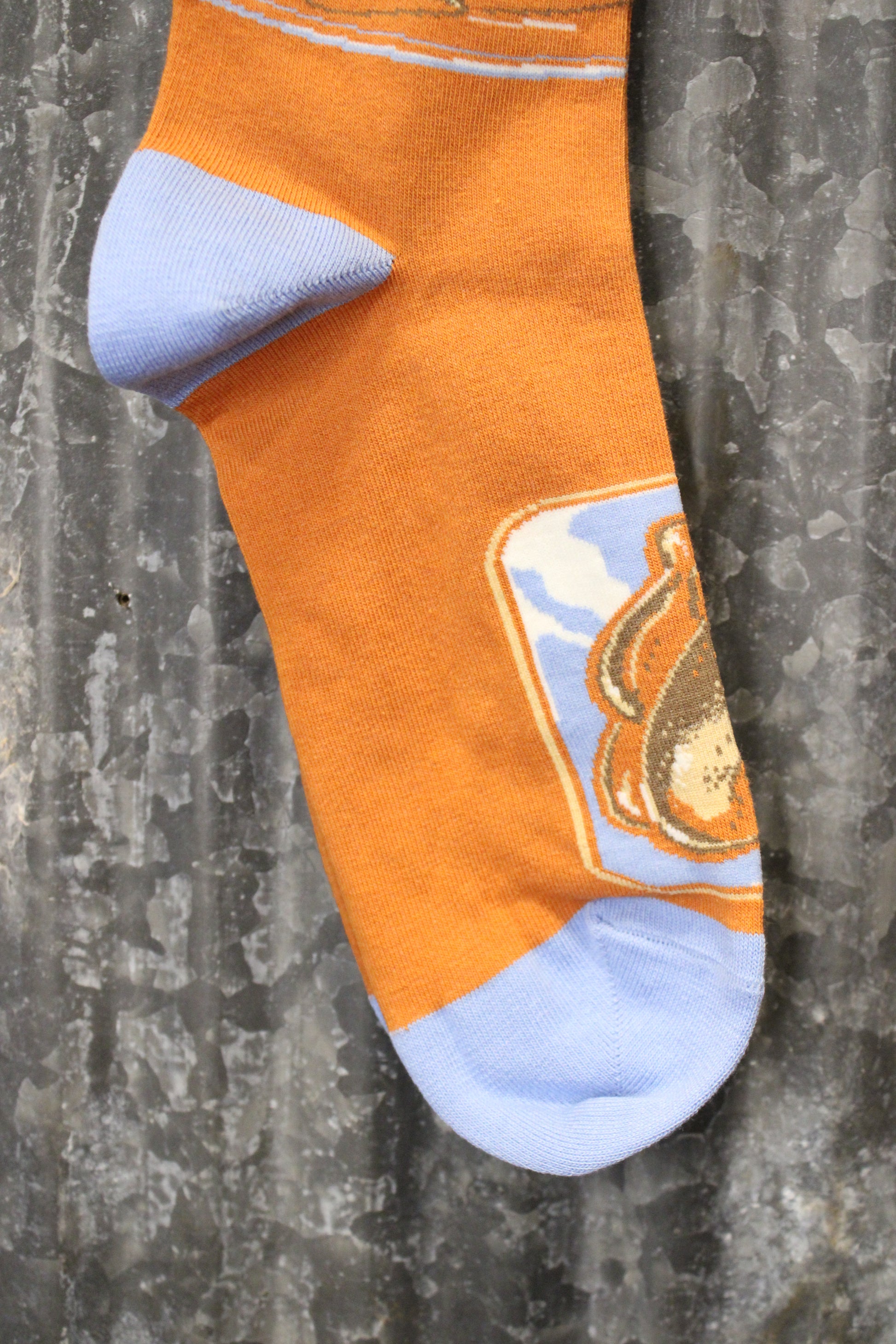 Introducing our cozy and festive I'd Rather Be Eating Turkey Socks, These playful orange-and-blue socks are the perfect way to strut into Thanksgiving with a little humor and a whole lot of cozy. Featuring a big ol’ turkey dinner design and cheeky wording, they’re comfy enough for lounging after the feast (hello, stretchy waistband vibes) and cute enough to show off around the table.