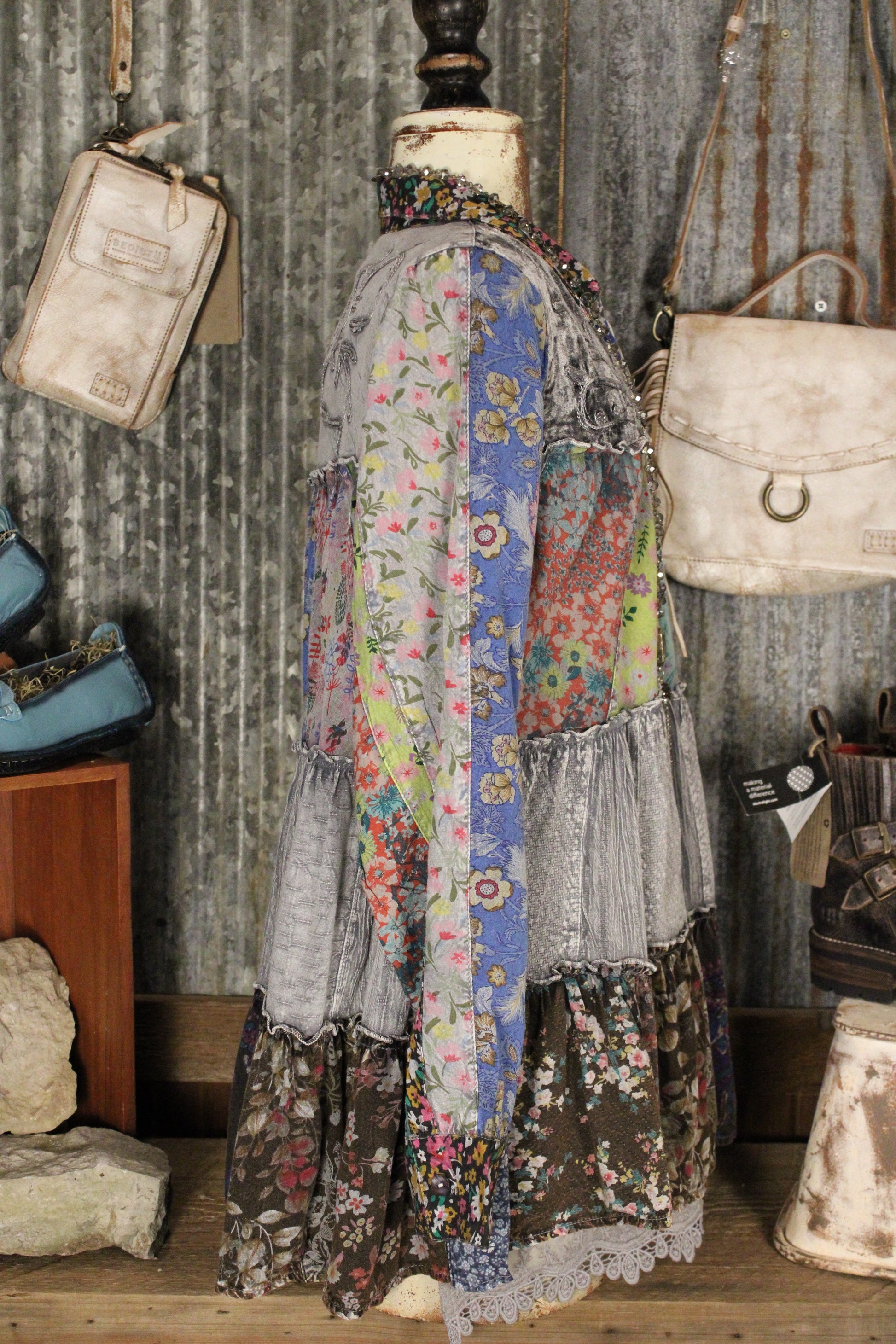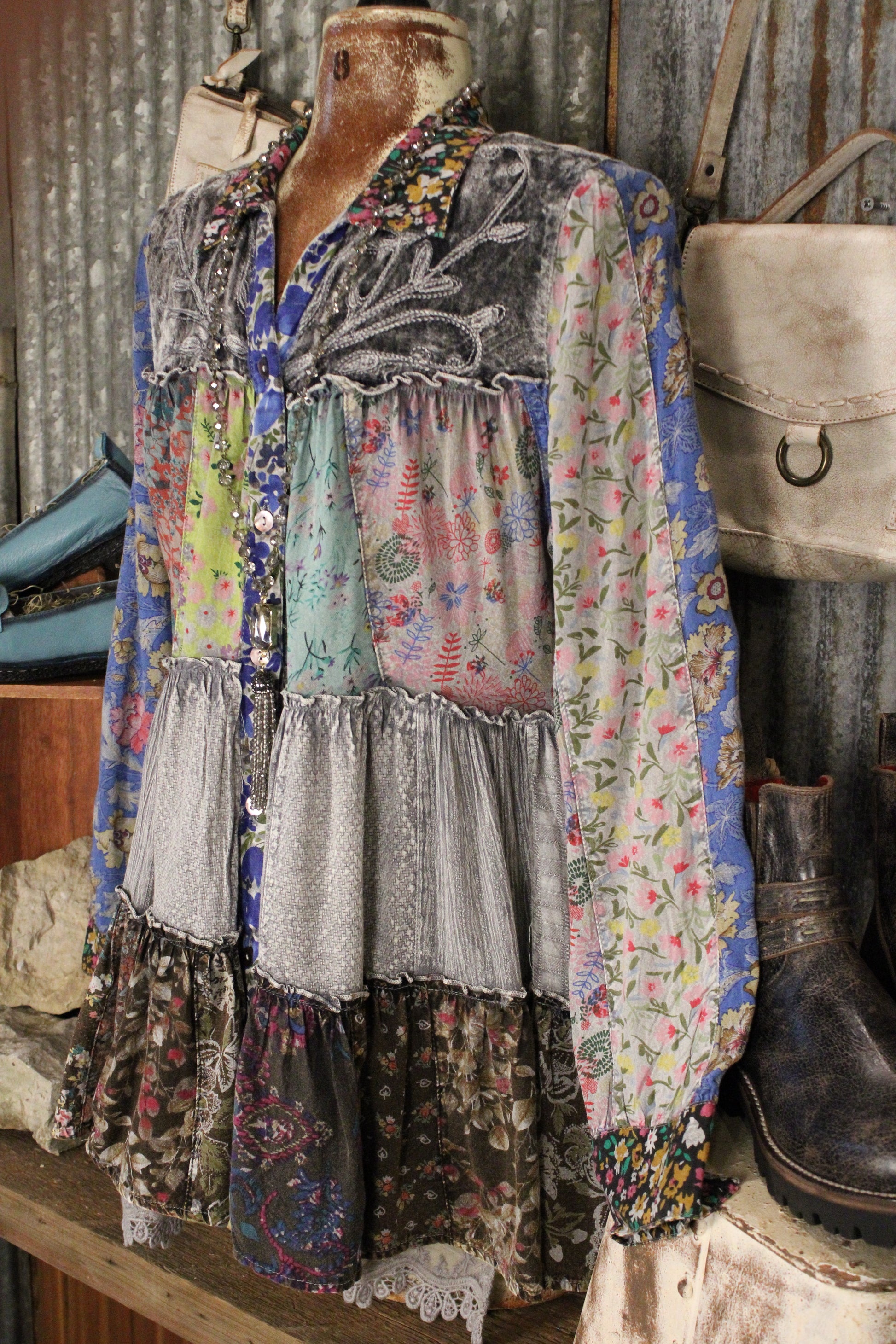 Introducing the Juniper Slate Blouse - This patchwork button-front top is full of free-spirited charm and standout style. Designed with mixed floral prints, textured tiers, delicate lace trim, and a relaxed, flowy fit, it brings effortless personality to any outfit. Perfect for pairing with denim, boots, or layered accessories, this unique top adds a touch of boho flair and everyday comfort you’ll love reaching for all season long.