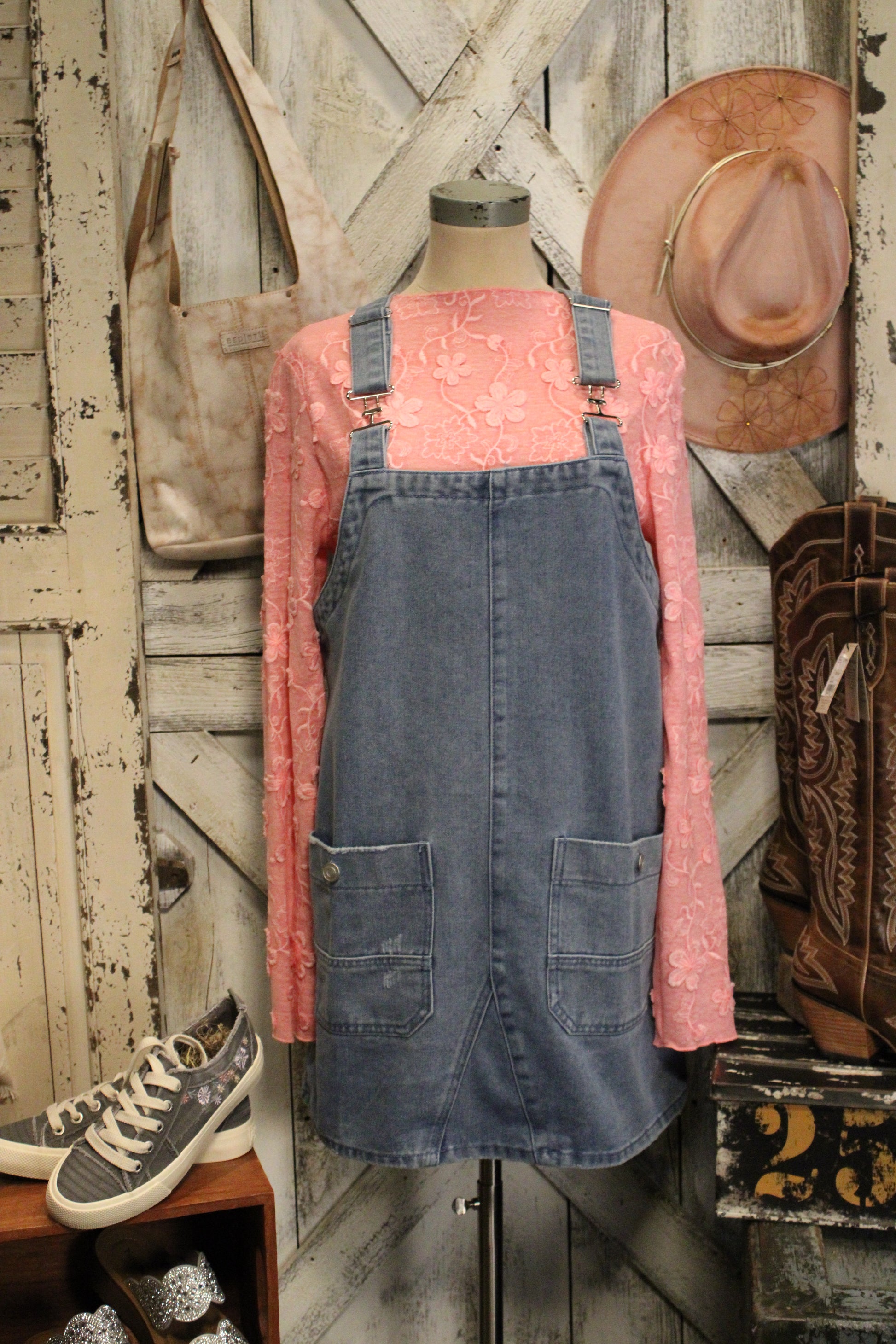 Introducing our Laid Back Blues Overall Dress, This Overall Dress features a classic overall silhouette with adjustable straps, roomy front pockets, and soft, lightweight denim that’s easy to wear all day long. The relaxed fit makes it perfect for styling over graphic tees, cozy long sleeves, or lightweight sweaters for effortless, everyday outfits. Dress it up with boots and accessories or keep it casual with sneakers — either way, this overall dress brings easy farm-girl charm to every season.