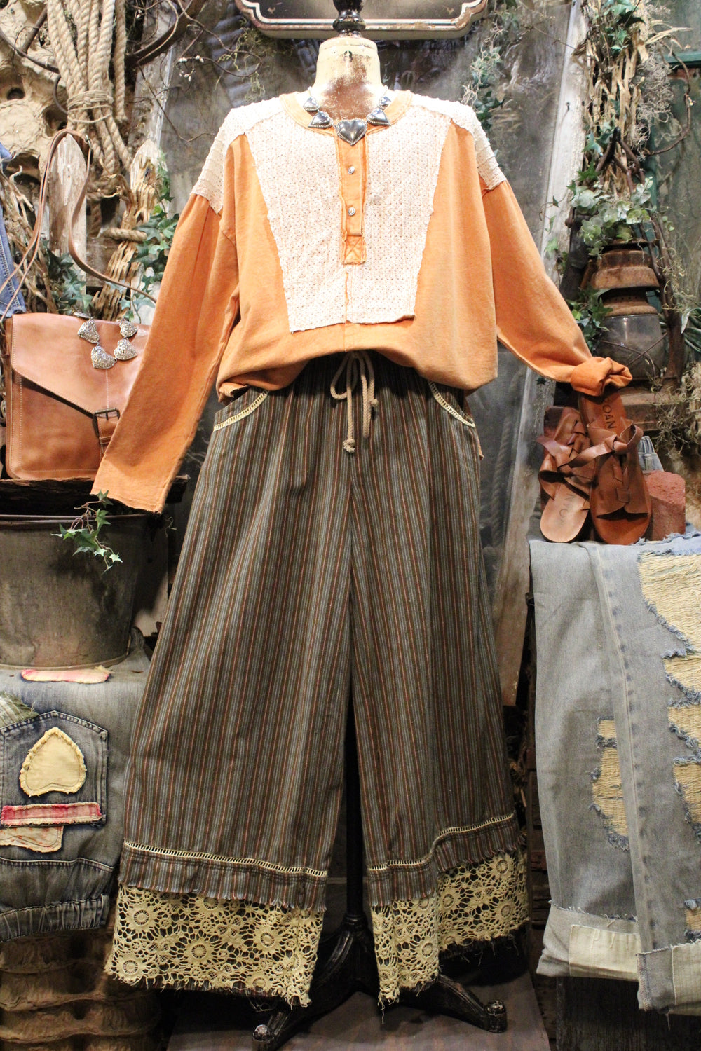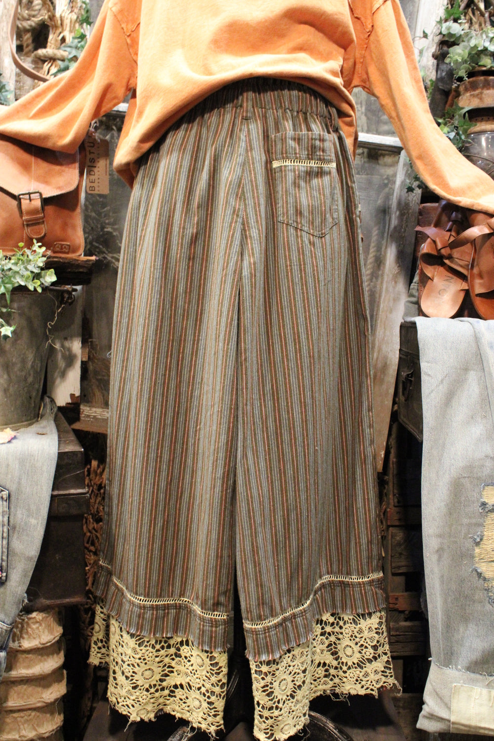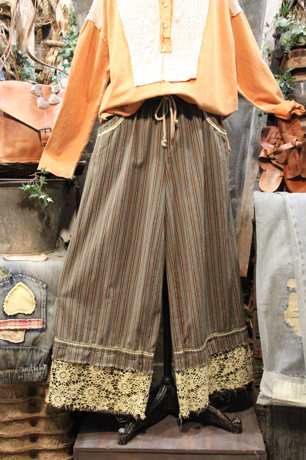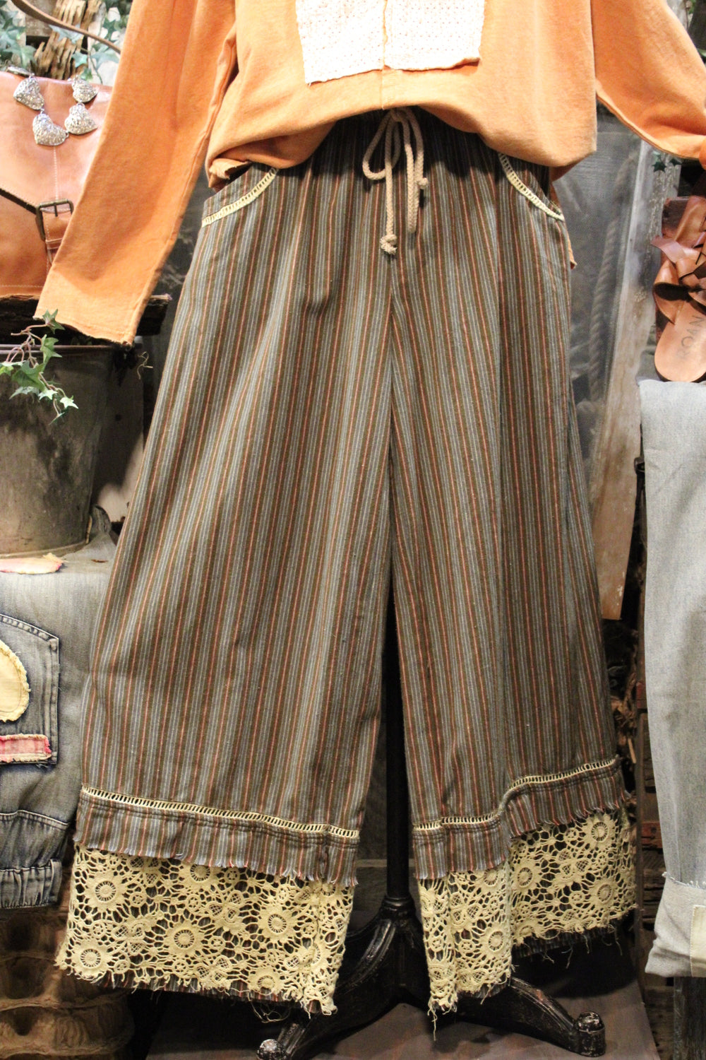 Lasso Lace Pants- Add a touch of vintage charm to your everyday style with our Lasso Lace Pants. Featuring a relaxed, flowy silhouette and a subtle vertical stripe pattern, these pants are both flattering and effortlessly comfortable. The soft drawstring waist offers an adjustable fit, perfect for casual days or creative outings.