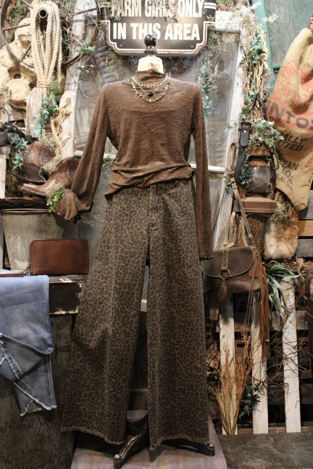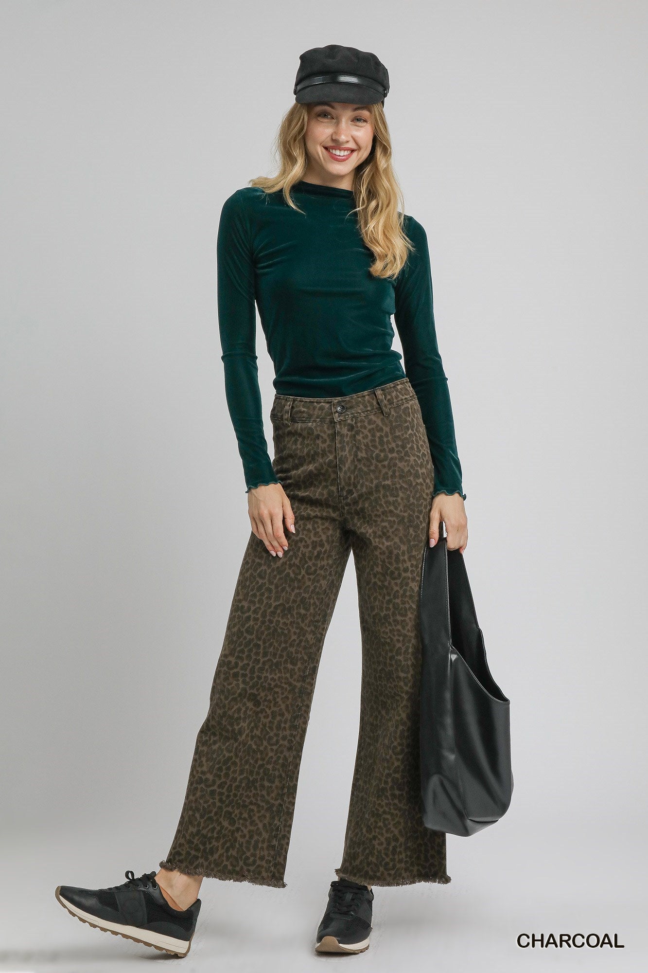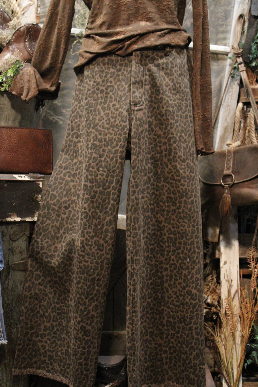 Introducing Lazy Leopard Jeans – Step into your edgy-boho era with these fabulous leopard jeans. Featuring a subtle charcoal leopard print and a relaxed wide leg silhouette, these jeans strike the perfect balance between bold and laid-back. The high-rise fit flatters your waist while the raw hem adds just the right touch of undone cool.