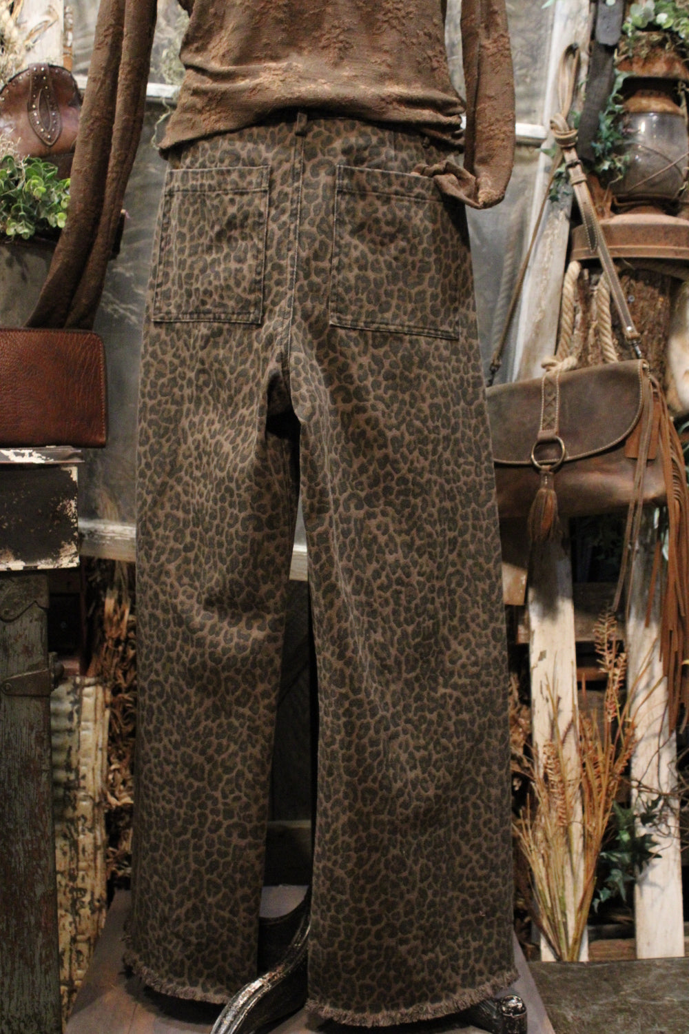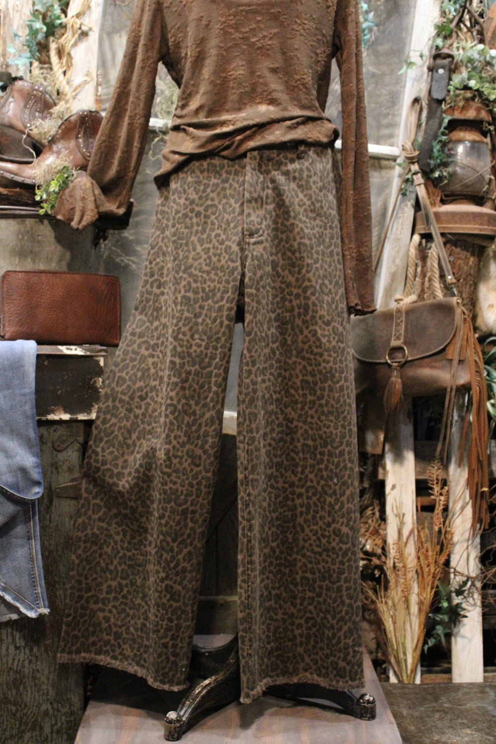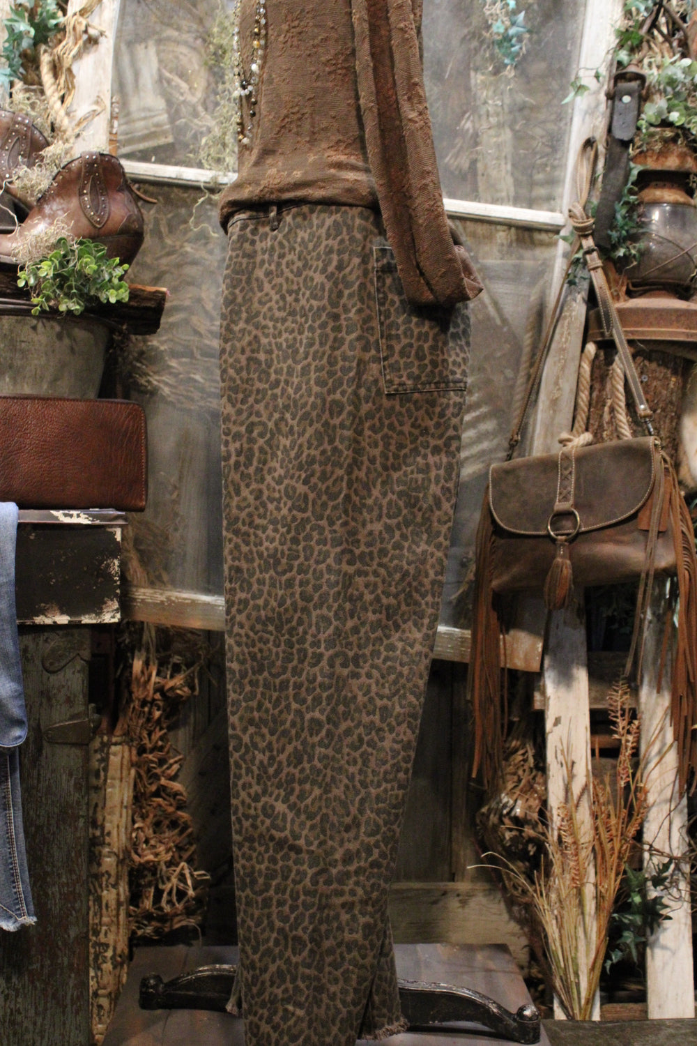 Introducing Lazy Leopard Jeans – Step into your edgy-boho era with these fabulous leopard jeans. Featuring a subtle charcoal leopard print and a relaxed wide leg silhouette, these jeans strike the perfect balance between bold and laid-back. The high-rise fit flatters your waist while the raw hem adds just the right touch of undone cool.